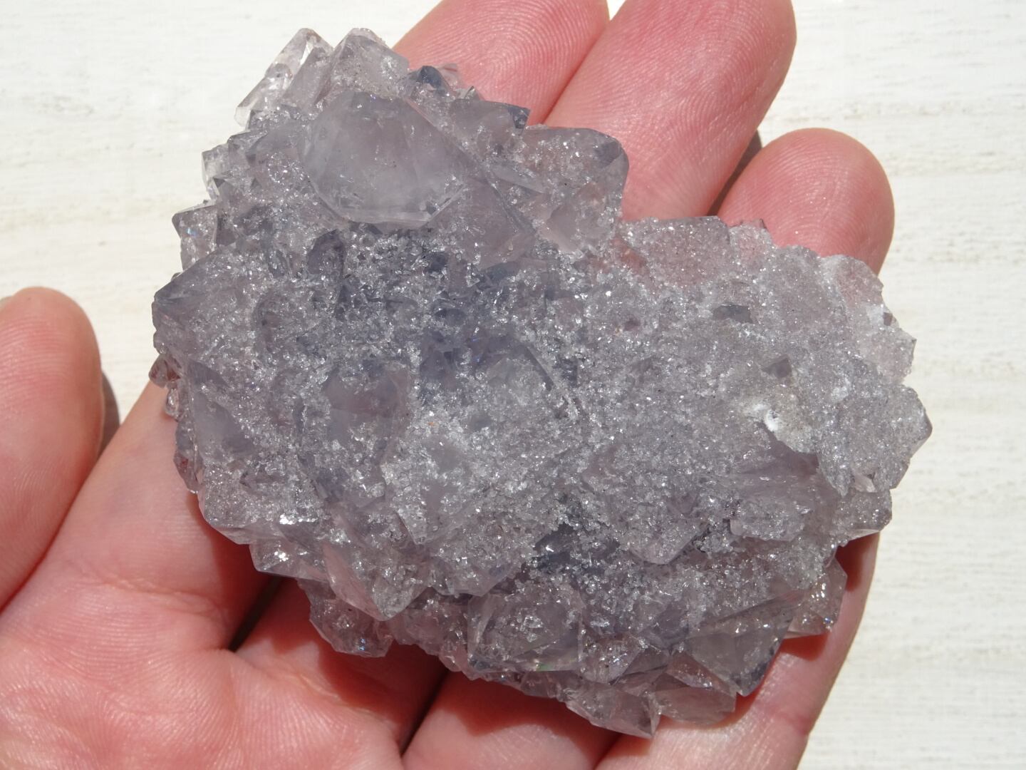 鮮やかなブルーではなく灰青色なのですが、なかなか、こういった色合いのクラスターはないのではないかな。結晶のカタチとしてはアメジストなんですよね。