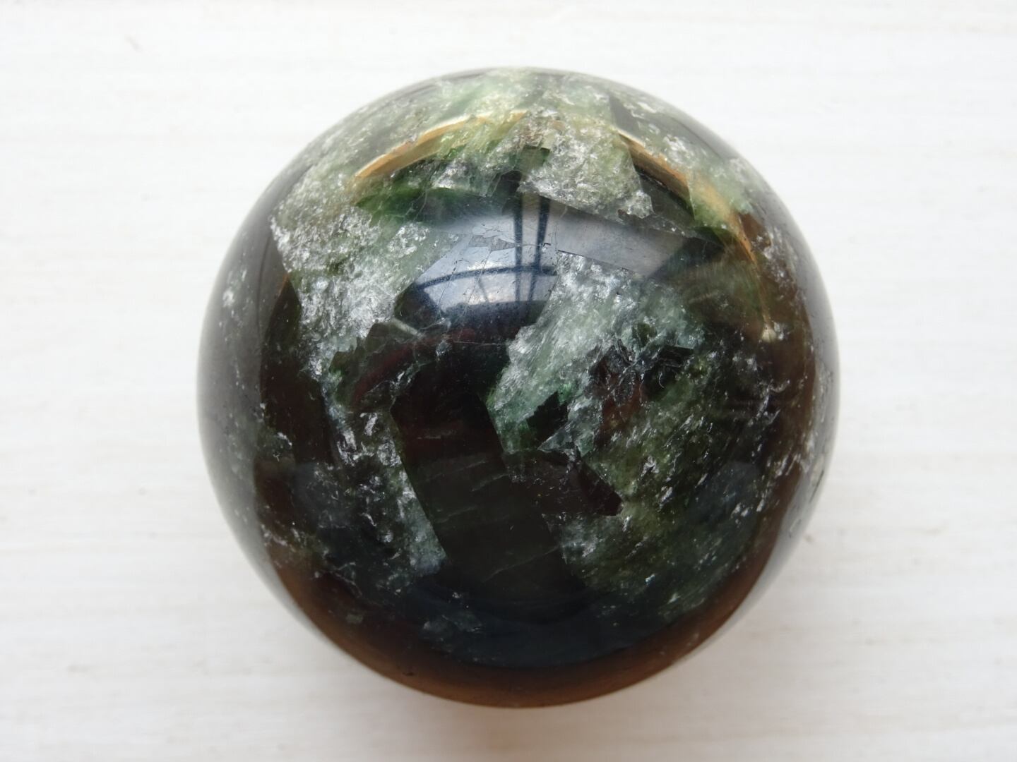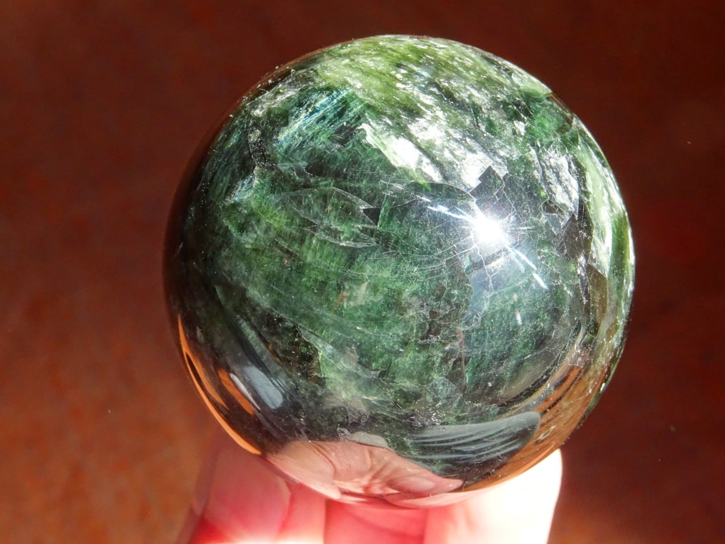 角閃石の一種で針結晶としてクォーツに含まれているイメージが強いこの石ですが、こんな風に単体で、しかもサイズ感のあるスフィアになっているものは初めて見ました。