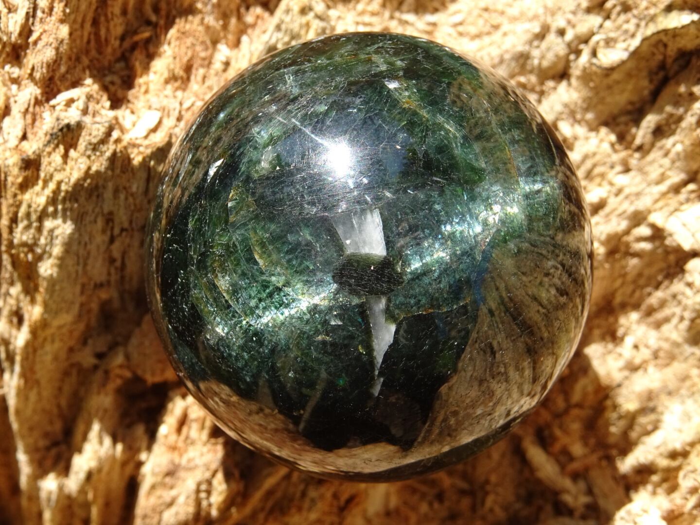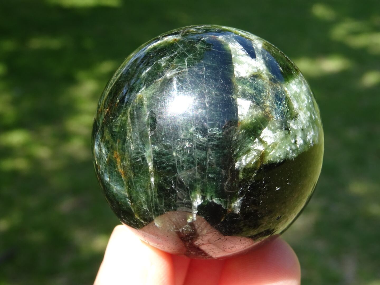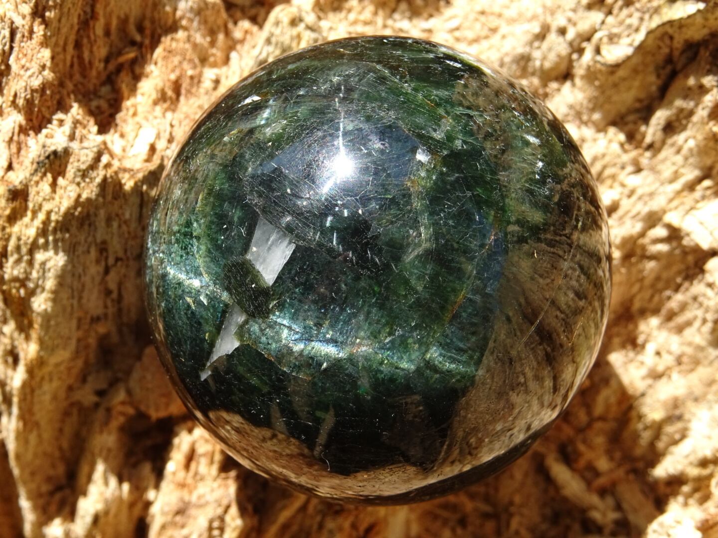 角閃石の一種で針結晶としてクォーツに含まれているイメージが強いこの石ですが、こんな風に単体で、しかもサイズ感のあるスフィアになっているものは初めて見ました。