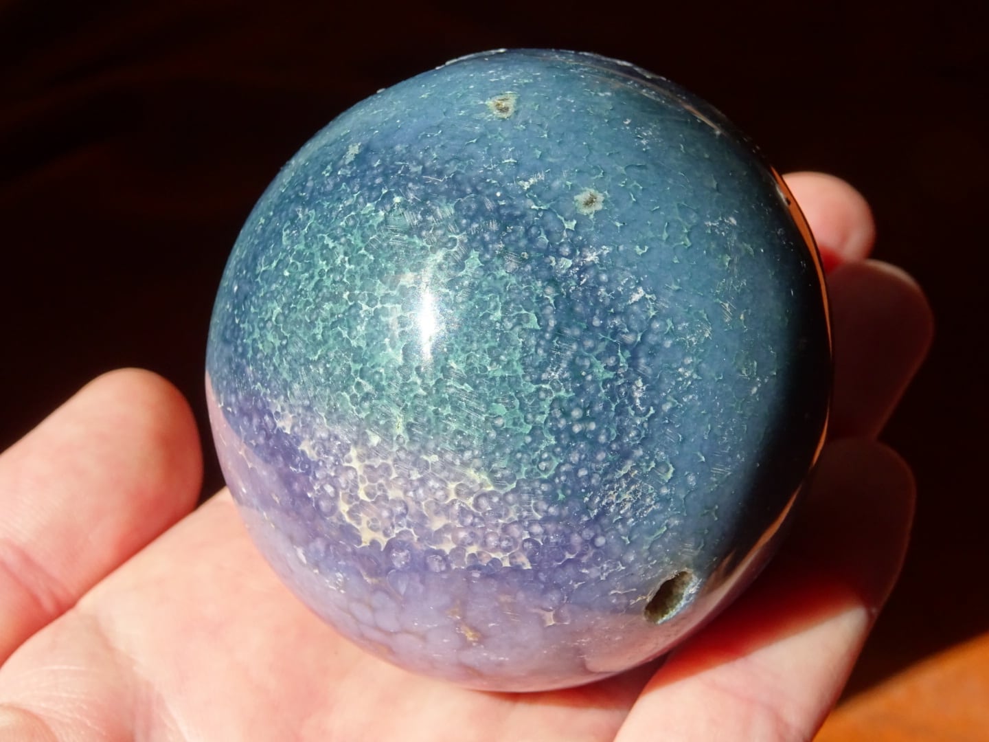 暖色系ではないのに、ぬくもりを感じる石です。海のいのちや、そこでの豊かな育みを感じる色、かな?SeaよりもOceanよりも、「Marine(マリン)」という響きが似合うかも。