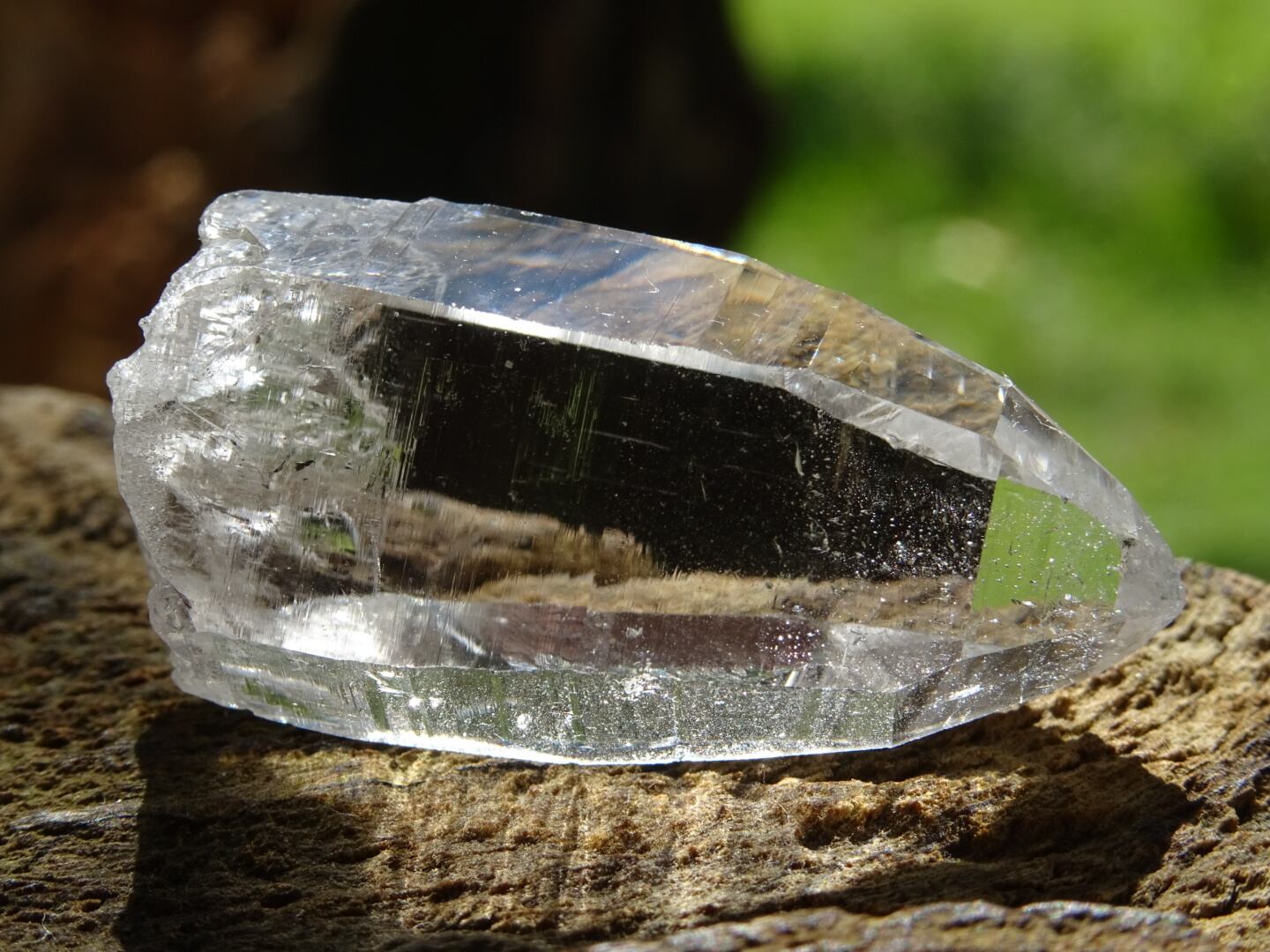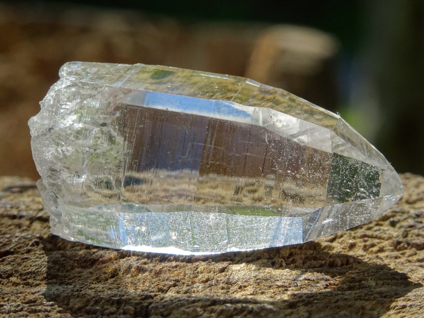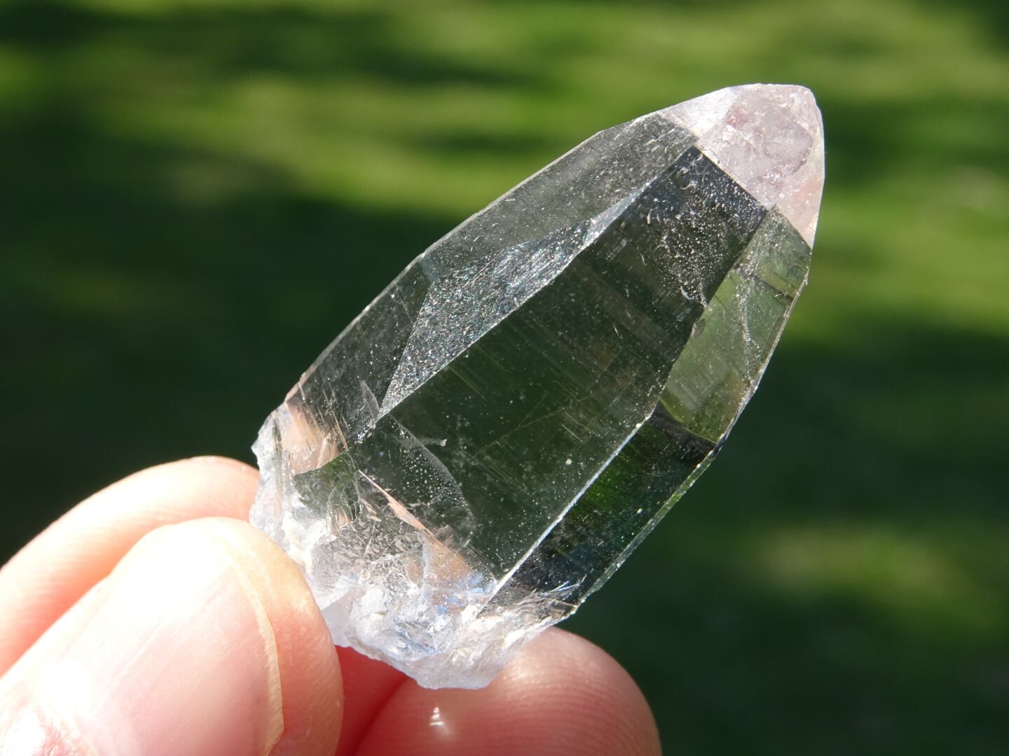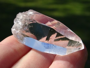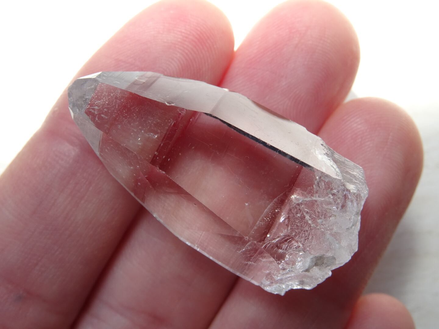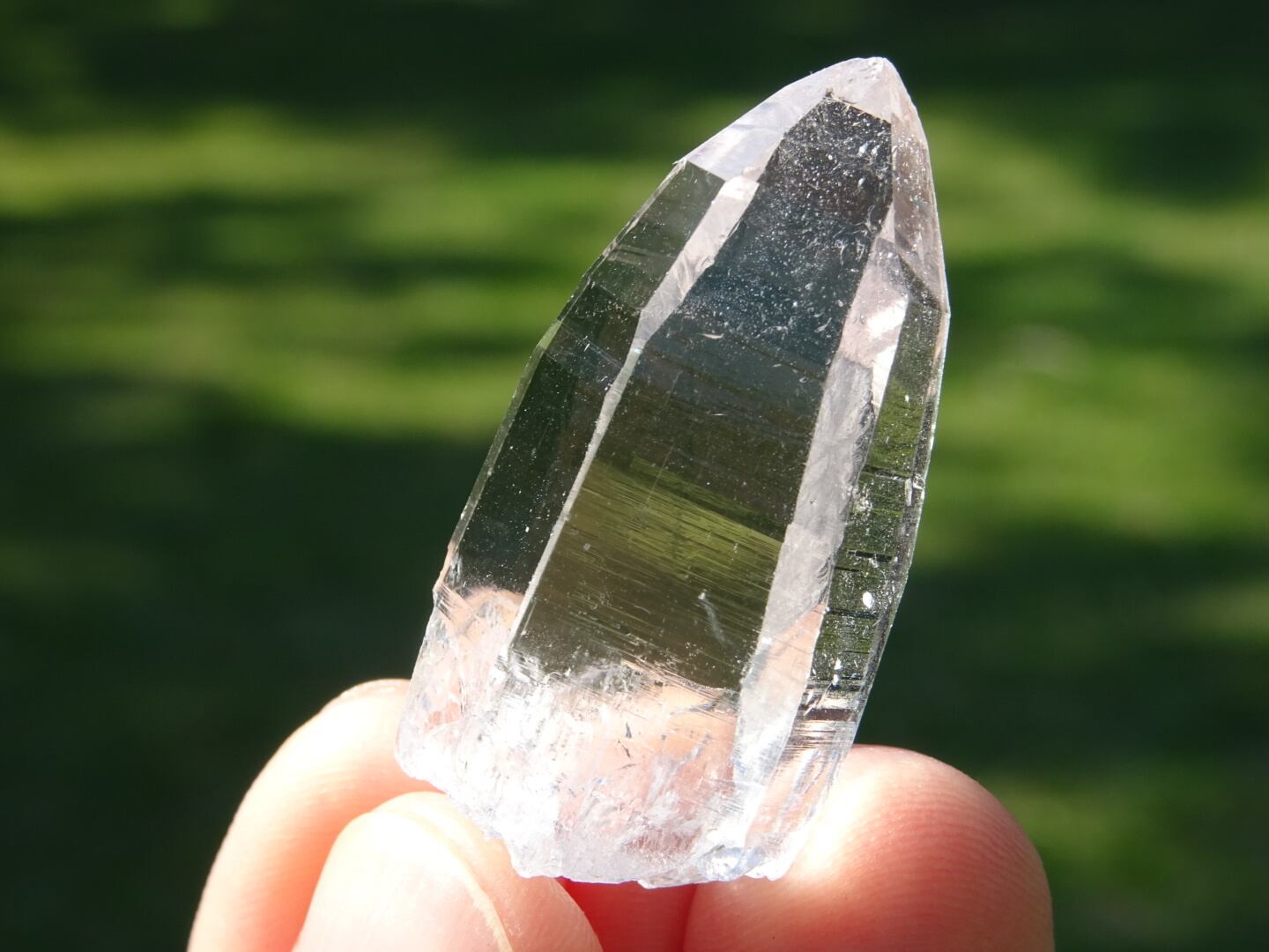 お水がそのまま結晶になったような透明感はご覧頂ける通りで、柱面に反射する虹色も綺麗。ファセットの2面にレコードキーパーのパターンが見られます。