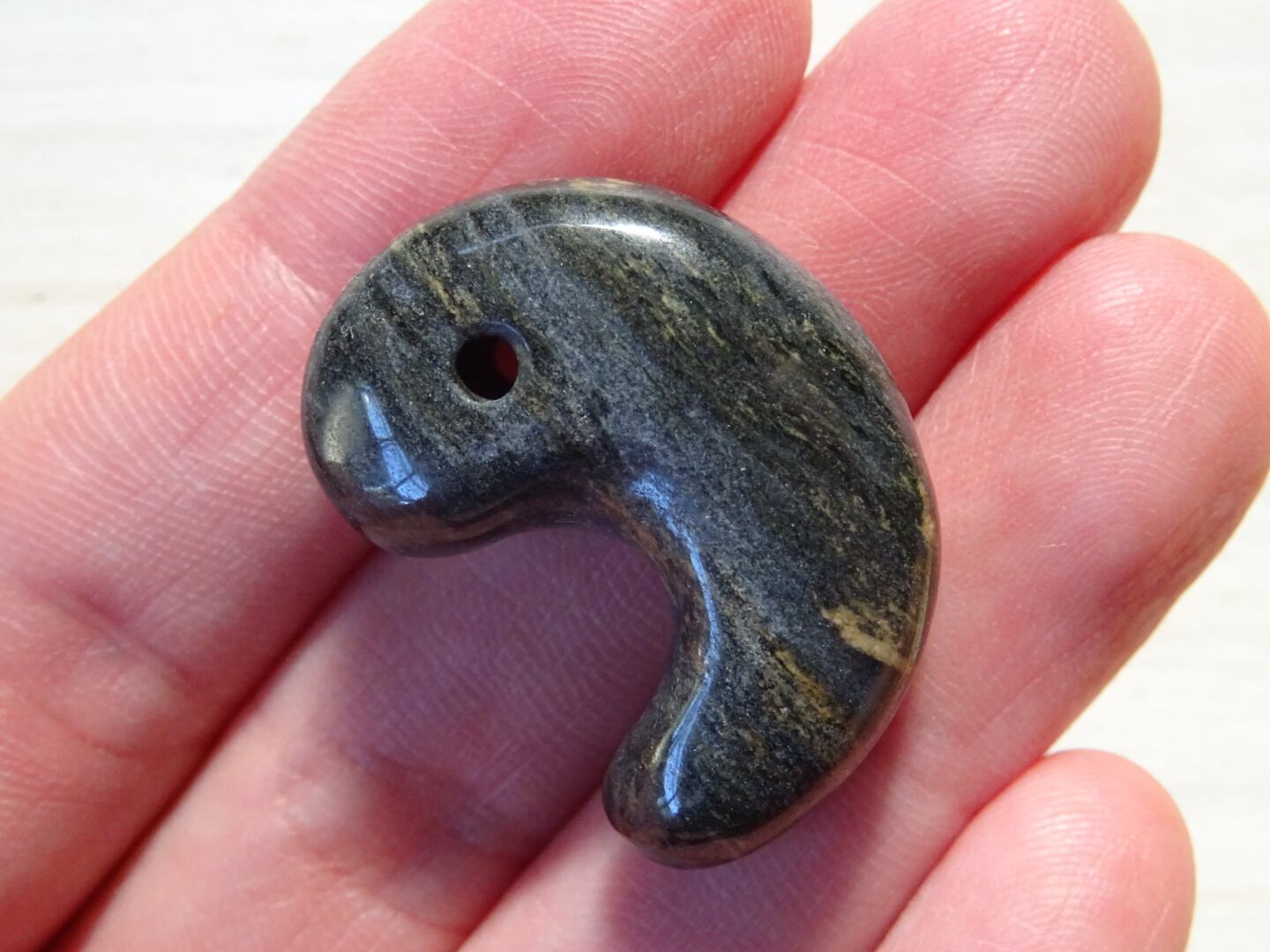 もう1点はグレーがかった、とても優し気な雰囲気の勾玉。