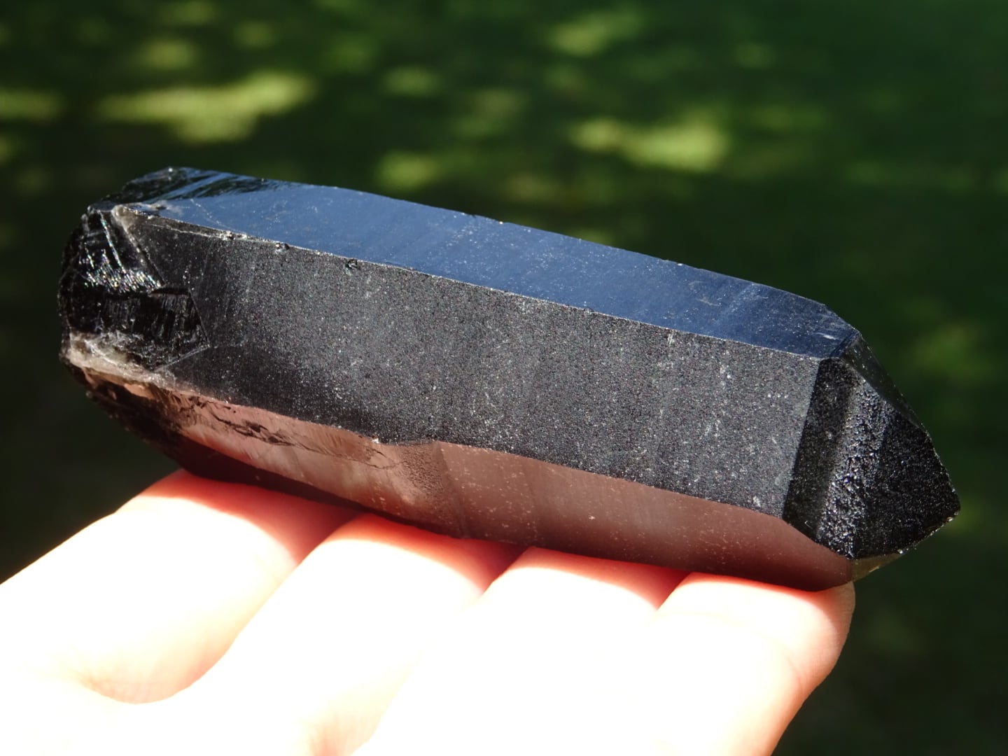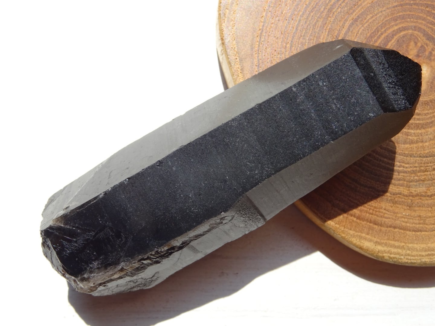 こちらは根本まで真っ黒に色づいた、山東省産の天然モリオン(黒水晶)です。