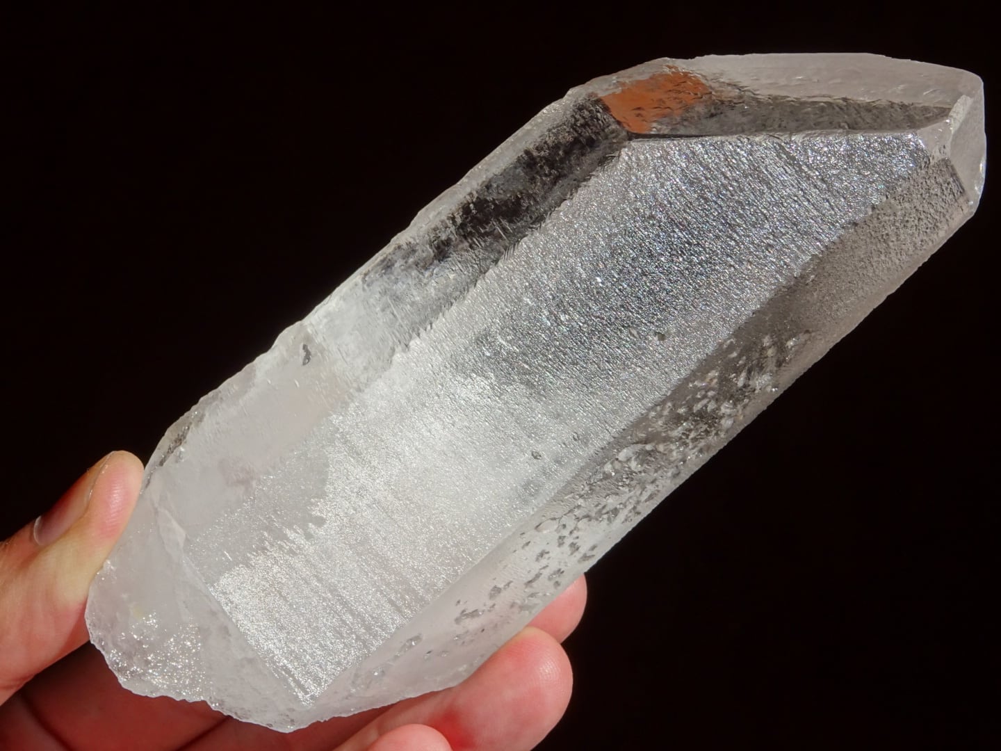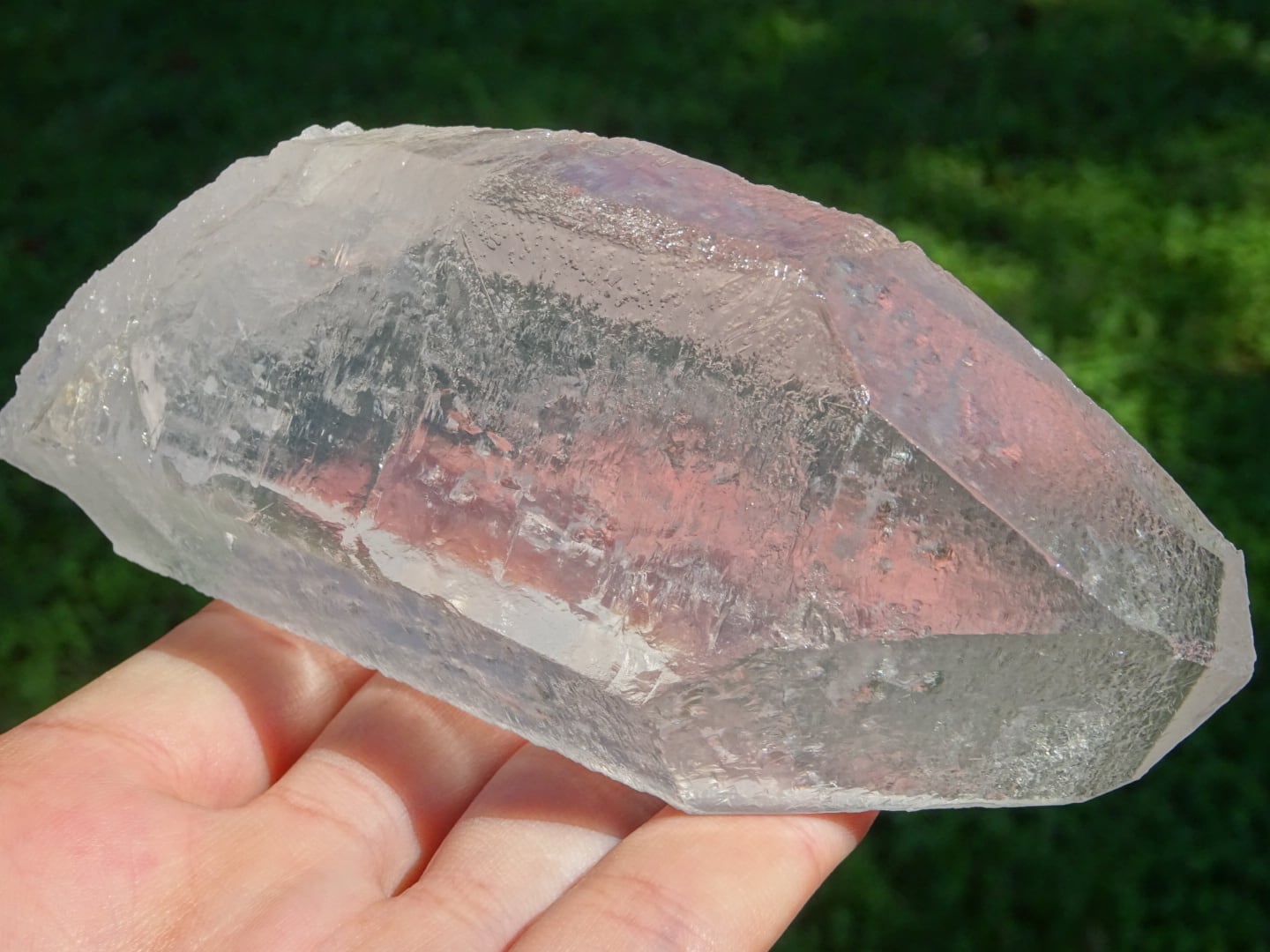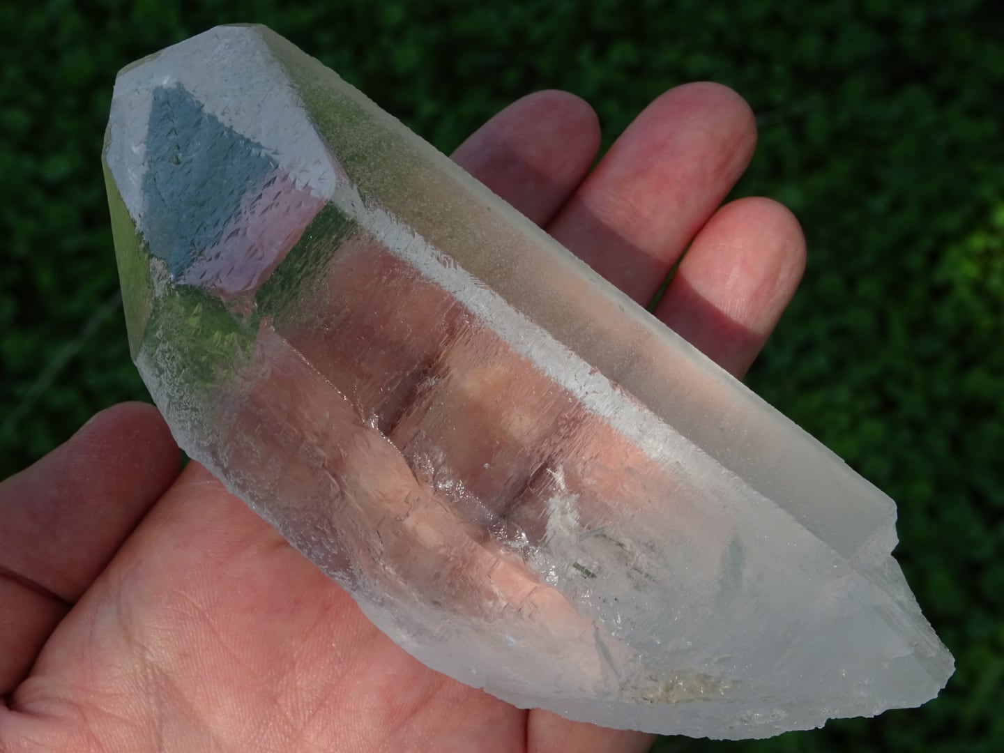 左側が浅くえぐれているので何とも言えませんが、おそらく3角形を7角形のファセットが挟んでいる「トランスミッター」なのだと思います。だからこんなに美しいのですね(トランスミッターの水晶は探そうと思ってもほとんど出会えません)。