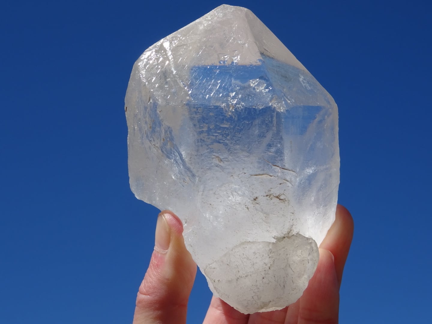 各ファセットはほとんど均整がとれているのですが、一番広い面(この面はとりわけ透明感があります)から4面に渡って、本当に美しい逆三角形のパターンが見られて圧巻です。まるで▽の雨粒のパターニングのよう。