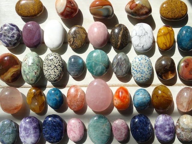 こちらは主に色石---とても素敵なタンブルたちが届いていて大変に眼福です。