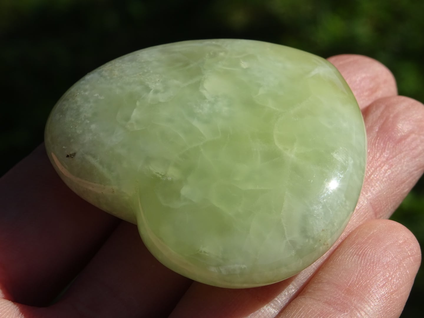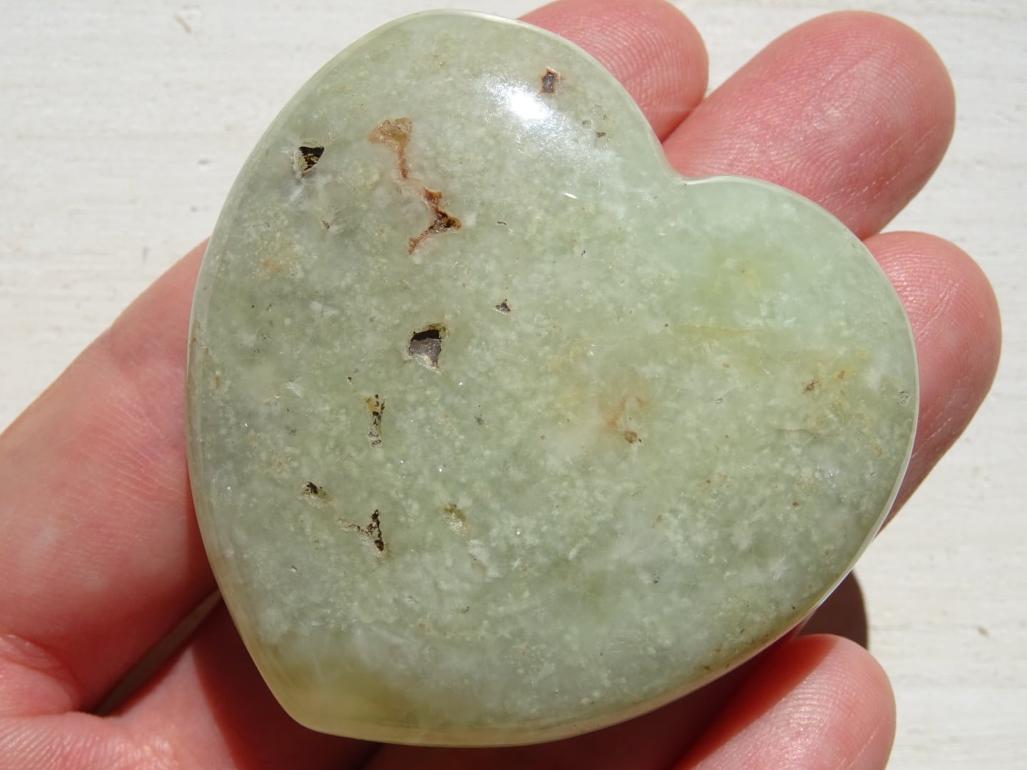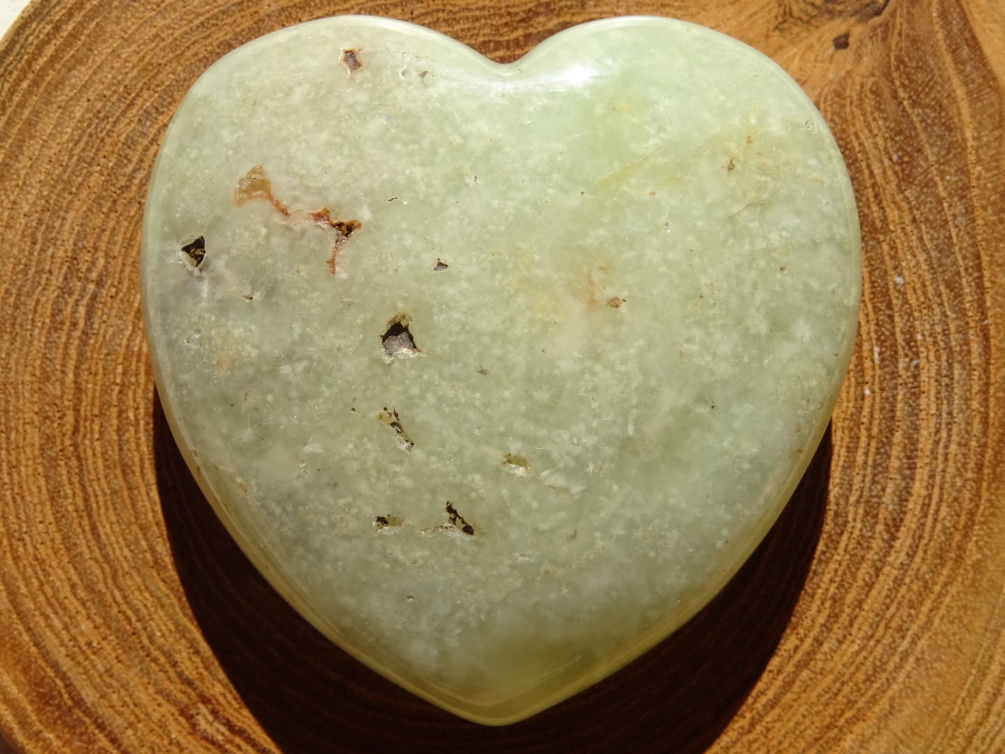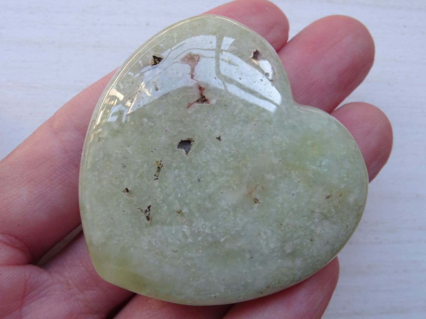 こちらは透明性のある石肌に淡いグリーンの表情が広がる、とてもとても美しいハートです。
