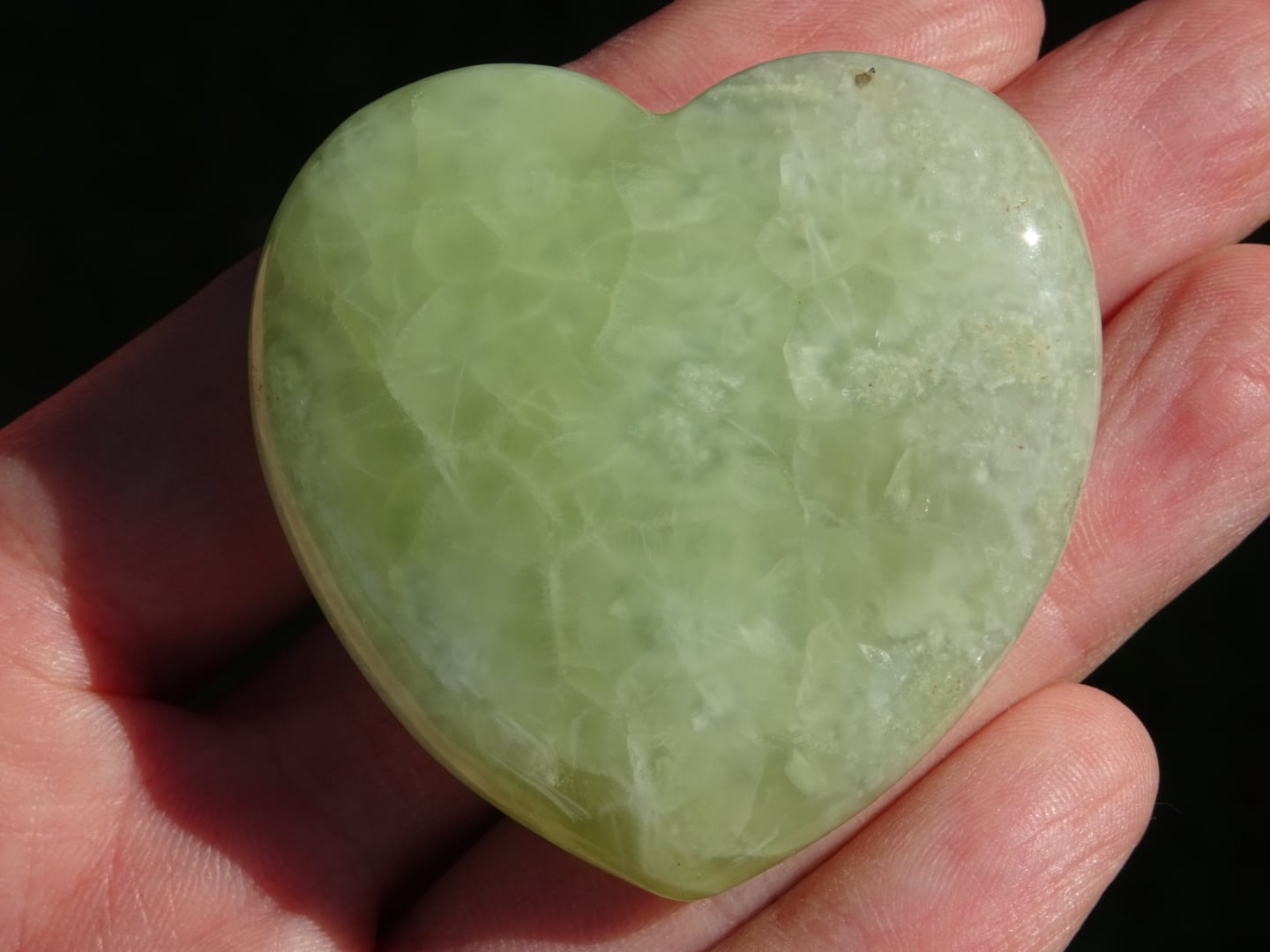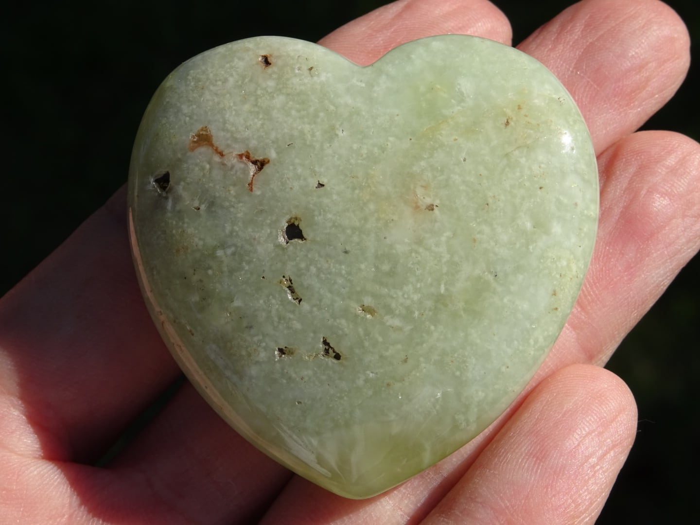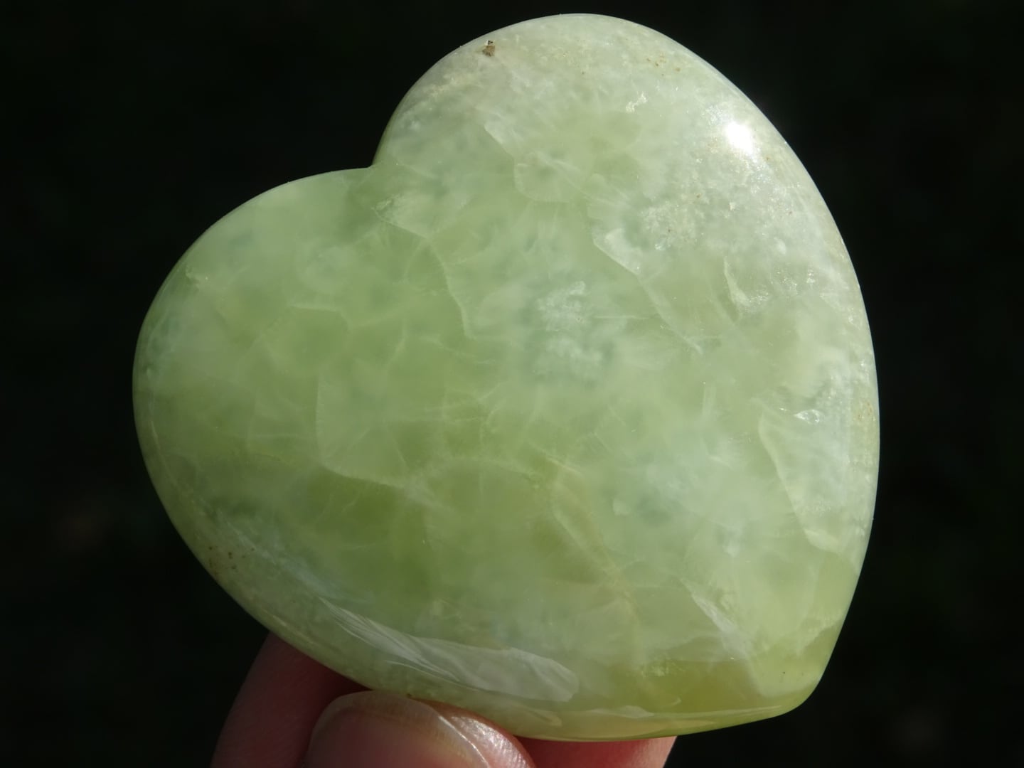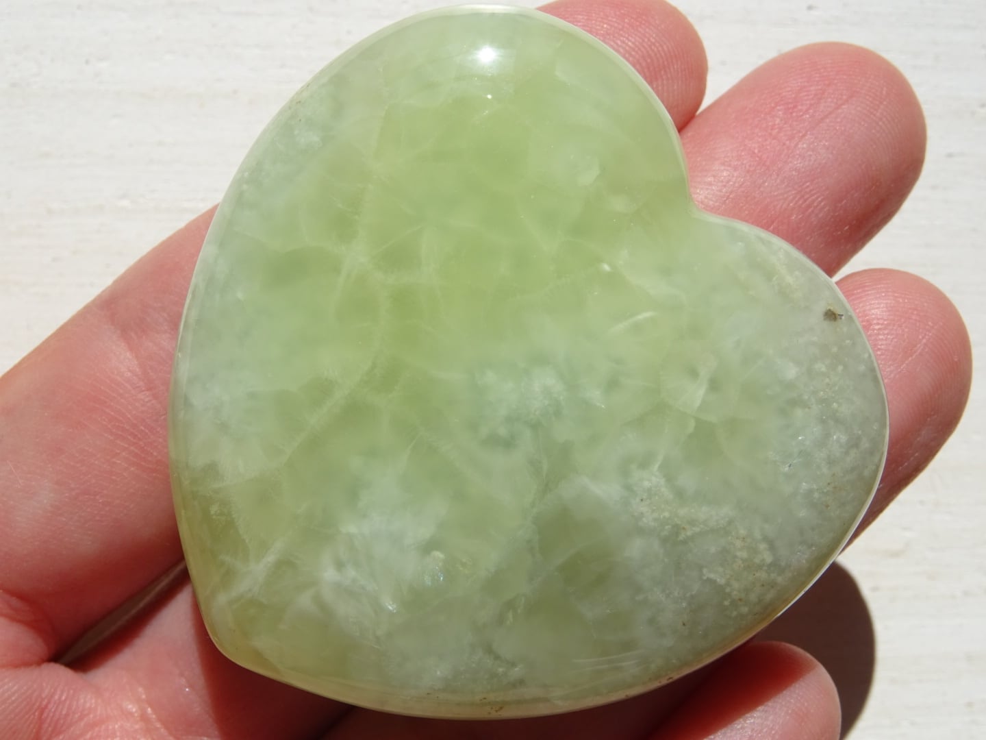 こちらは透明性のある石肌に淡いグリーンの表情が広がる、とてもとても美しいハートです。