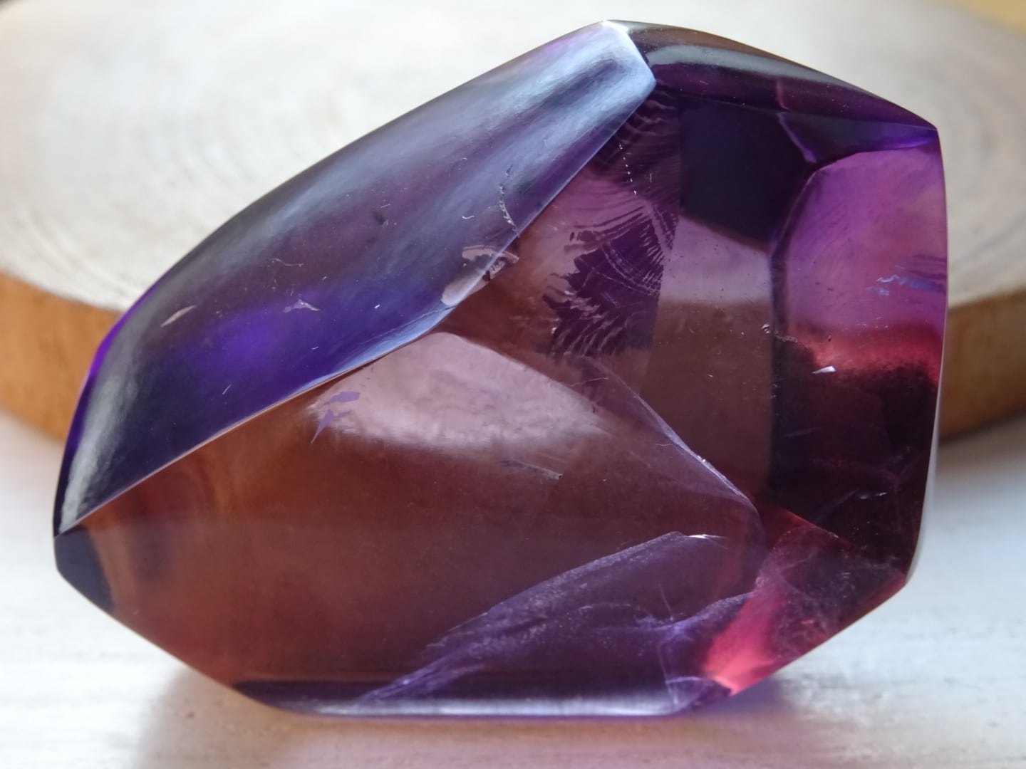 パープルの色合いが濃厚に出ていて、部分によっては薄っすらとアメトリンになっています。光や角度によって本当に魅せるような「紫の表情」を見せてくれますので、ぜひぜひ動画でもご確認ください。