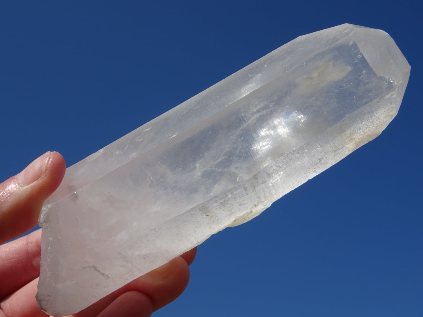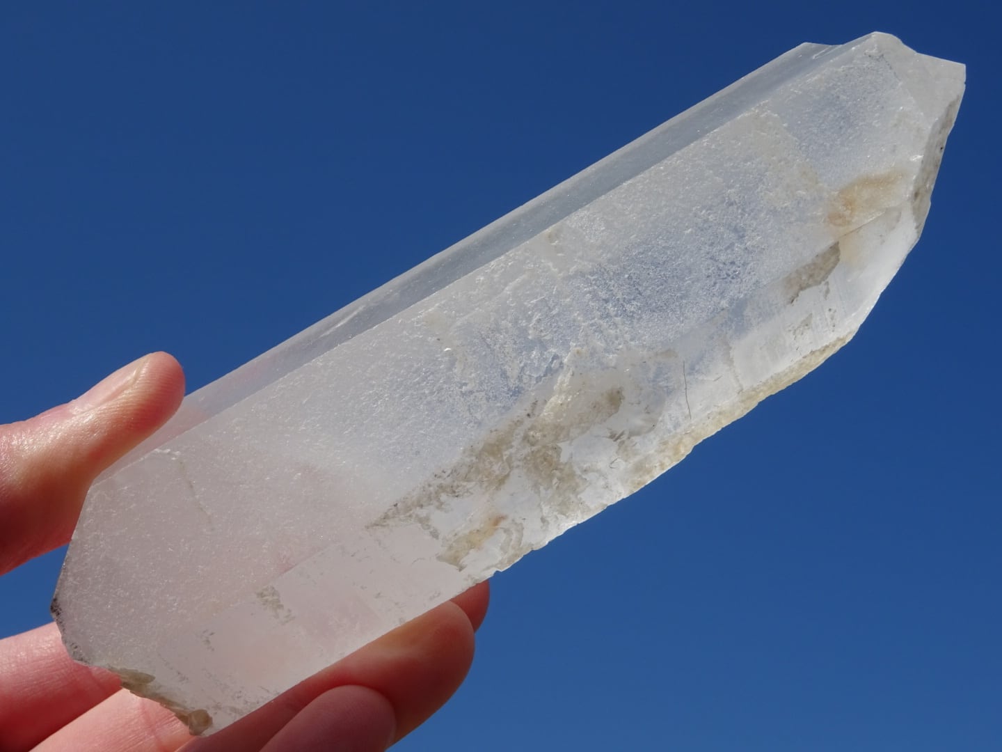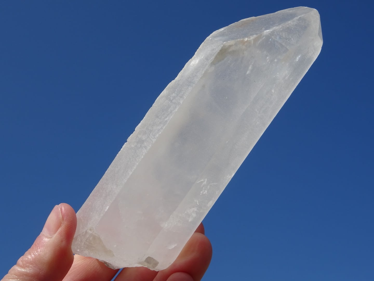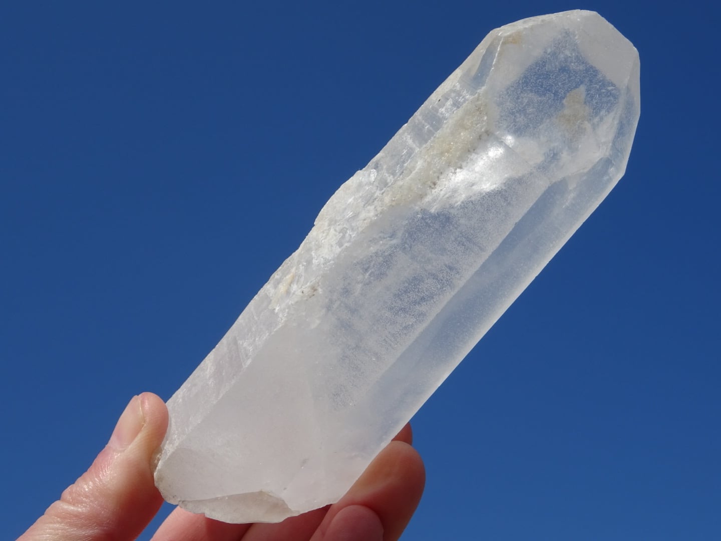 白い塔のようにまっすぐにしっかりと結晶していて、サイズ感もたっぷり。握っているとボリュームを感じます。