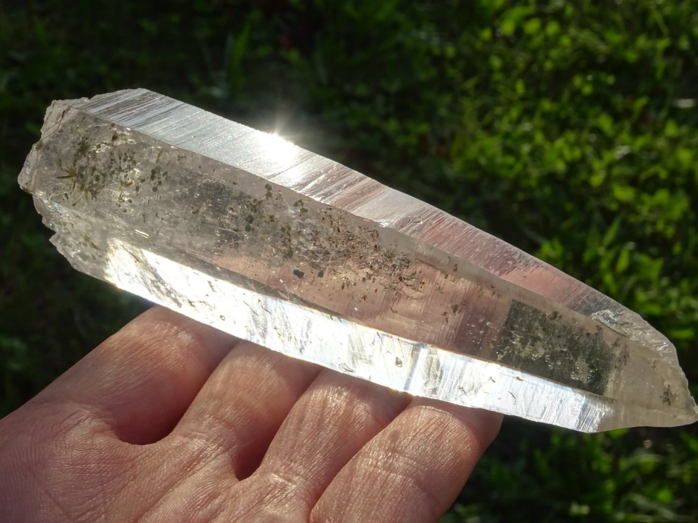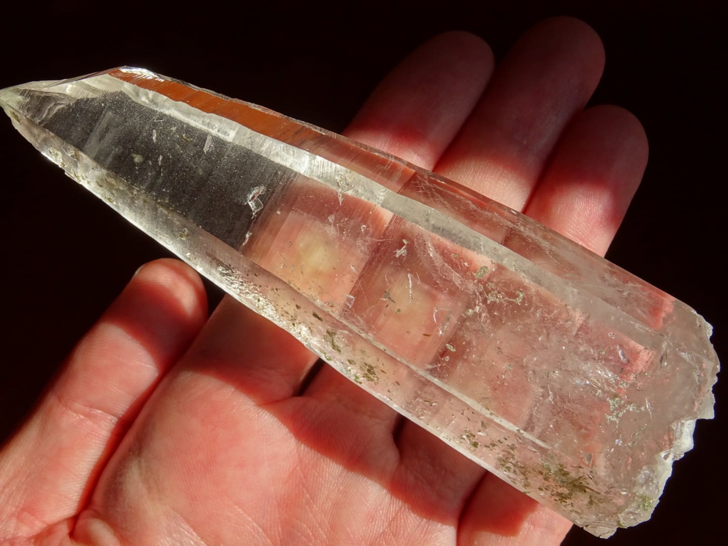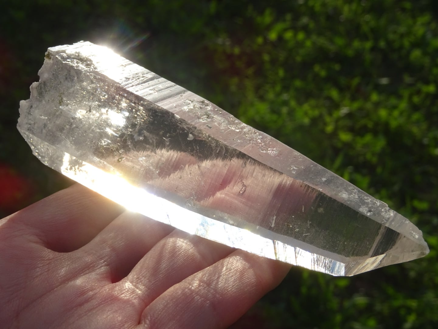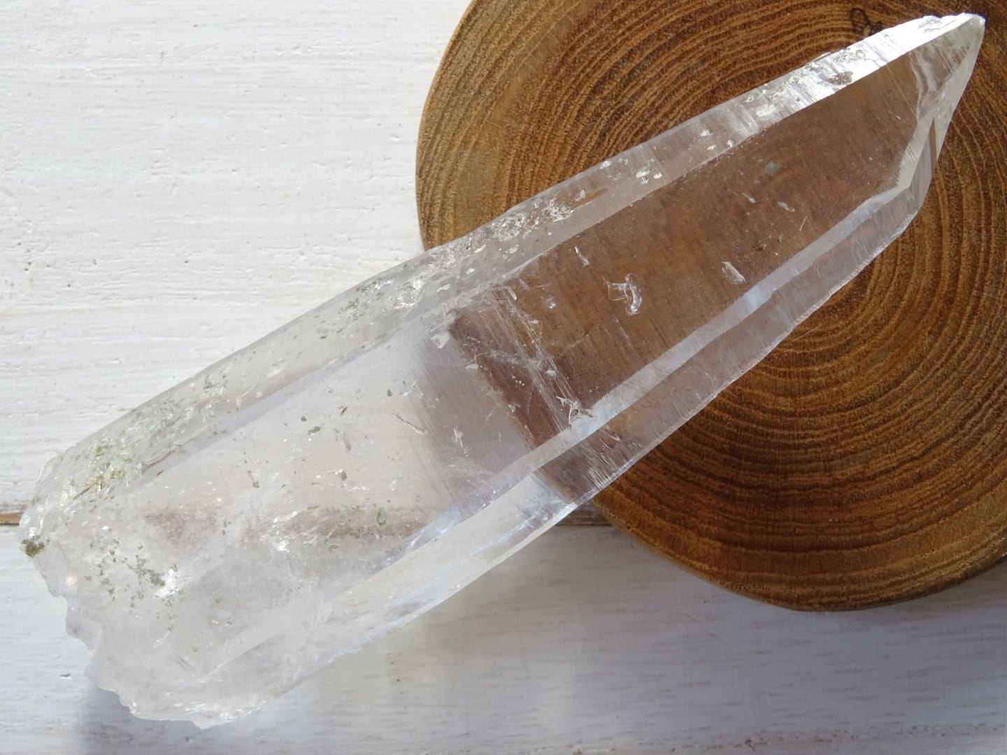 ゆっくりと光の粒子が積み上げられていくように、永い永い歳月をかけて形を成していったこのクリスタル。「光でできたもの」「光に満たされたもの」。水晶はみんなそうですが、この石を見ていると、そのピュアな光の純度を想ってしまいます。隙がないくらいの純度の、美しい光の柱のようだなと。