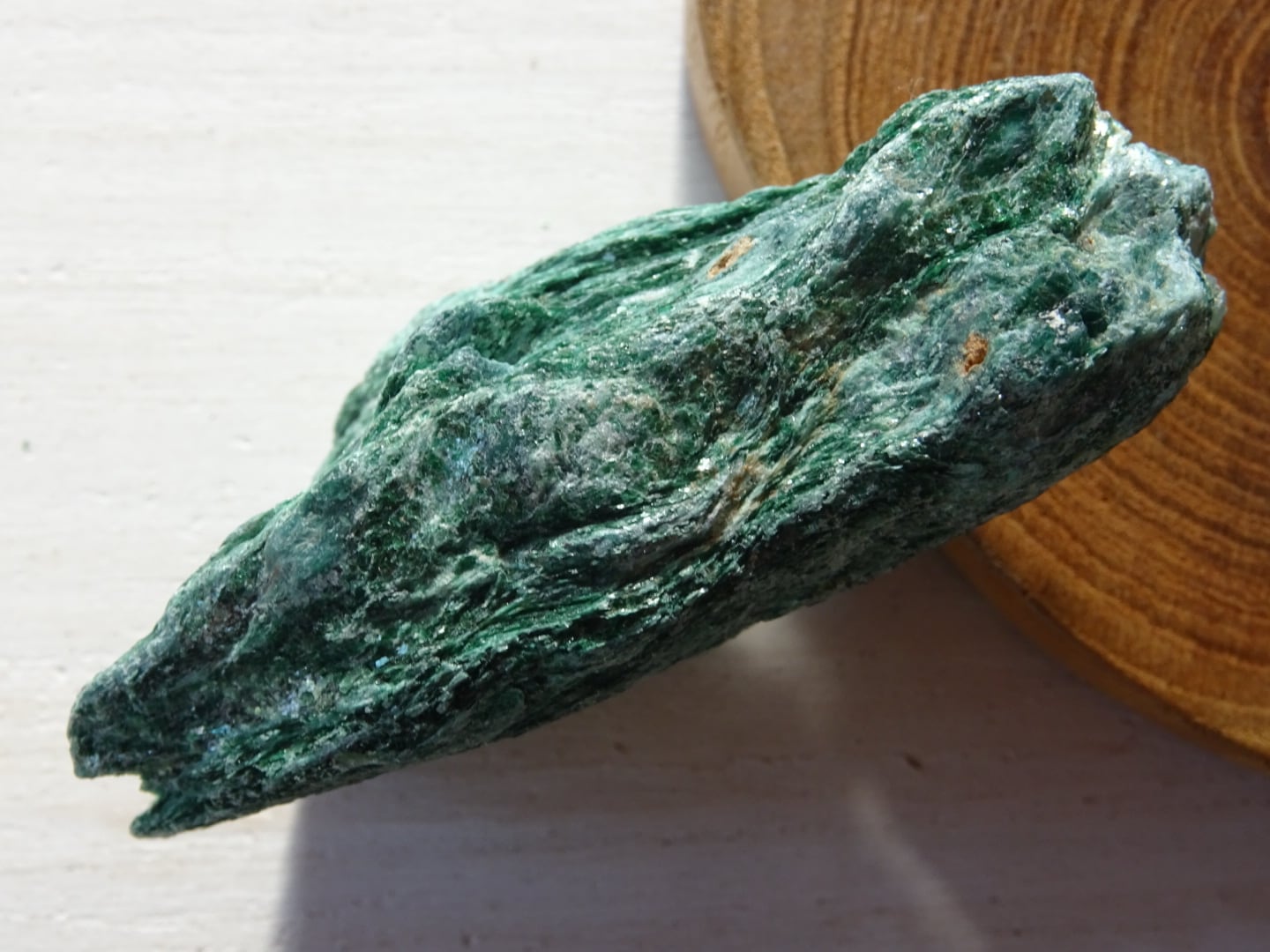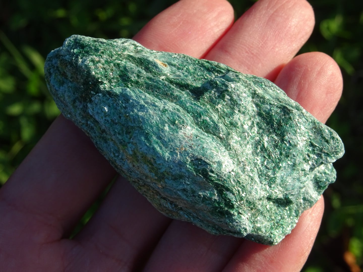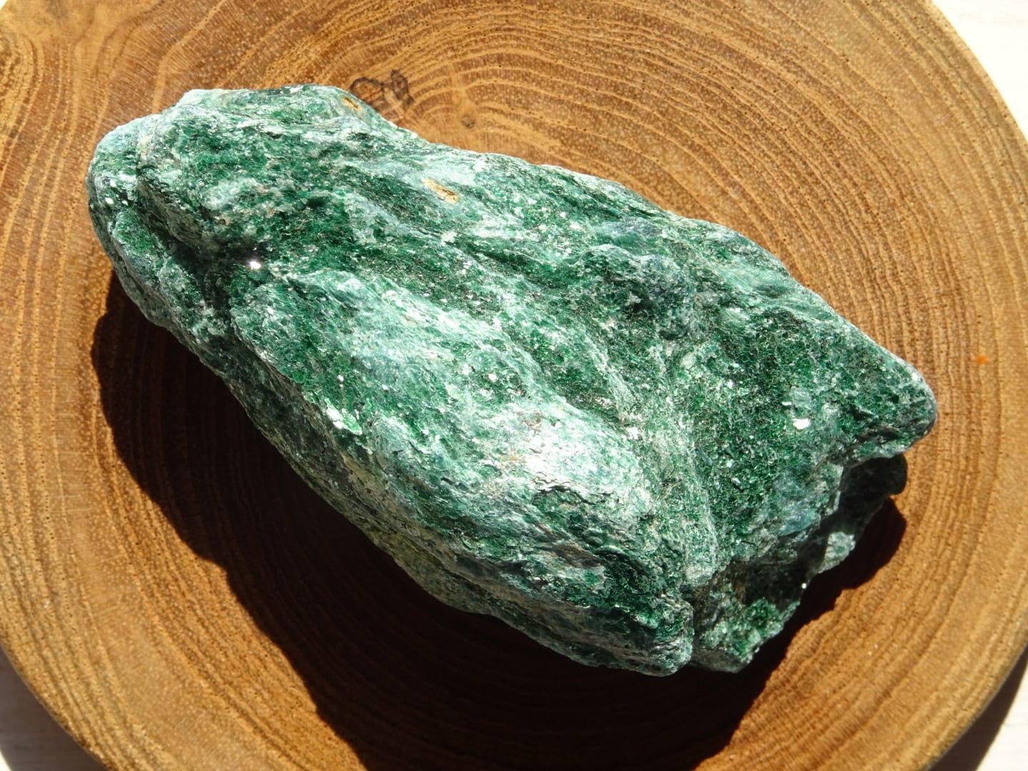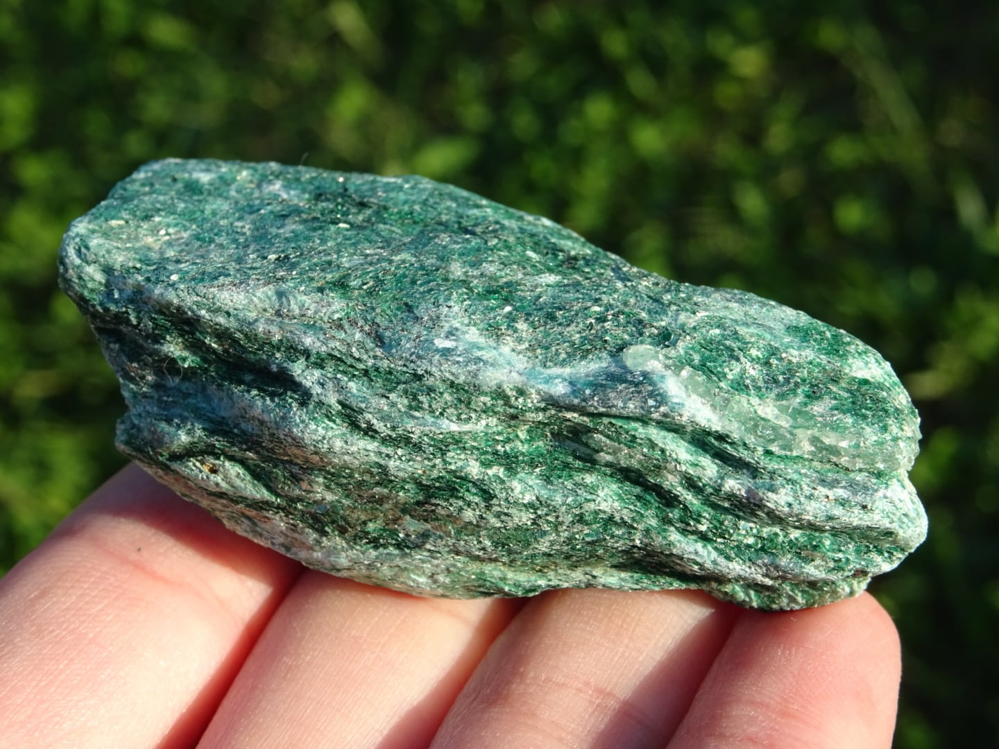 フックサイトは雲母、つまりマイカの一種なのですが、クロムを含むことによって美しいGreenの色合いになります。クロムの含有率によって濃淡が決まるそうなので、その意味ではこちらは「クロムたっぷり」の濃いめの色合いかも知れません。
