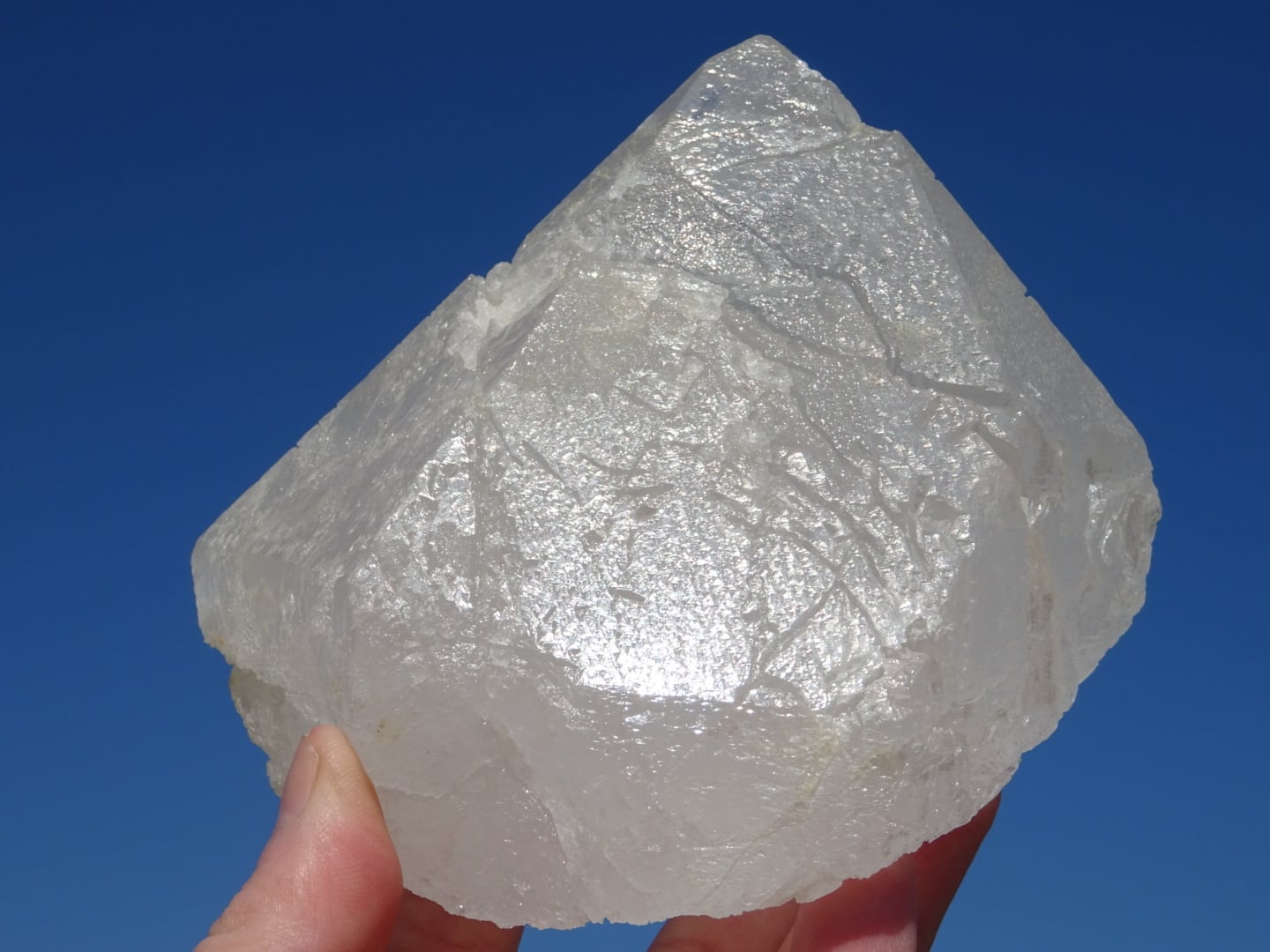 とてもサイズ感のあるクリスタルですが、全体が荒々しく溶かされていて。けれどその美しい結晶形をしっかりと残していて。まるで切れ込みを入れたように深く溶かされている部分も。