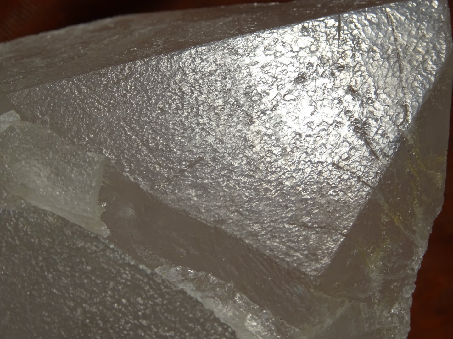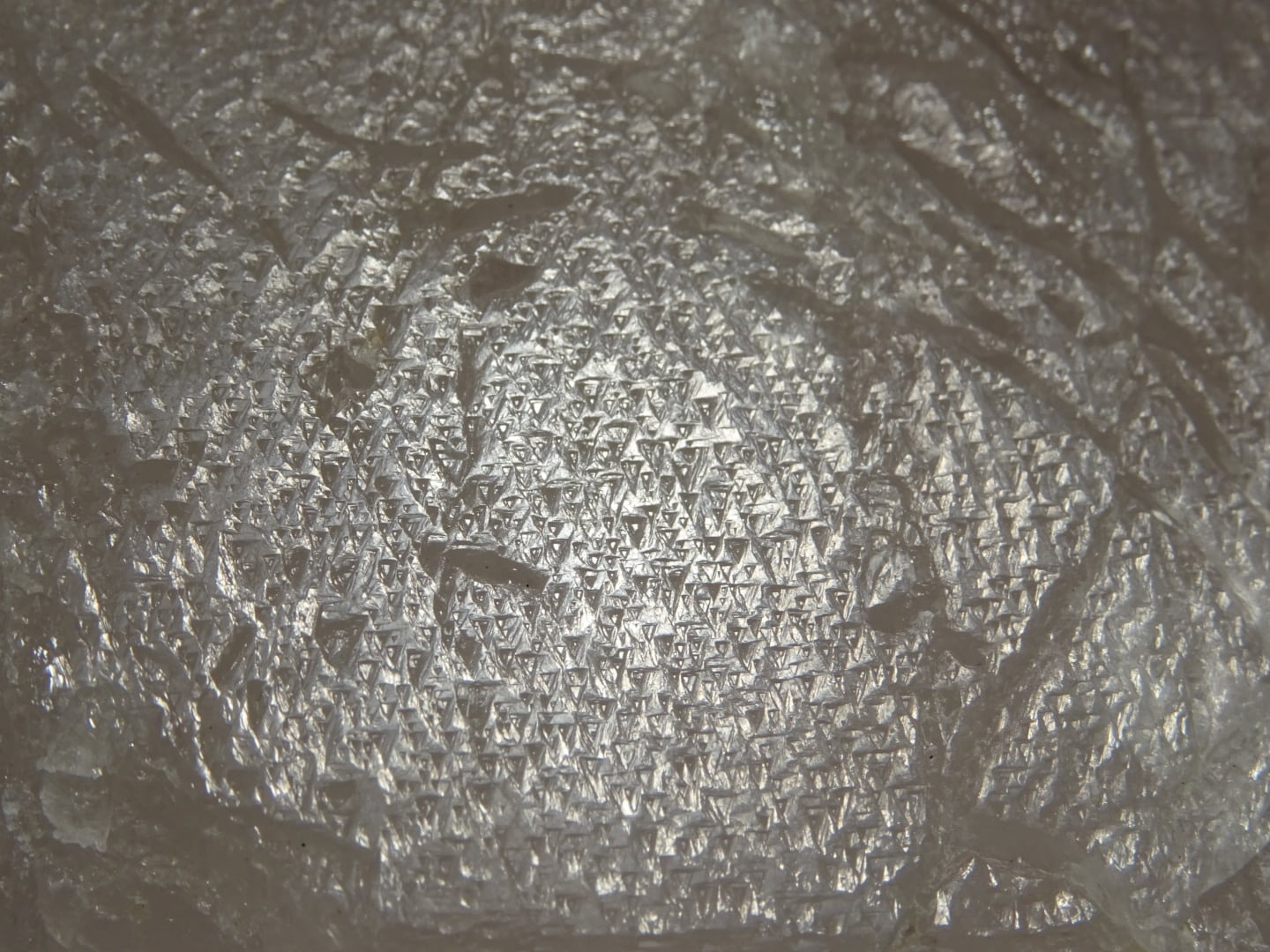 その隣の広いファセット面にも、広範に渡って美しい3角形の窪みがたくさん。