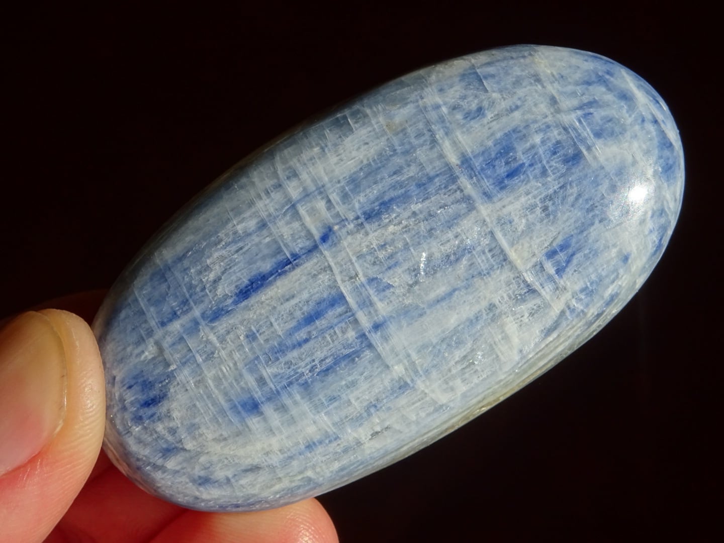 カイヤナイトって原石だと(ザクザクしているので)少々とっつきにくいのですが、こうした磨き石だとニギニギしたり、一緒に眠ったり、気軽にお付き合いできるのもポイントです。