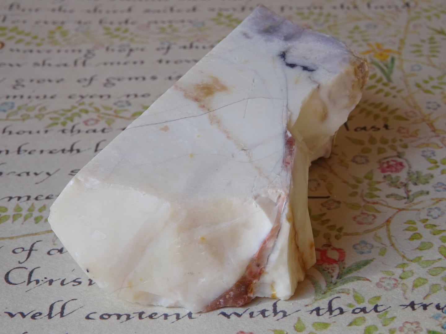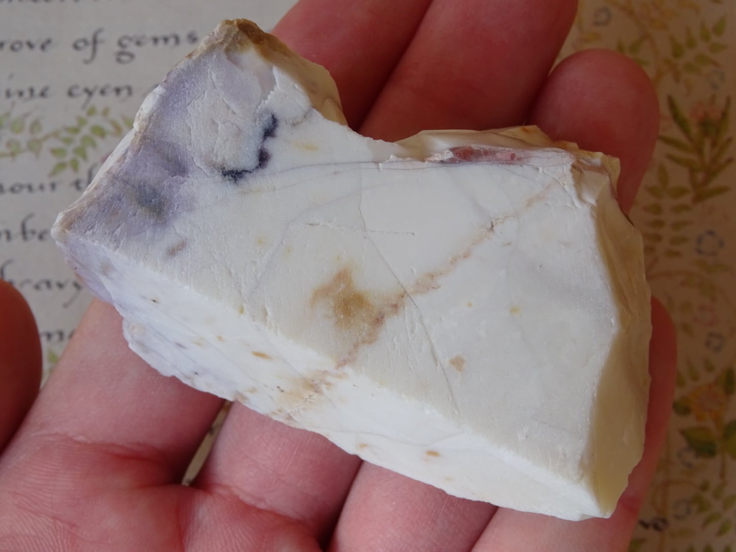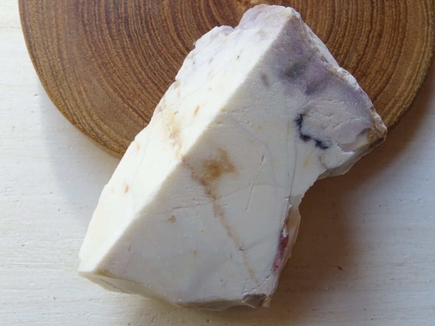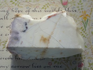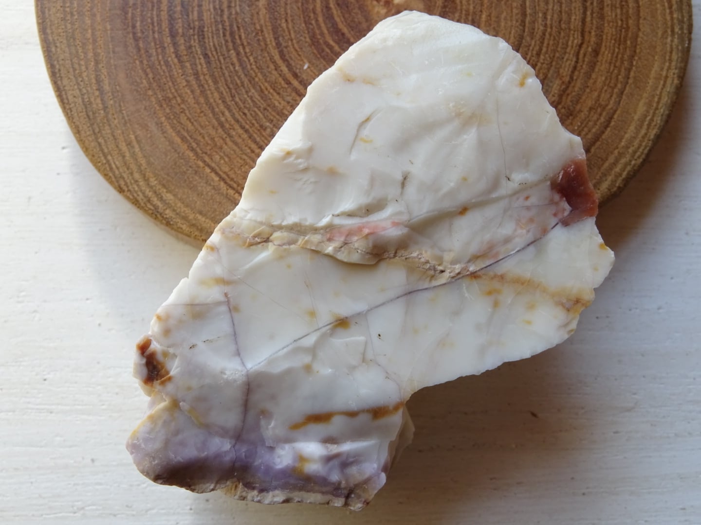 地色は主にホワイト/パープル/ピンクですが、複合鉱物ゆえに切り出された部分によってはもっと表情豊かになります。