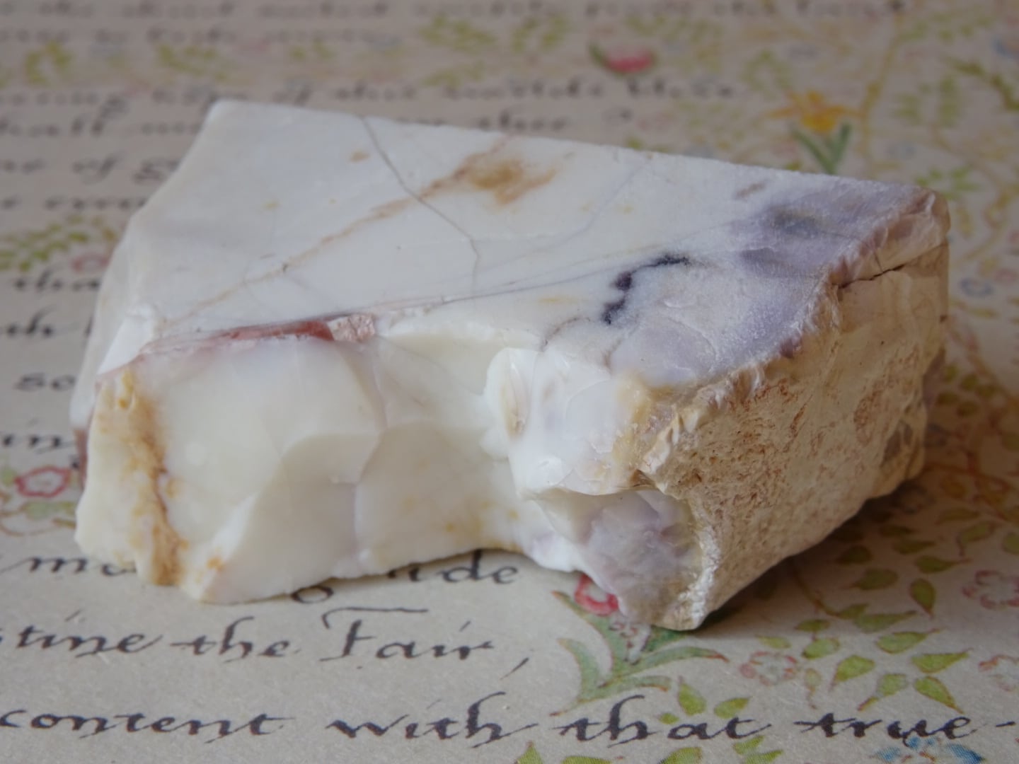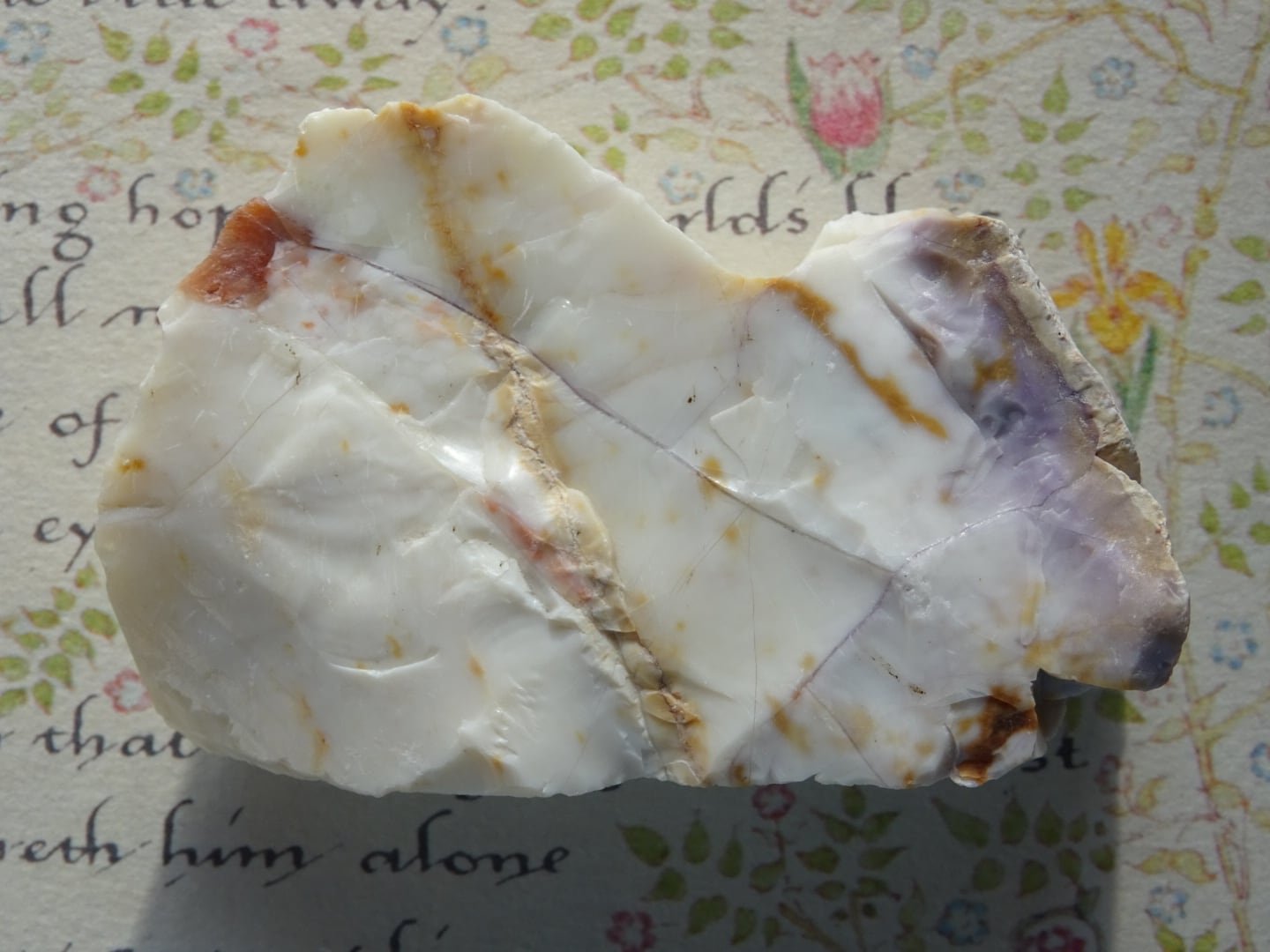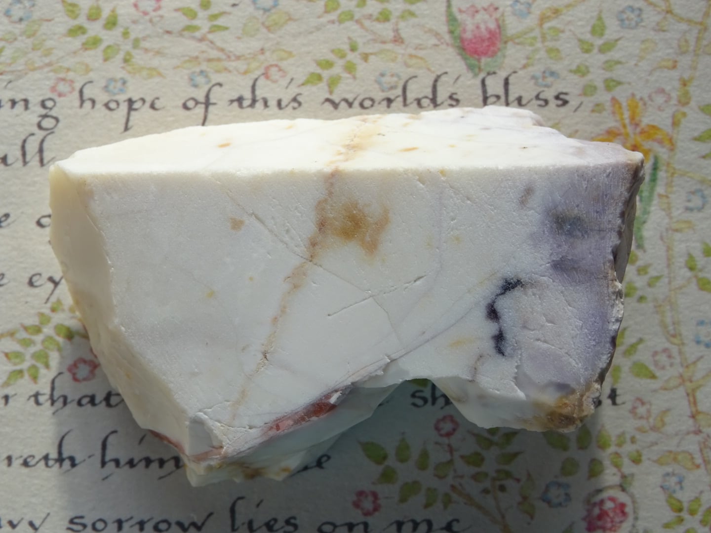 地色は主にホワイト/パープル/ピンクですが、複合鉱物ゆえに切り出された部分によってはもっと表情豊かになります。