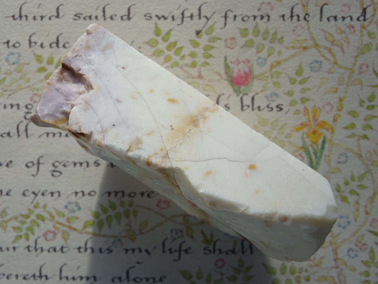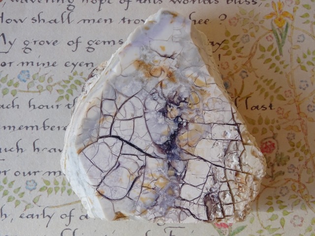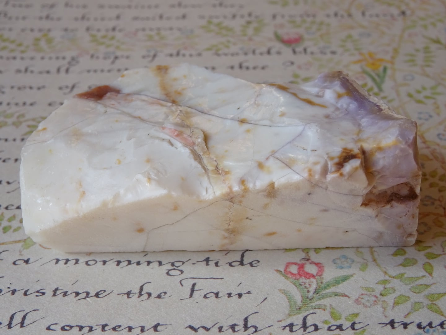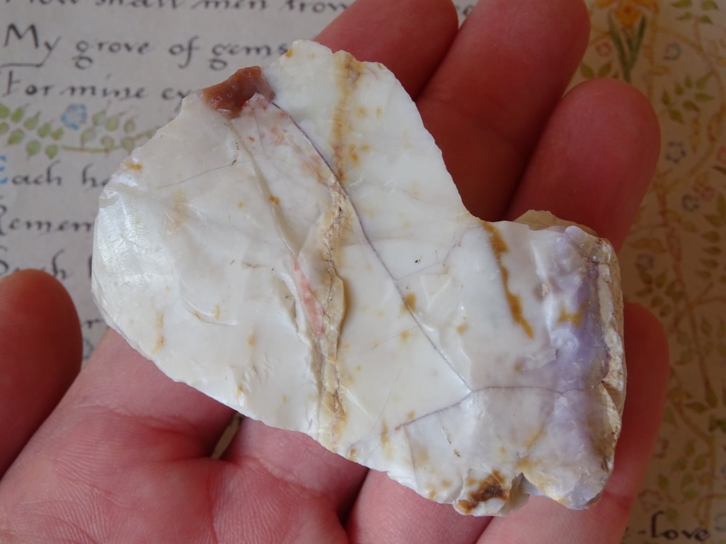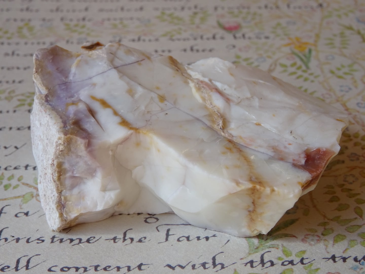地色は主にホワイト/パープル/ピンクですが、複合鉱物ゆえに切り出された部分によってはもっと表情豊かになります。