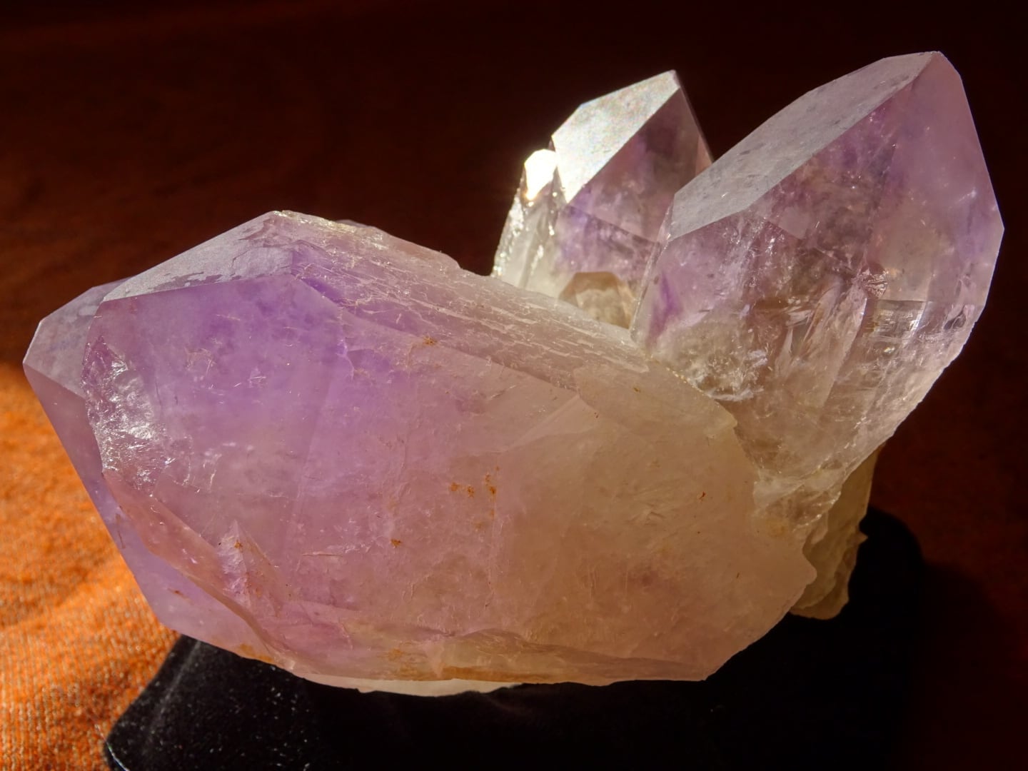 やさしく、けれど濃厚にパープルが出ている結晶や、透明感をもって光るような結晶と、表情も豊か。