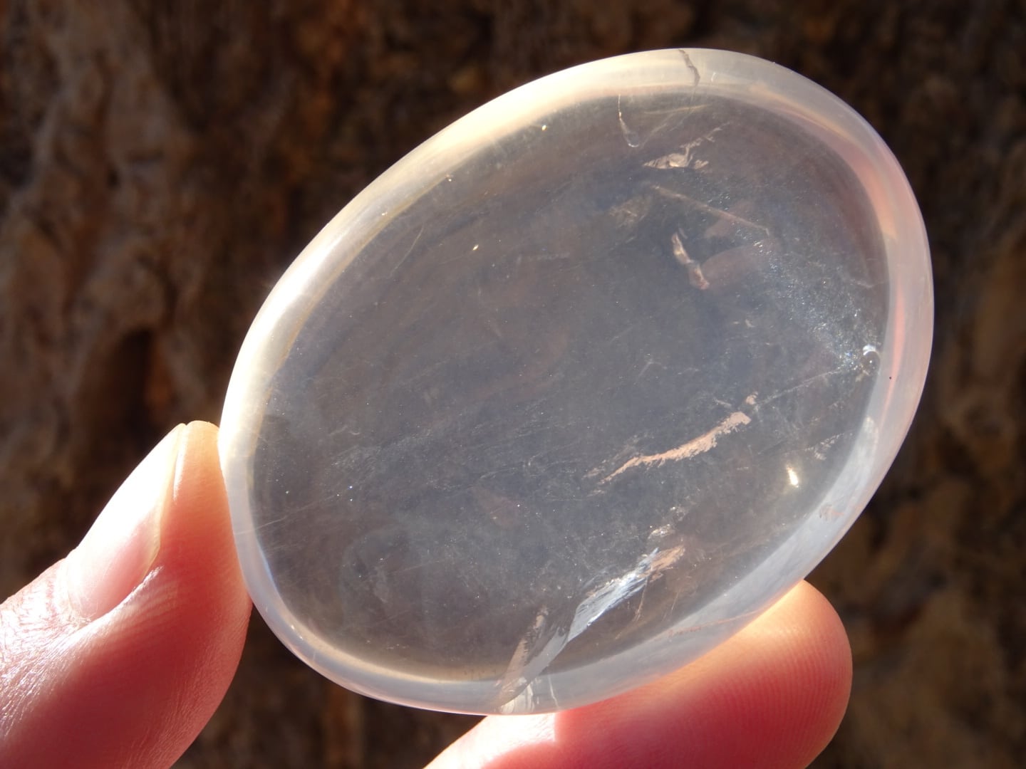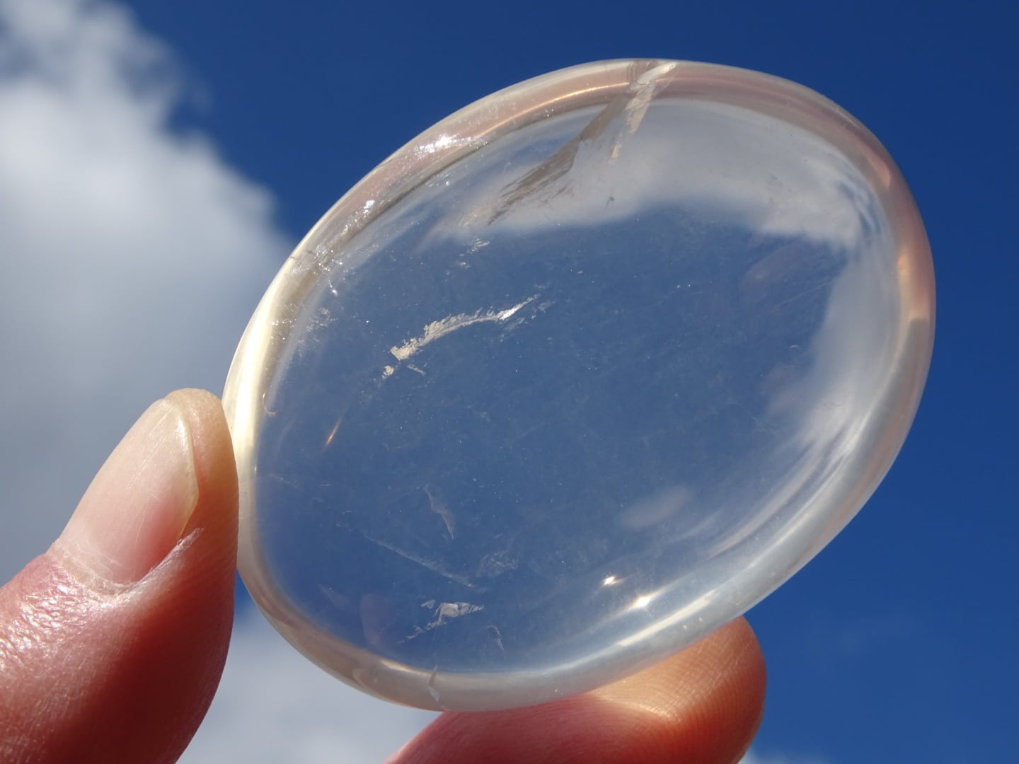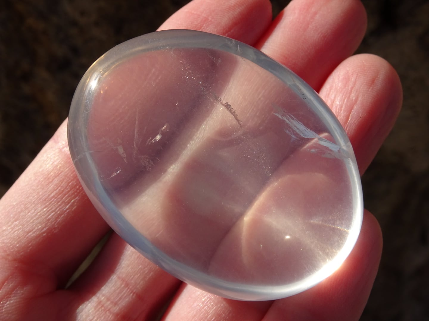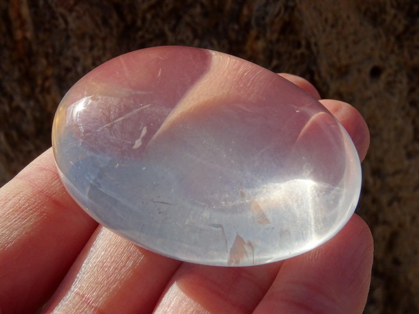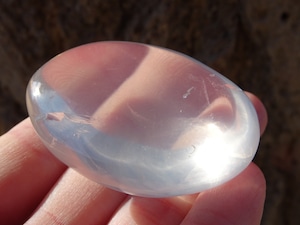 手のひらに載せていると、本当にプルンとした雫を載せているようで、この石の優しさが伝わってきます。