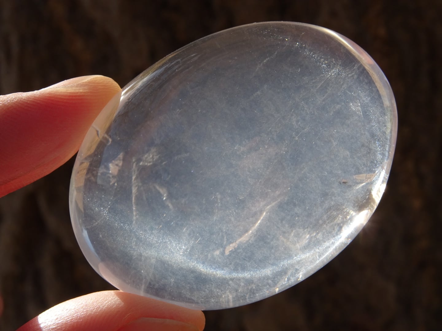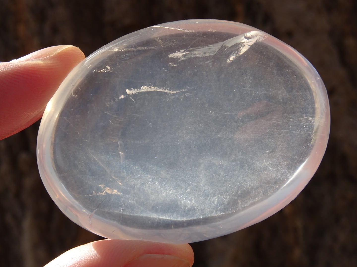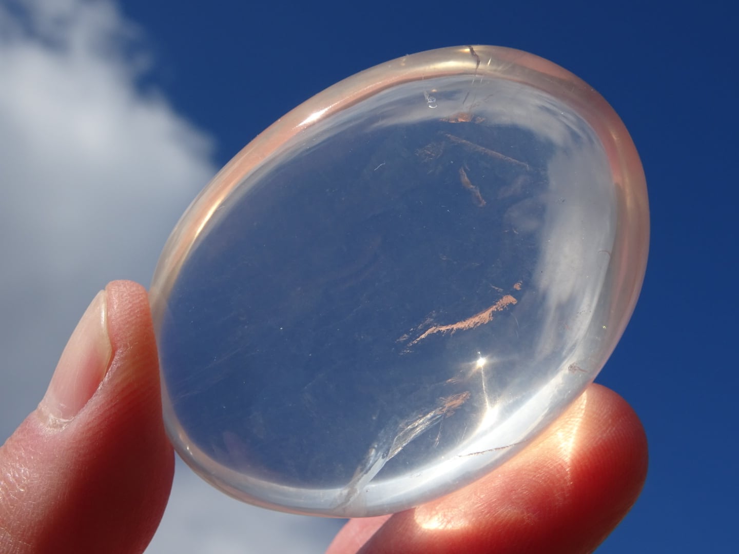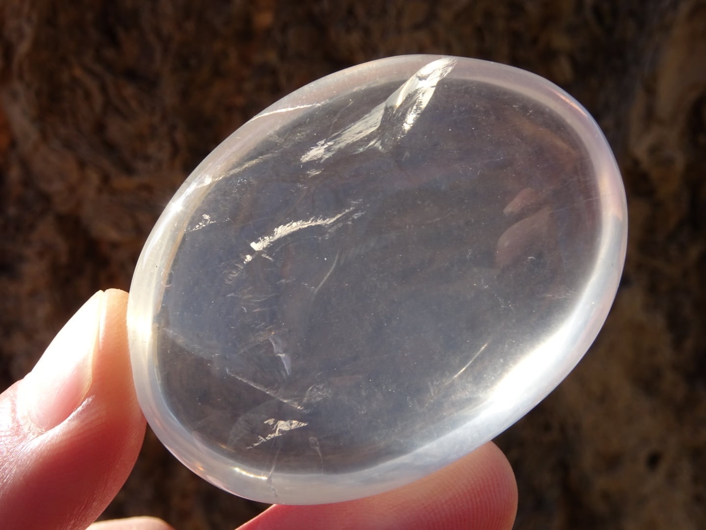 手のひらに載せていると、本当にプルンとした雫を載せているようで、この石の優しさが伝わってきます。
