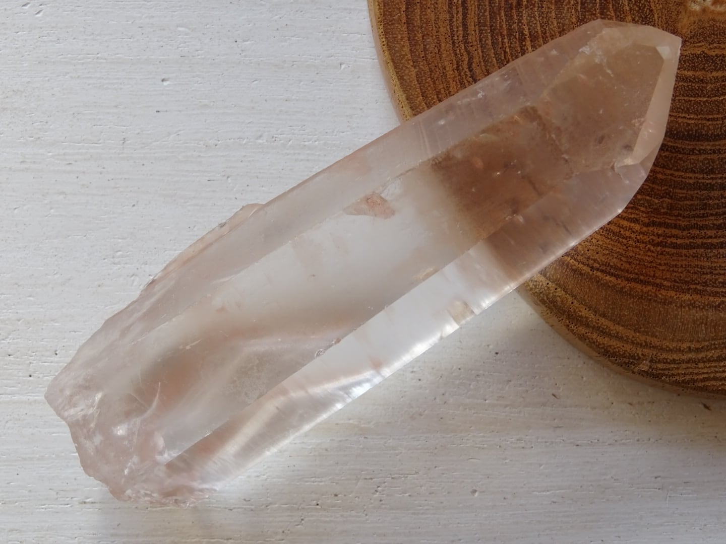 結晶シルエットがとても綺麗で、柔らかな色合いとほぼノンインクルージョンの姿がとにかく美しいです。サイドのレムリアンリッジもよいですね。