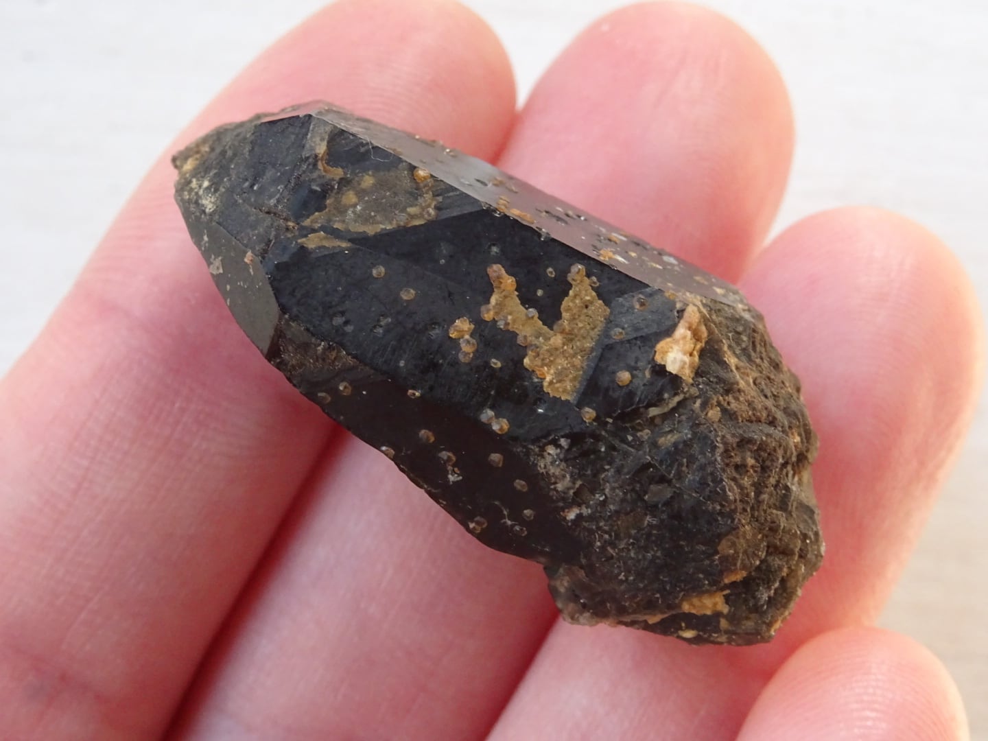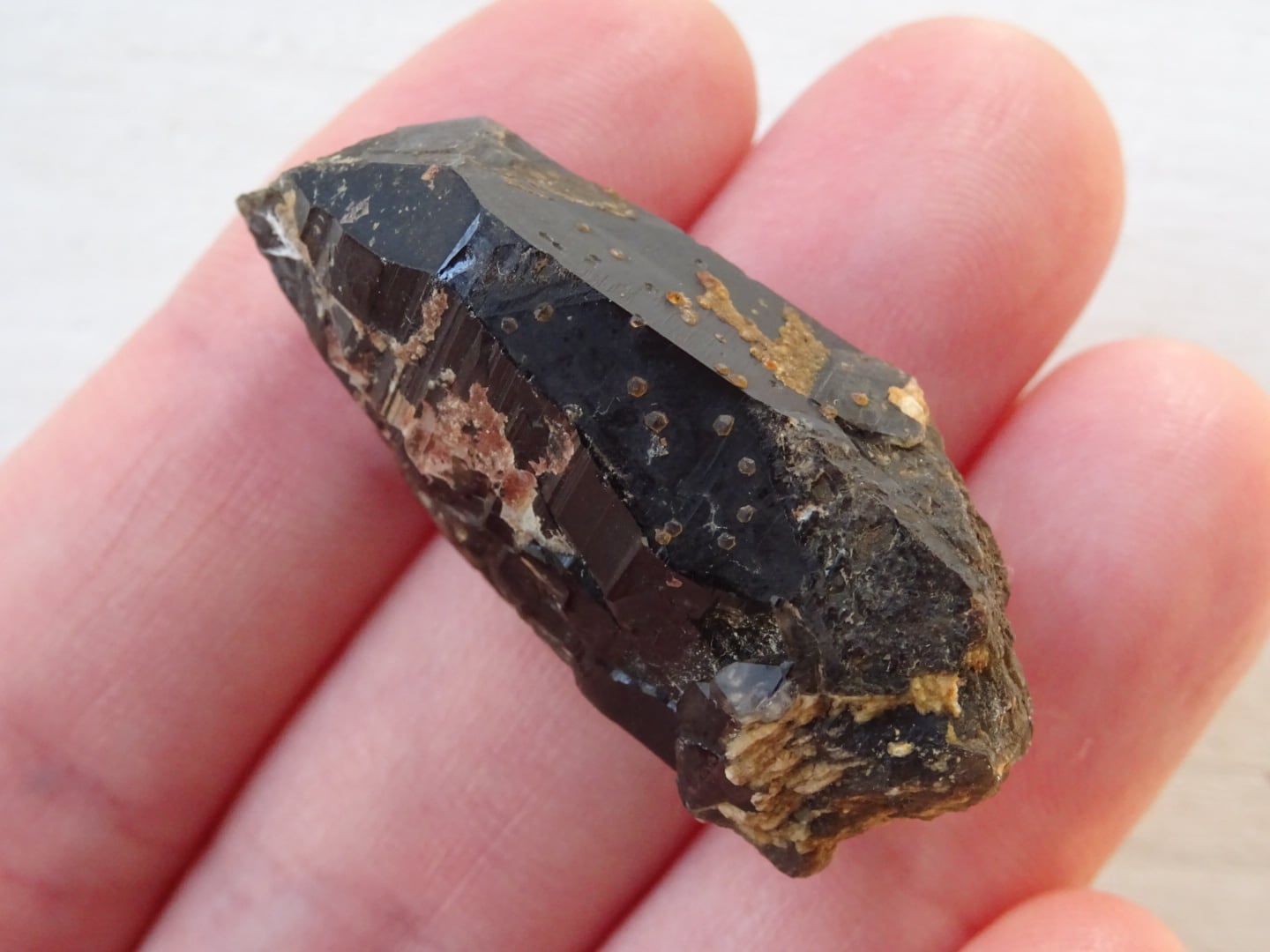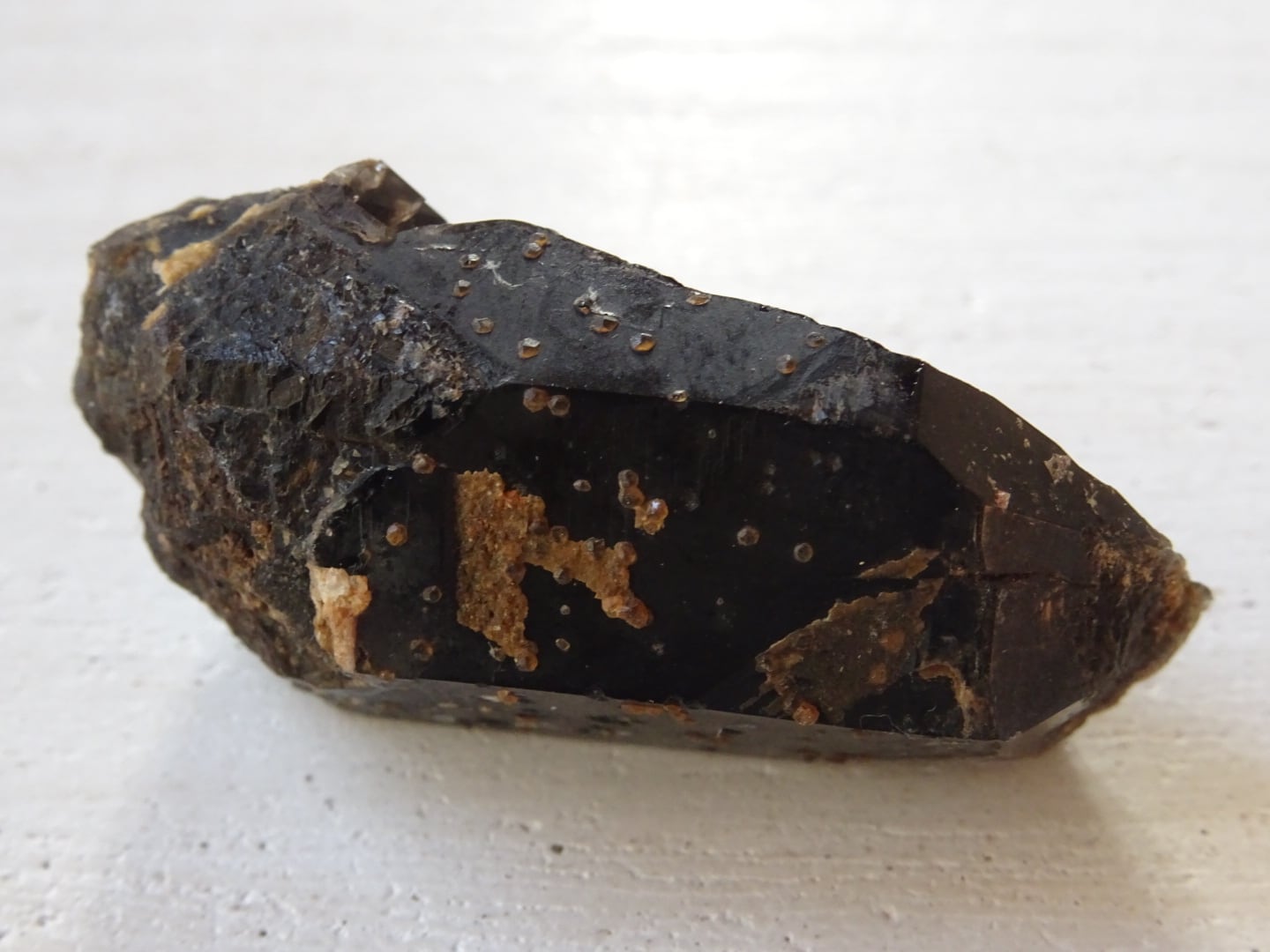 中国、福建省産のモリオン(黒水晶)。