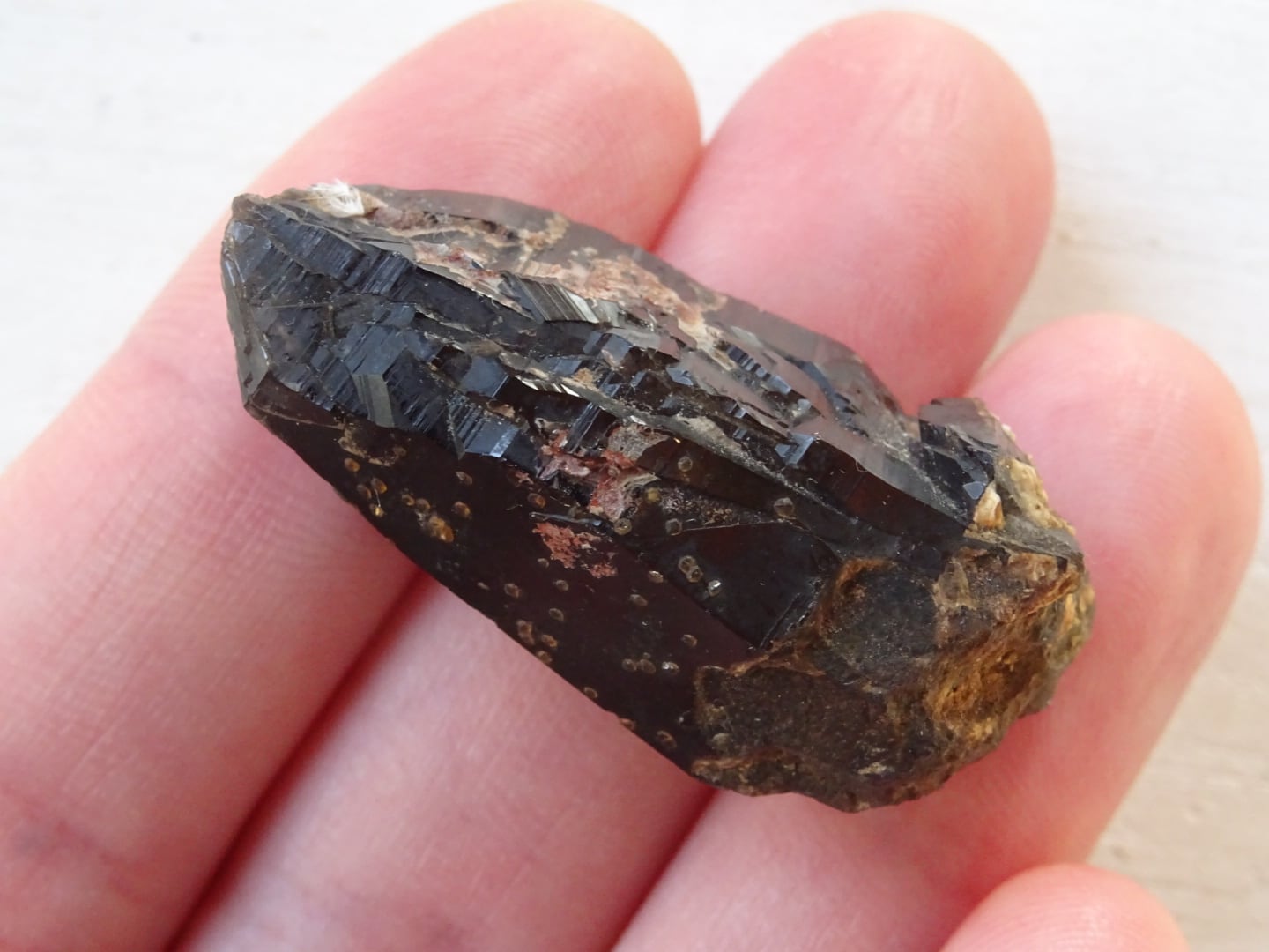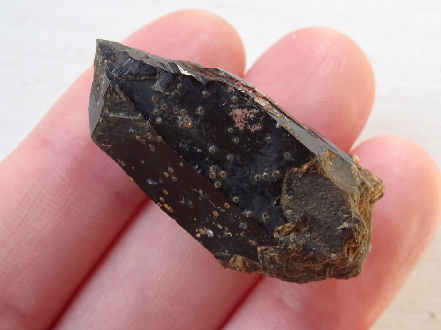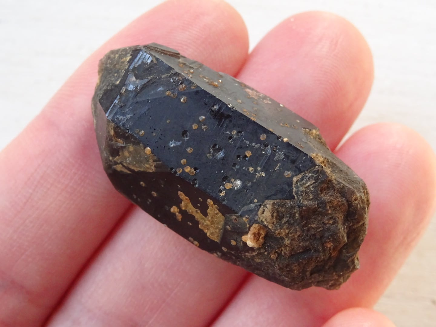 中国、福建省産のモリオン(黒水晶)。