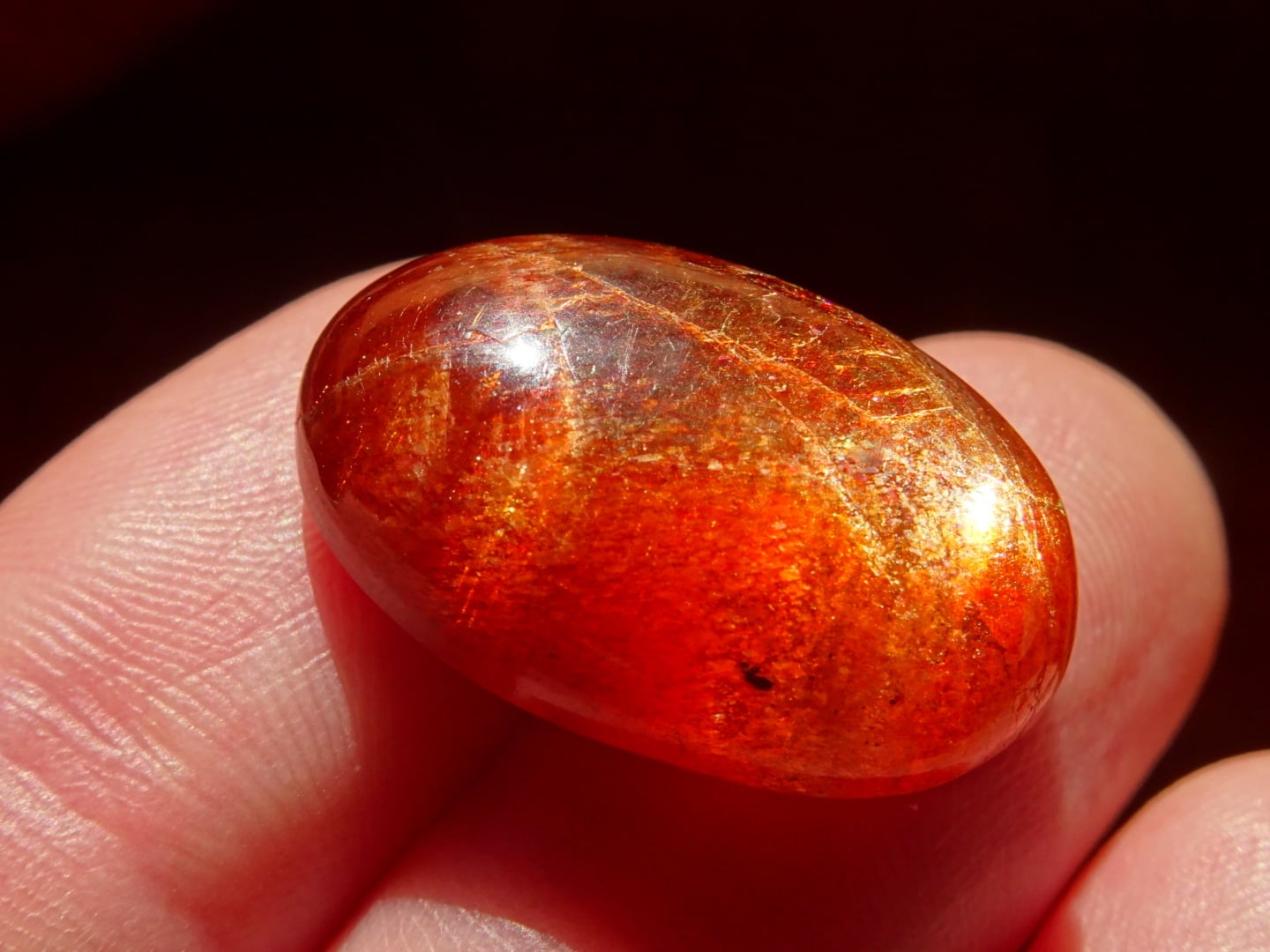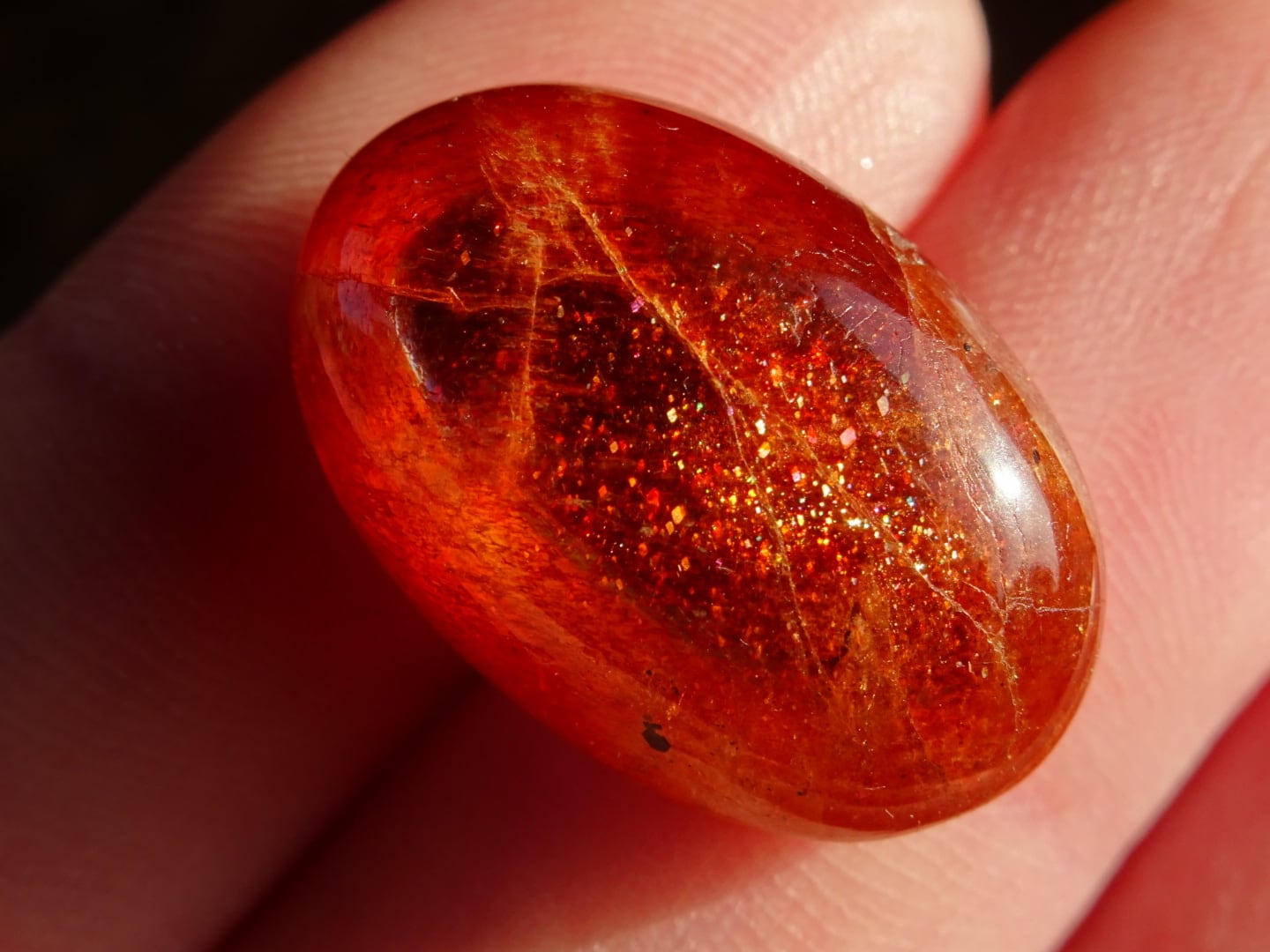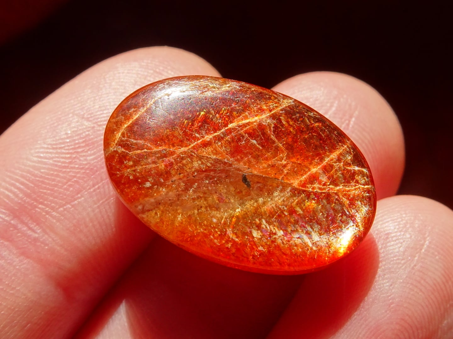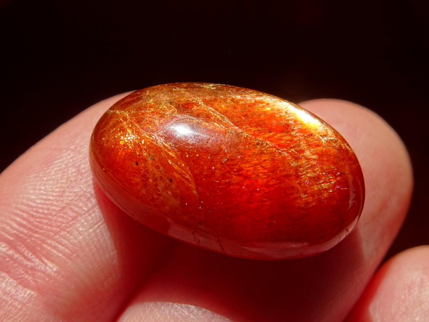 こちらはサンストーン特有の虹色のレッセンスの粒も、そこまで多くはないながら見られます。
