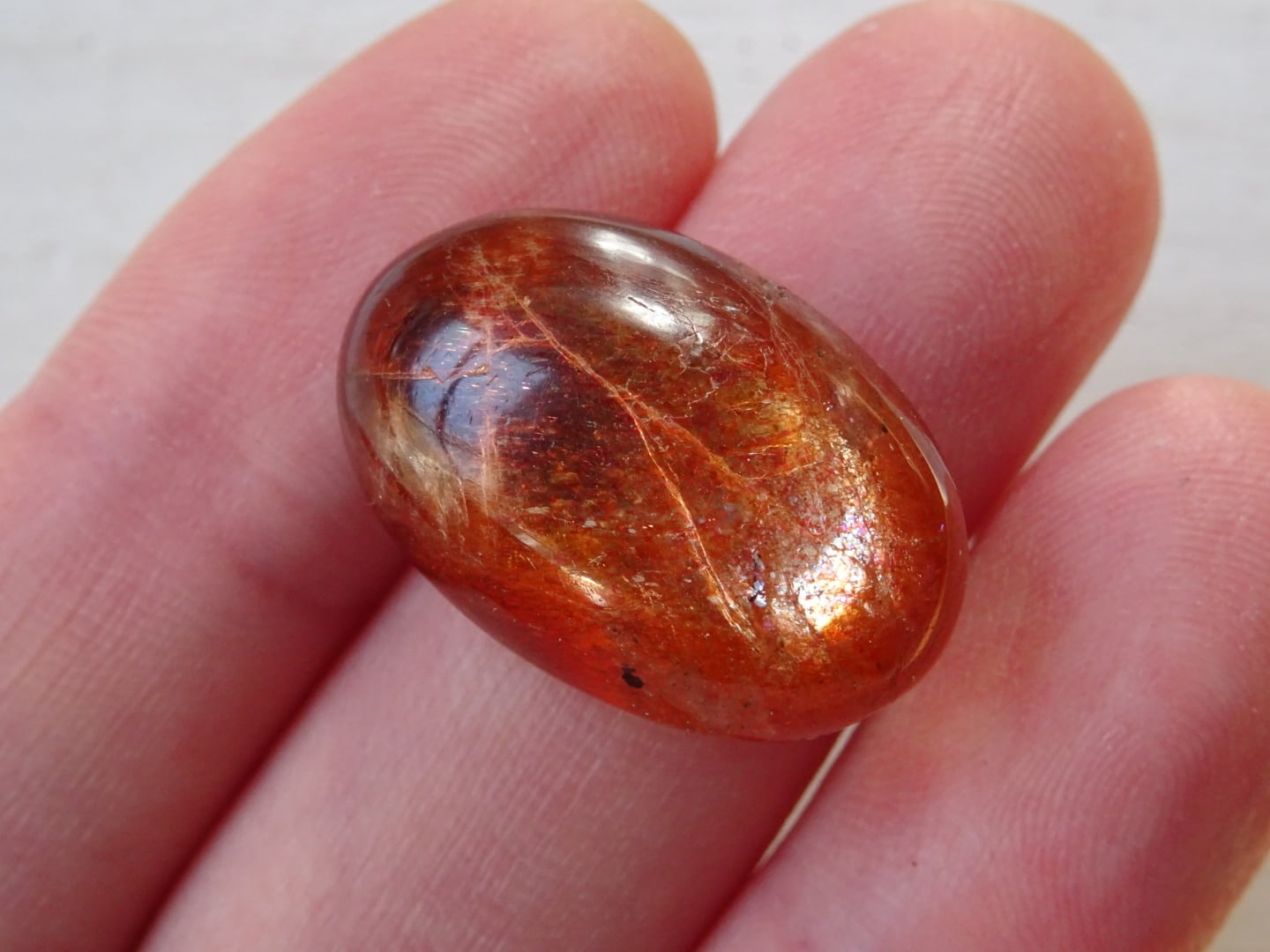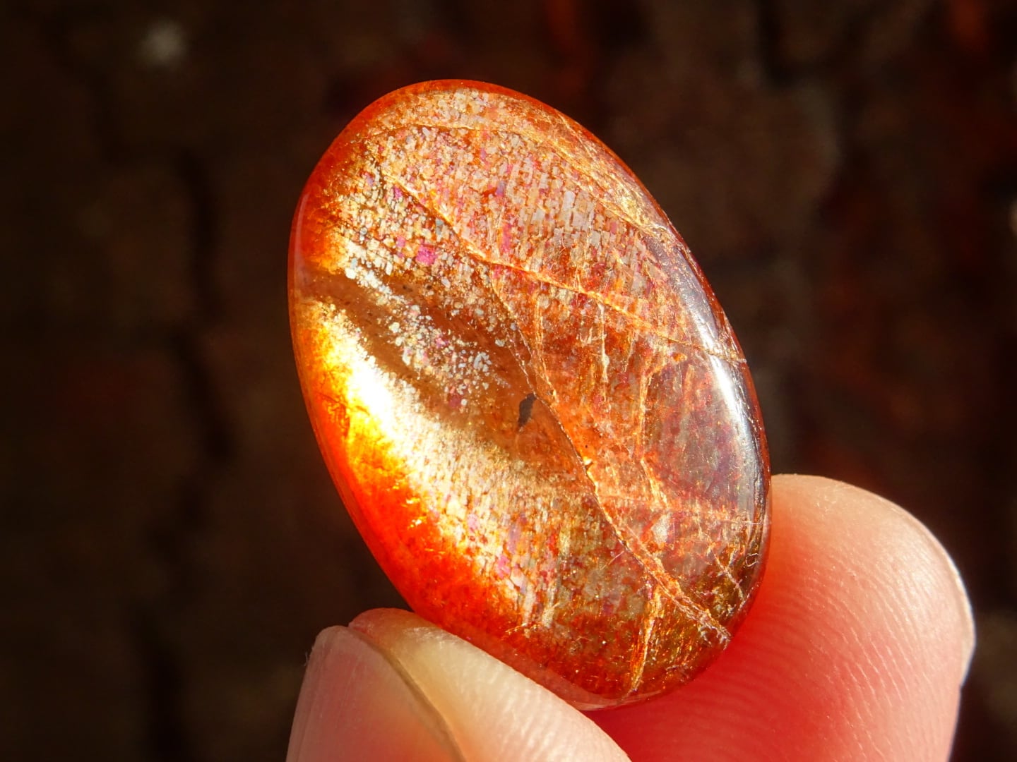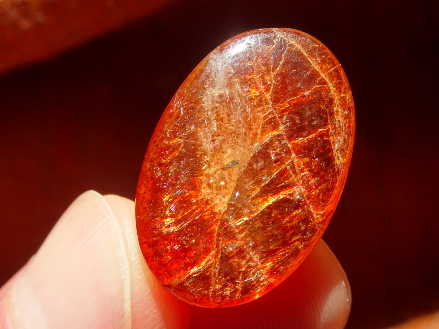 こちらはサンストーン特有の虹色のレッセンスの粒も、そこまで多くはないながら見られます。