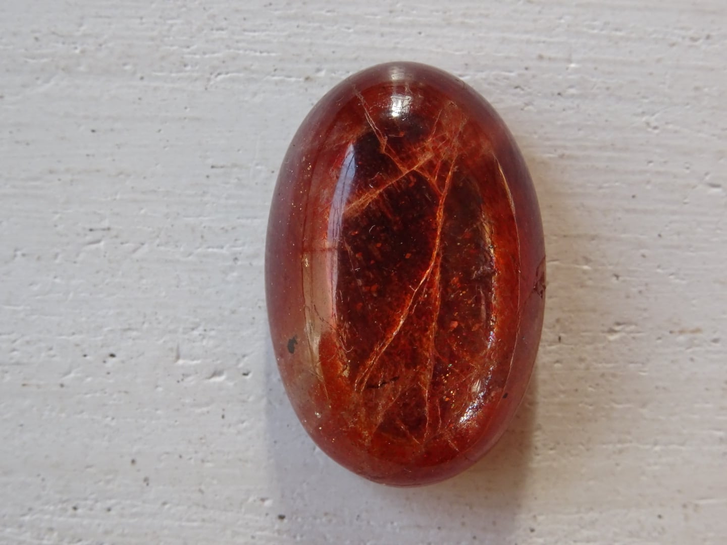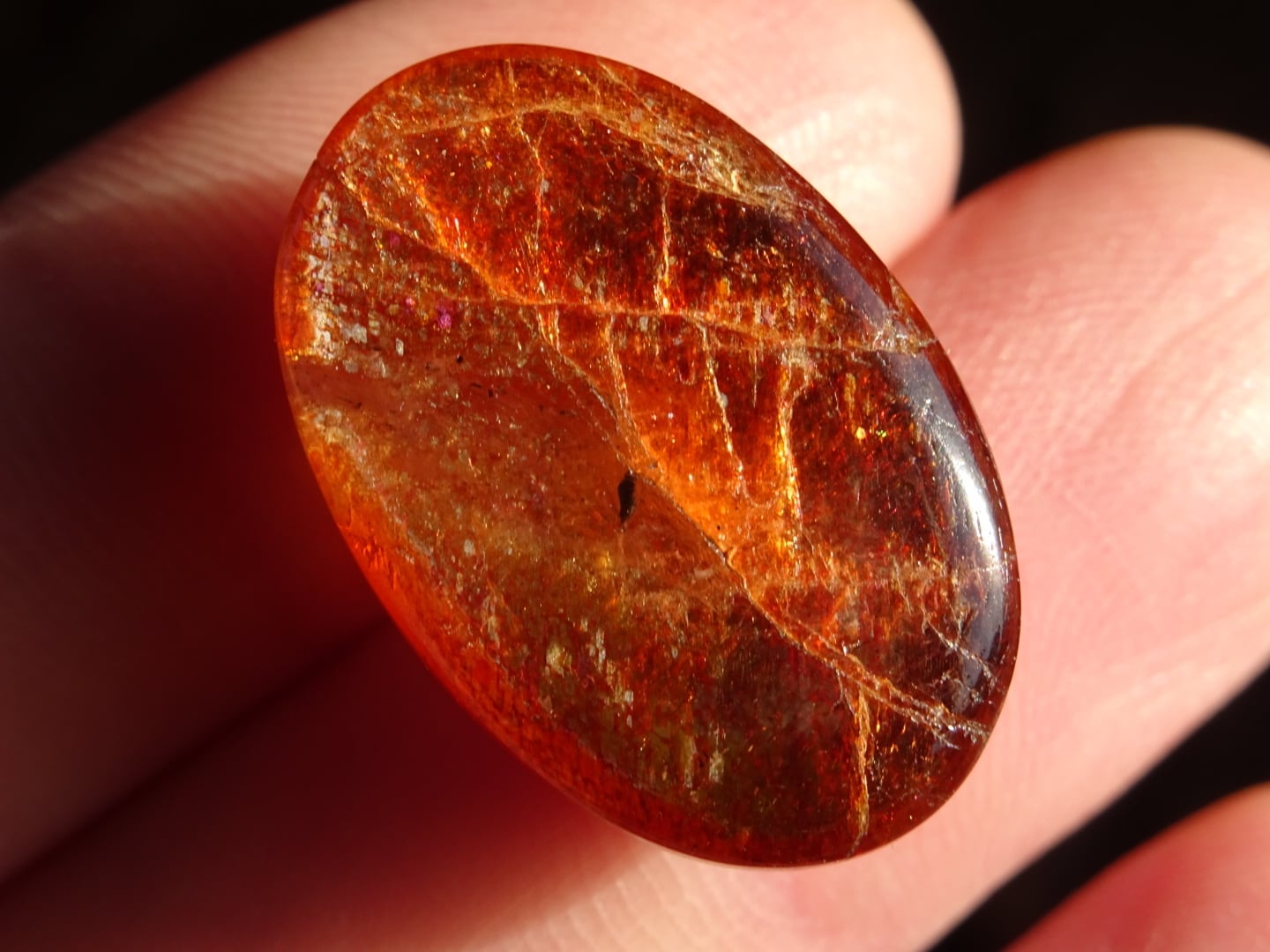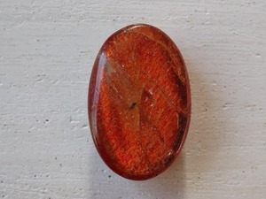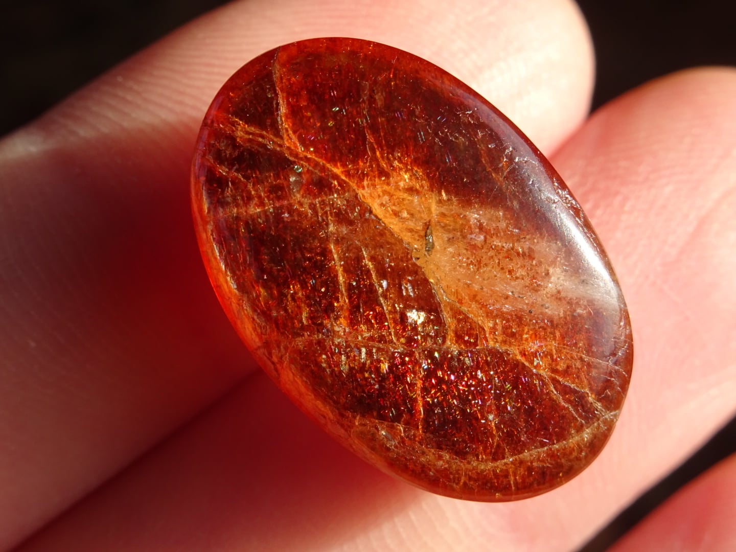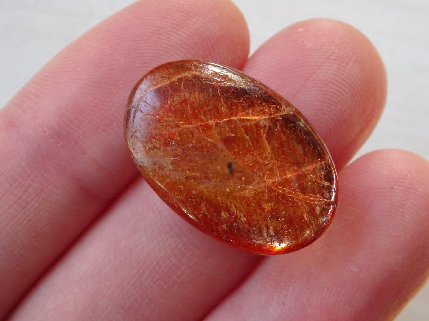 こちらはサンストーン特有の虹色のレッセンスの粒も、そこまで多くはないながら見られます。