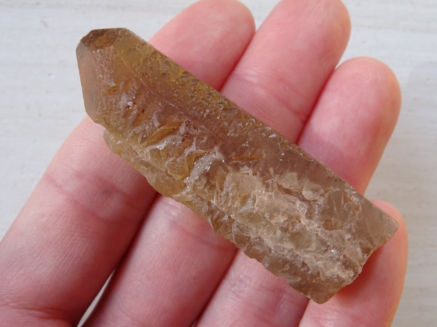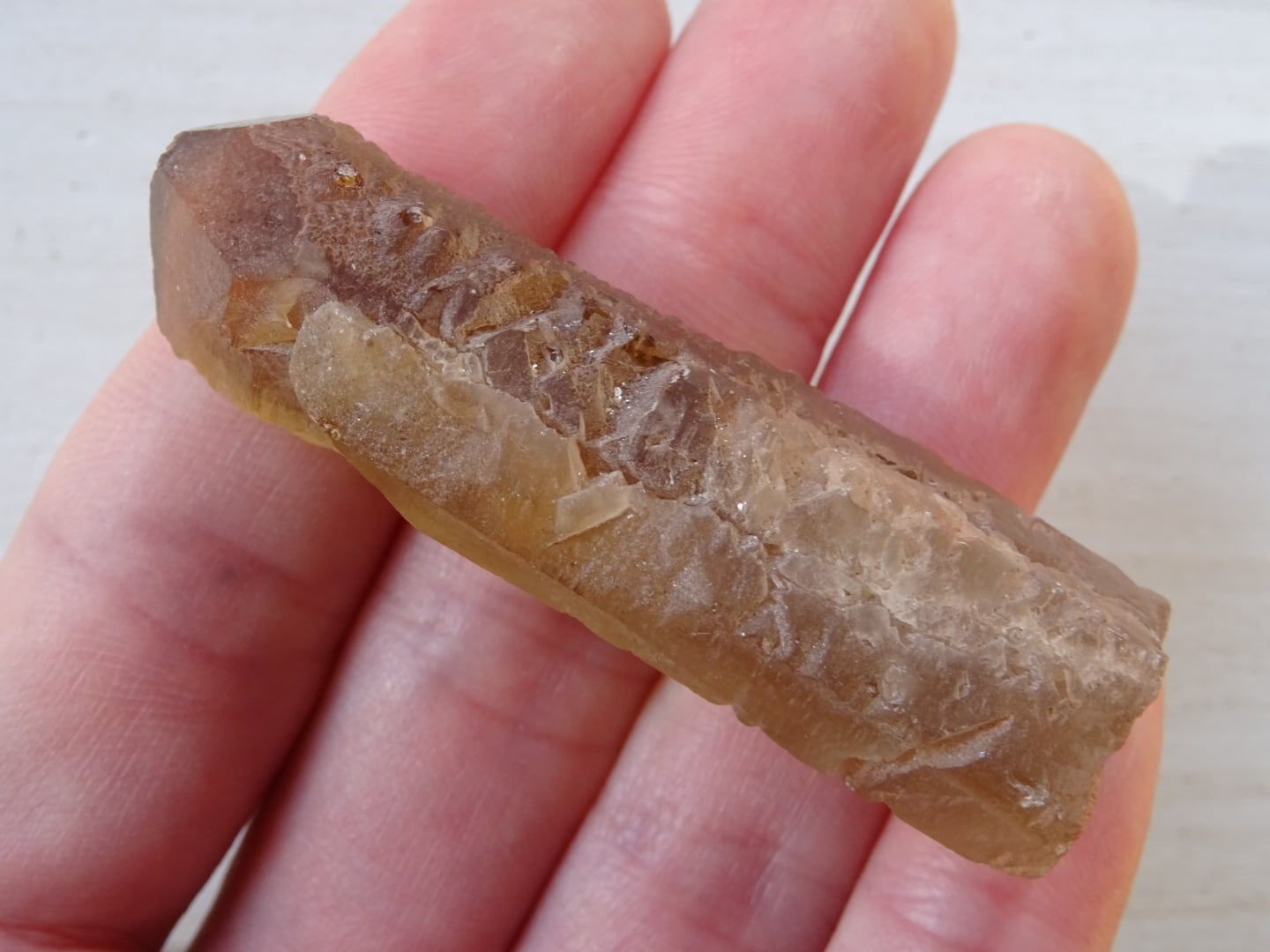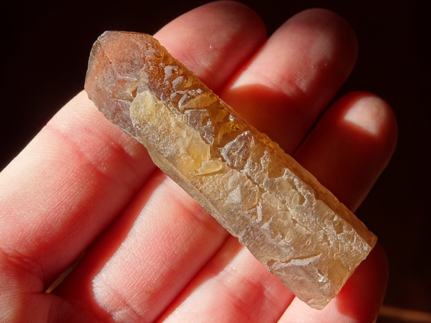 また、マニカランの溶け水晶によく見られるC面---トップが溶かされて平らになっている、第7の面---が出ています。