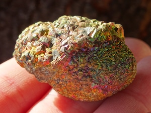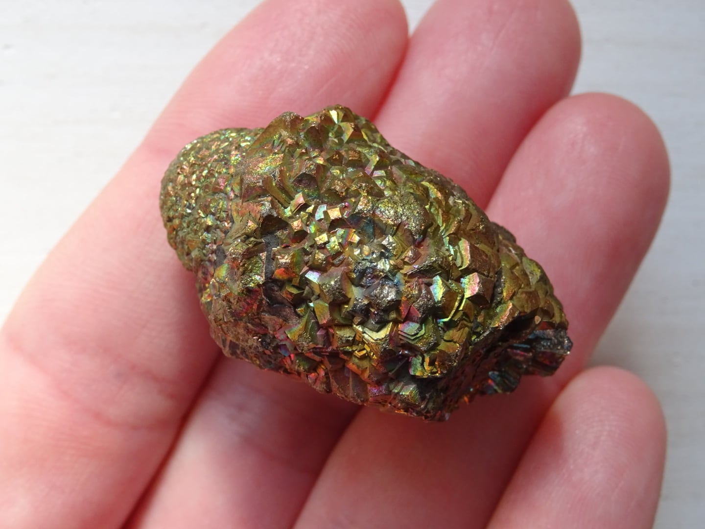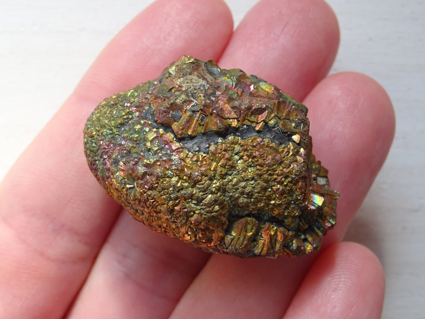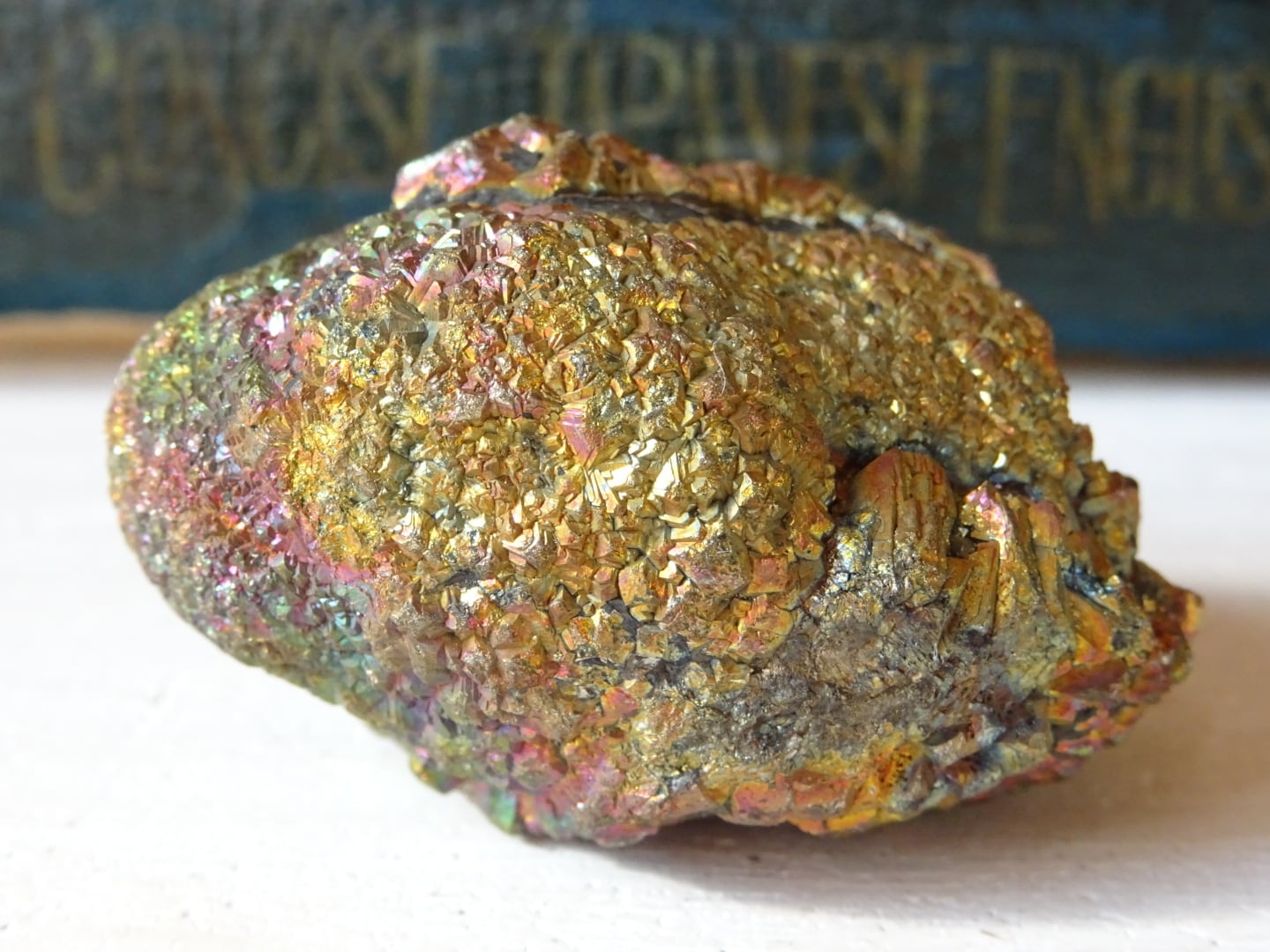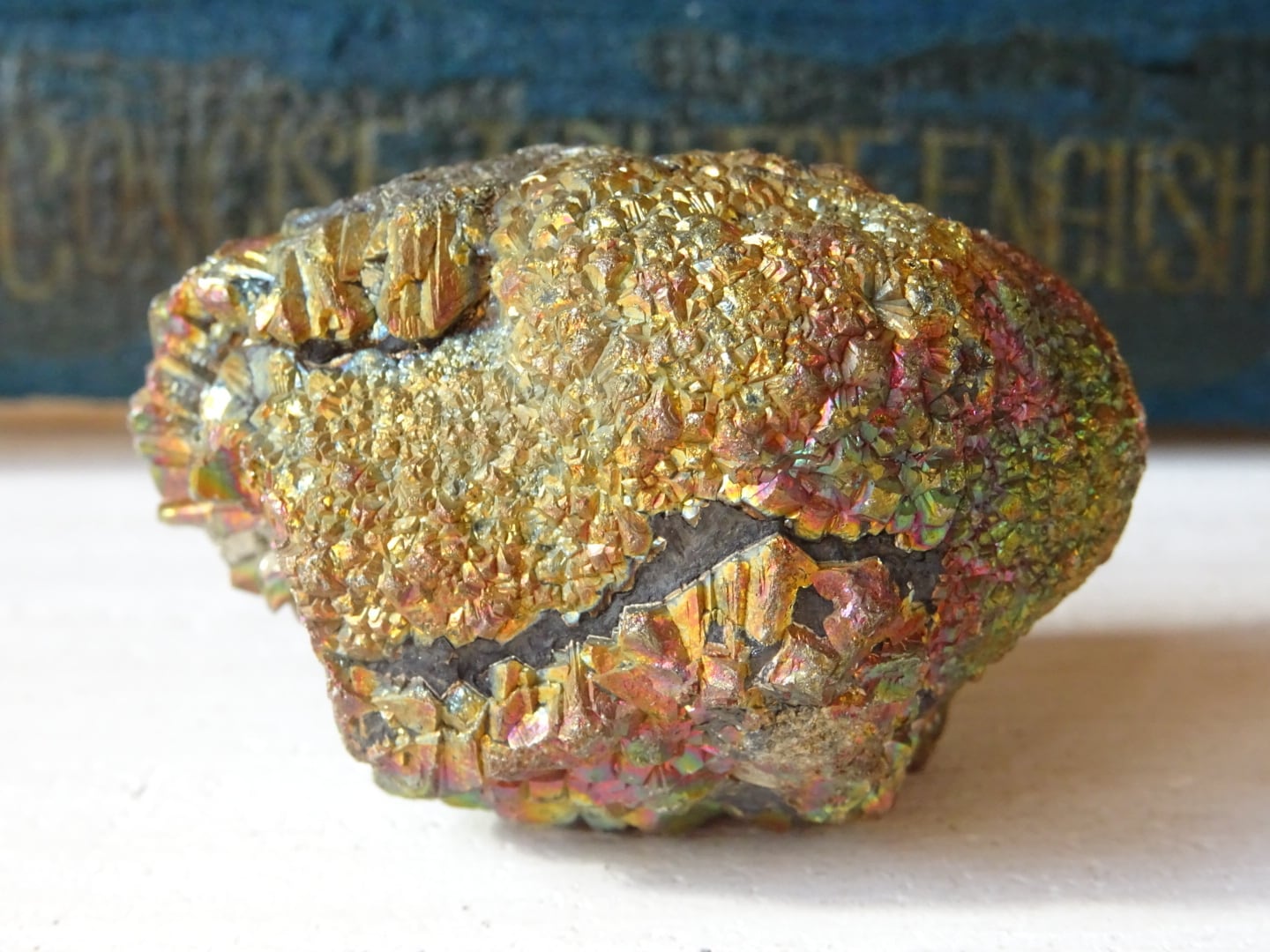 パイライトの金色の石肌に、美しい天然の虹色が浮かぶこの石。