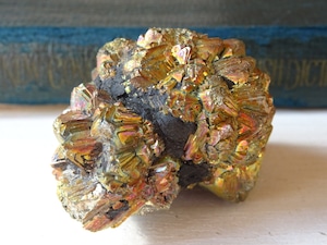 パイライトの金色の石肌に、美しい天然の虹色が浮かぶこの石。