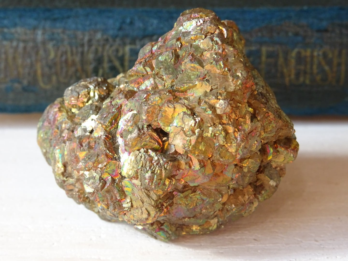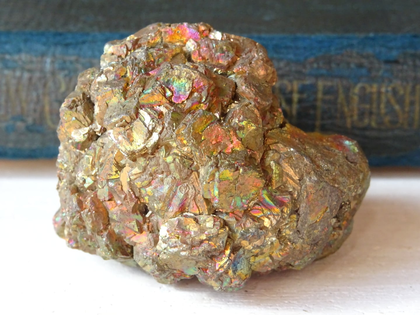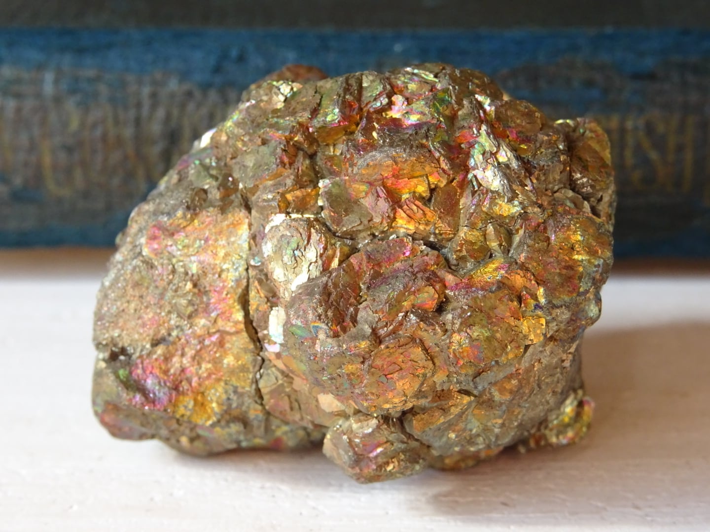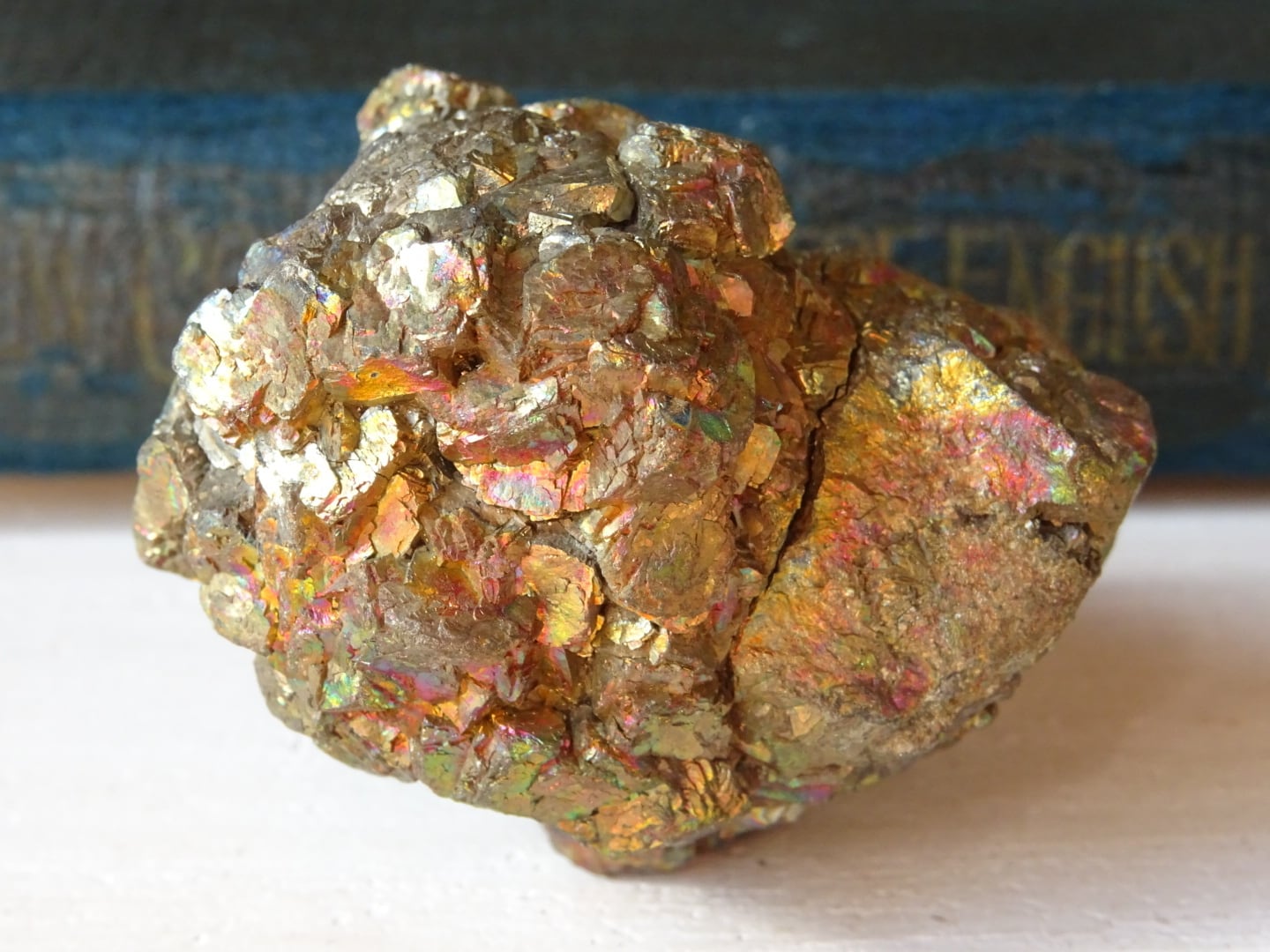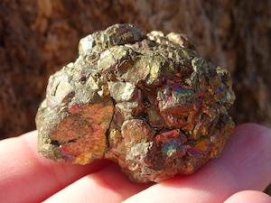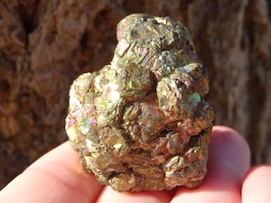 パイライトの金色の石肌に、美しい天然の虹色が浮かぶこの石。