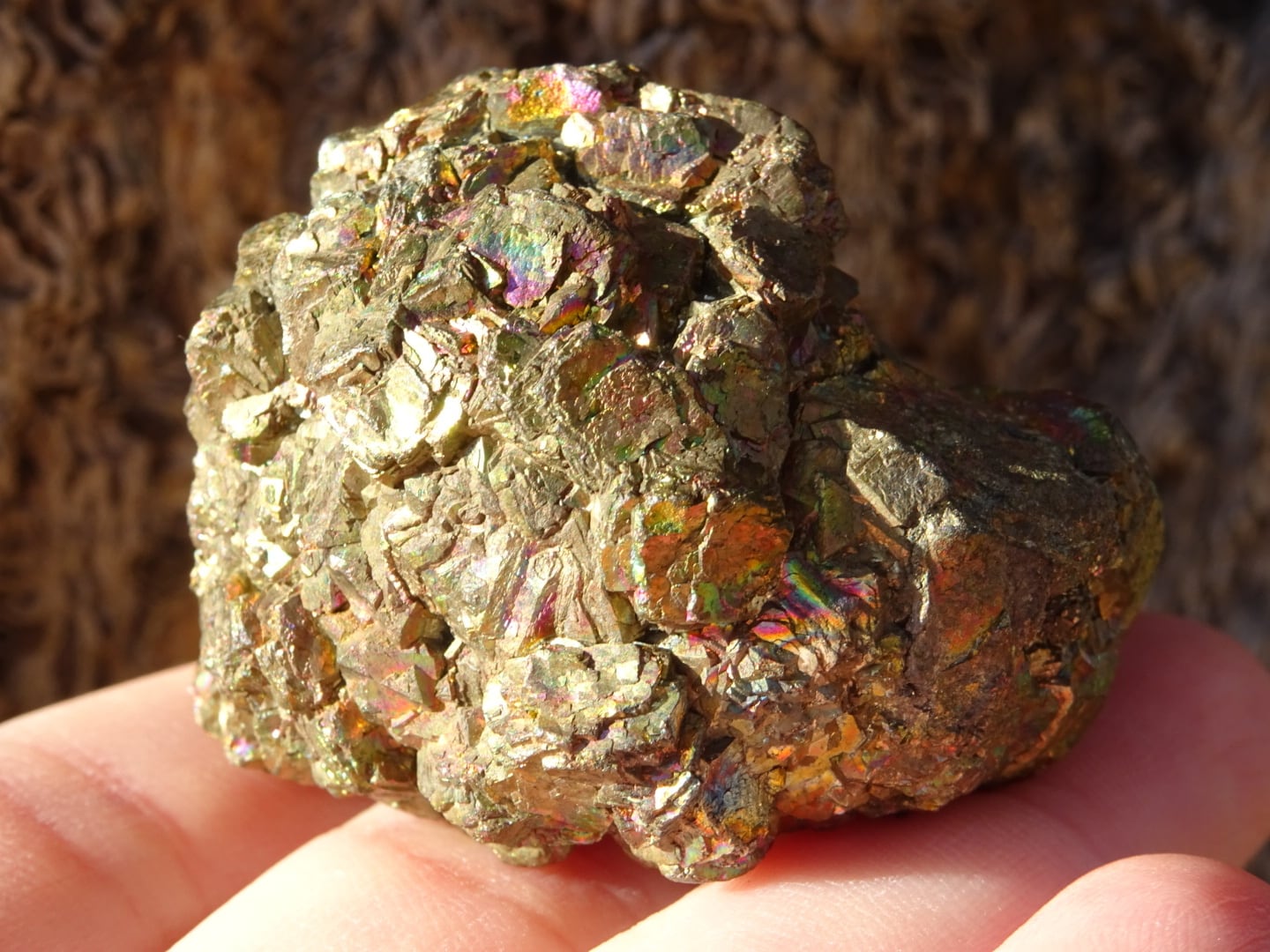 初登場、パキスタンで採掘されたレインボー・パイライトです。