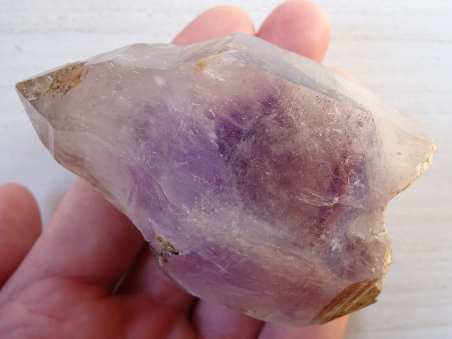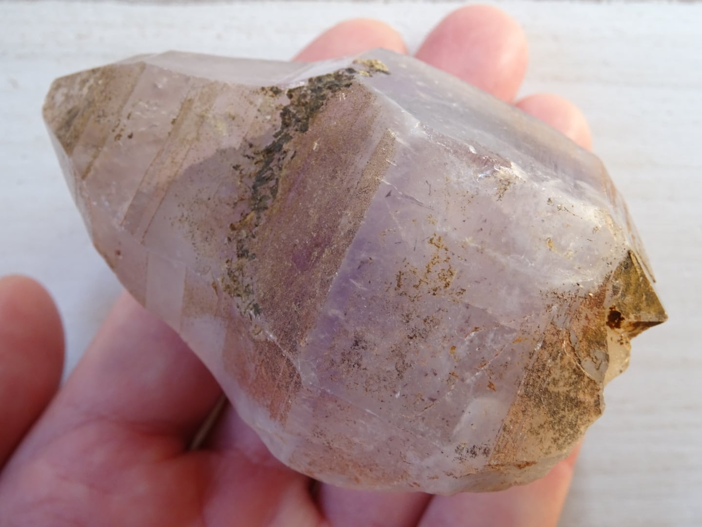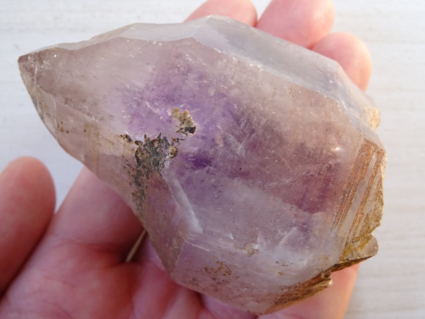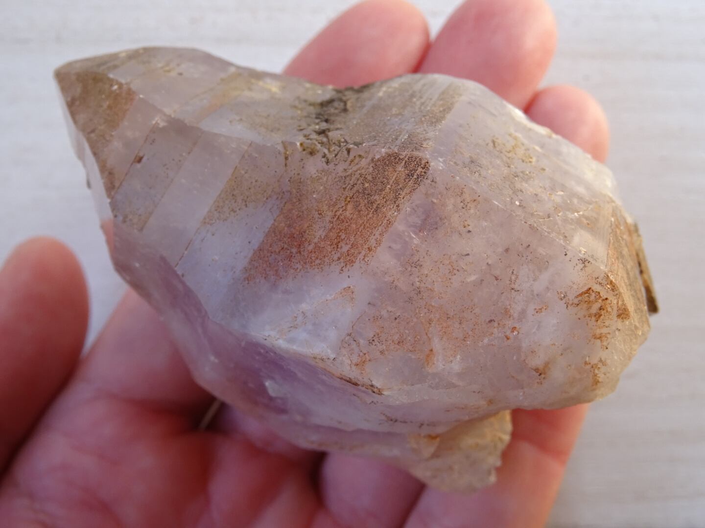 前回と同じ『ガズニー』で採掘されたものかはわからないのですが、これらのアメジストの特徴は、淡いけれどしっかりとファントムとして出ているパープルの色合い。