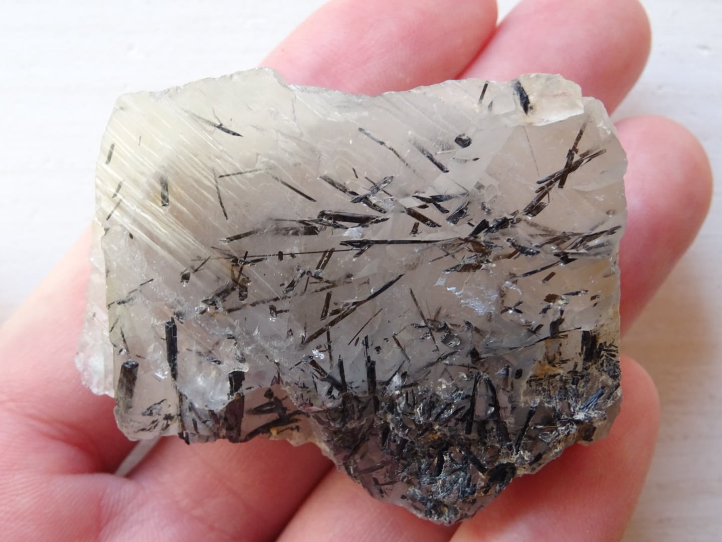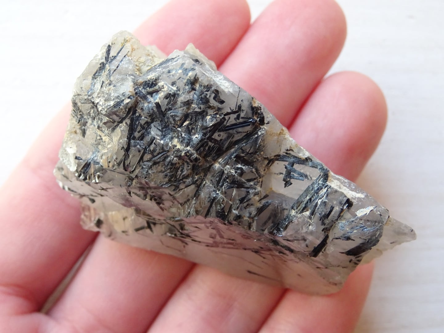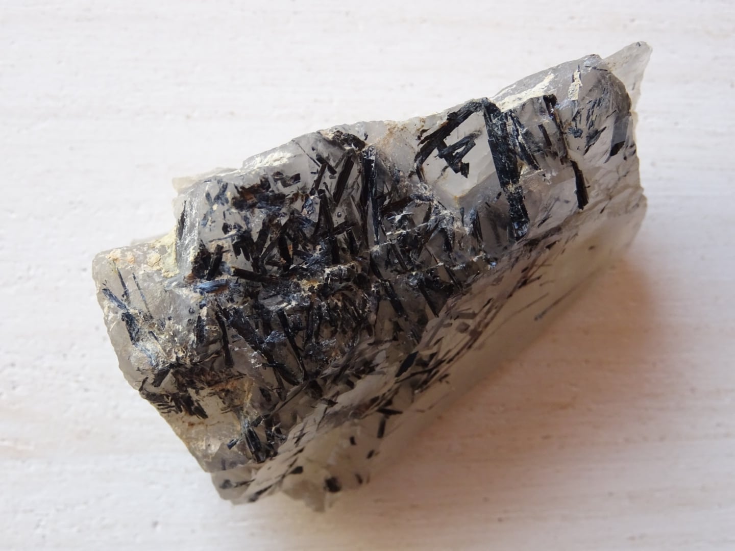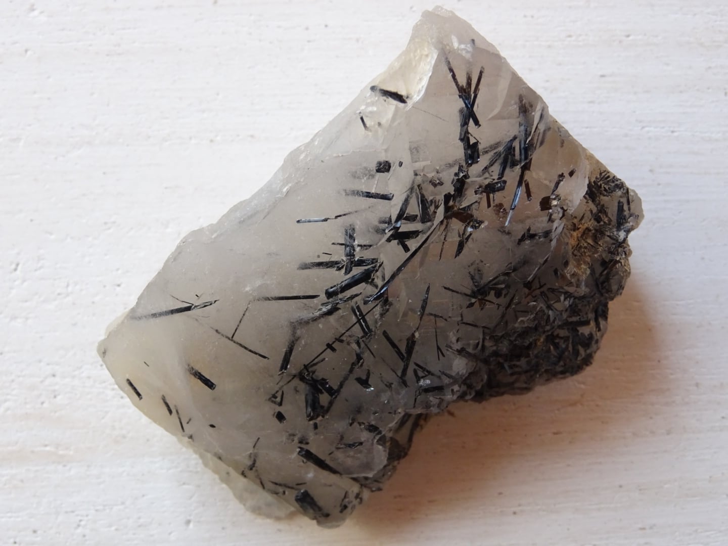 こちらはホワイトの地色に黒い針結晶を内包したザギマウンテン。