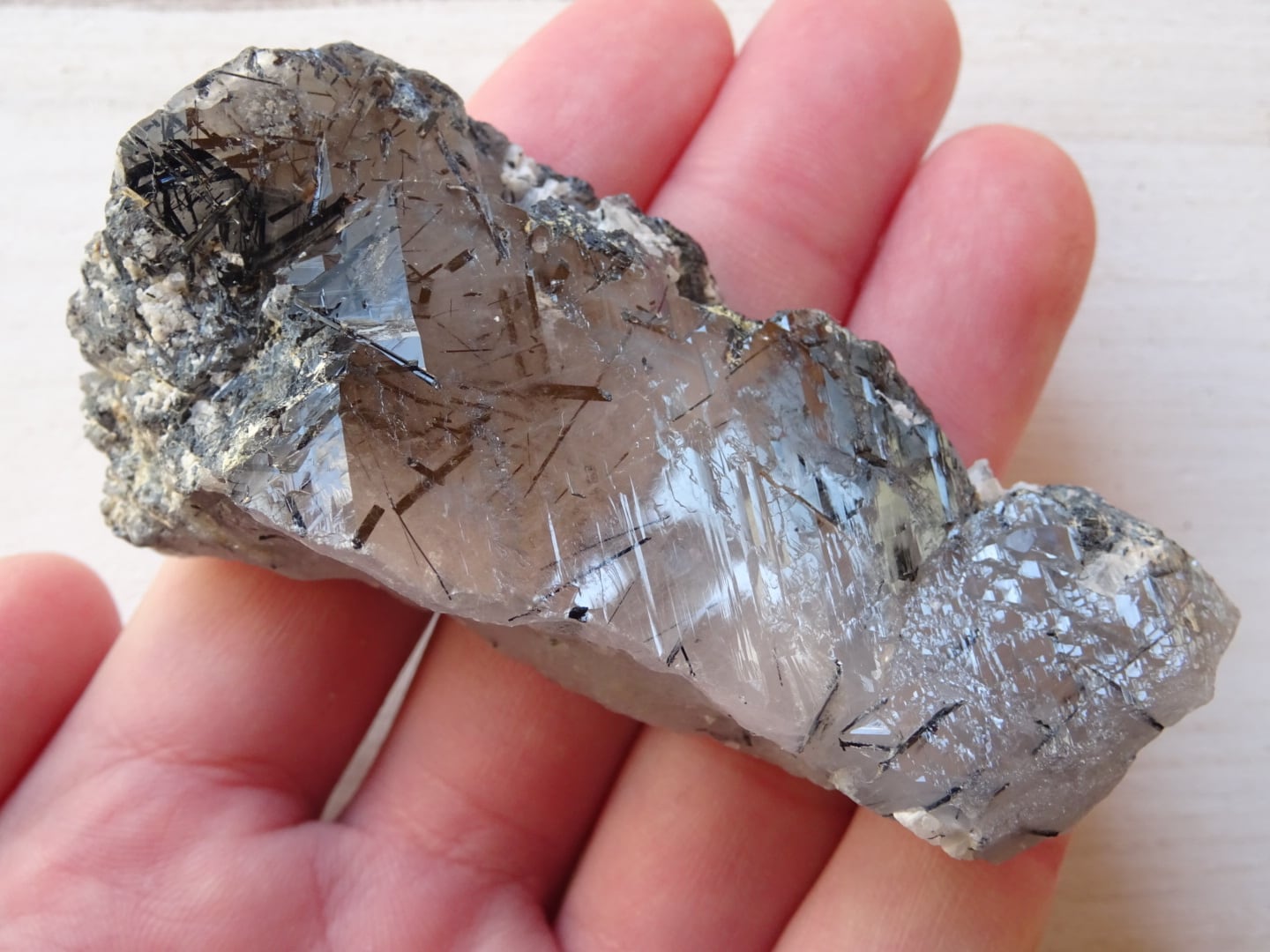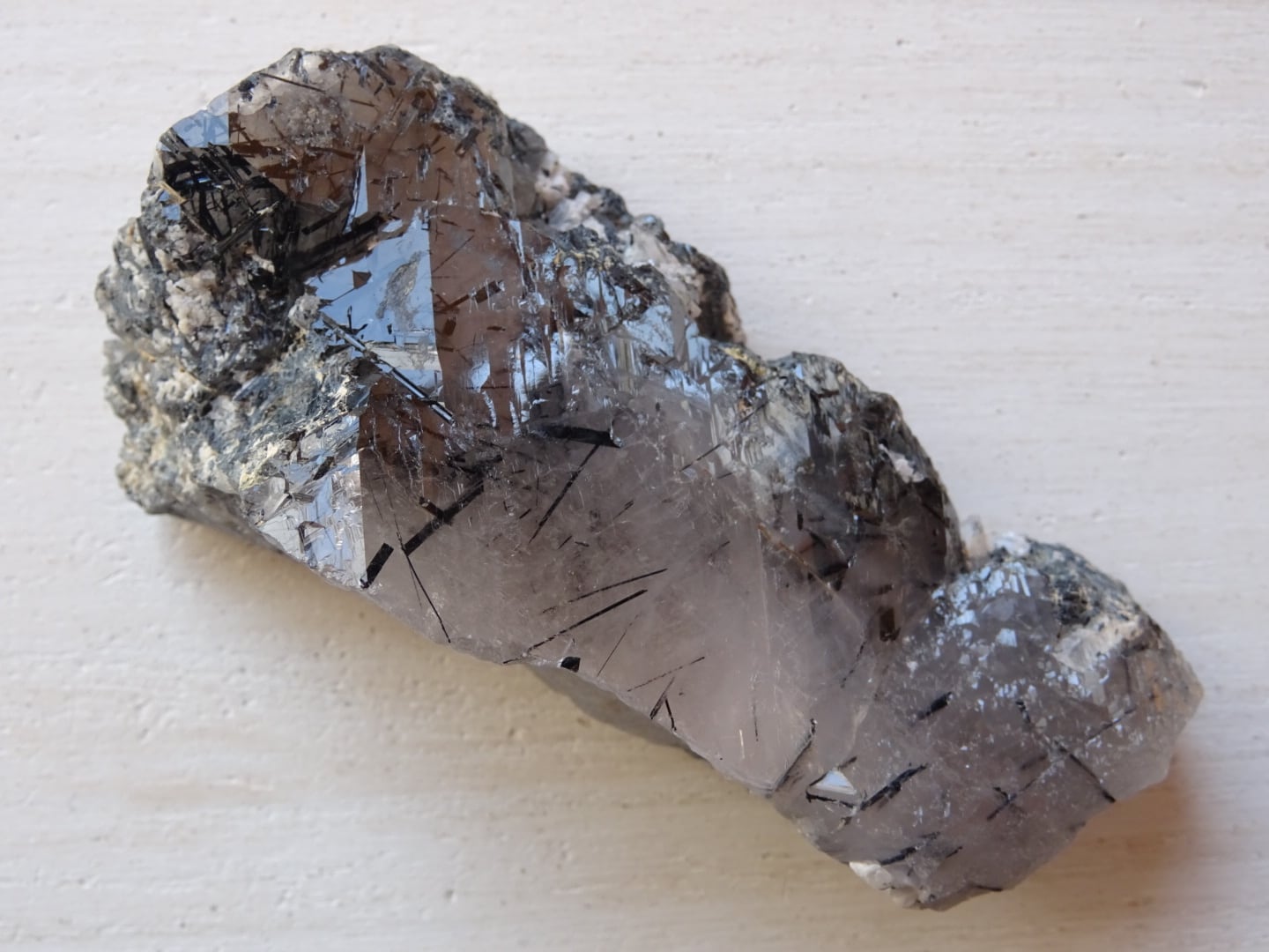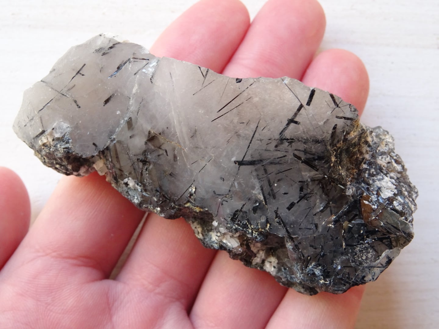 こちらはホワイトの地色に、黒い針結晶を内包したザギマウンテン。