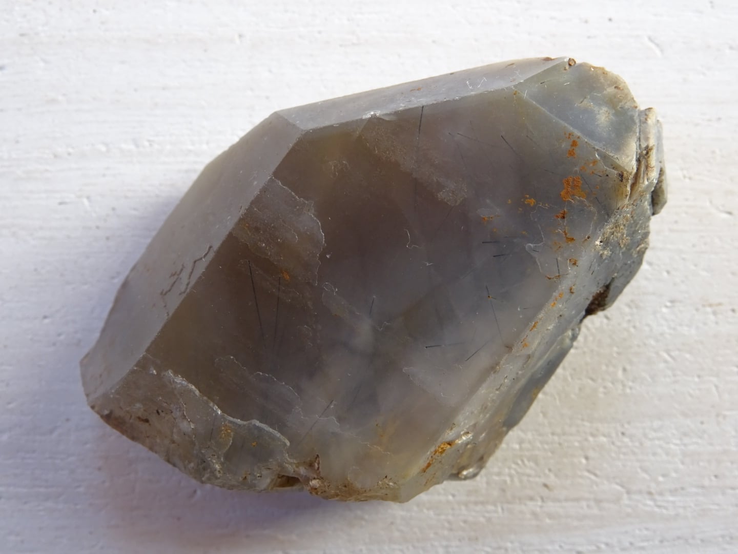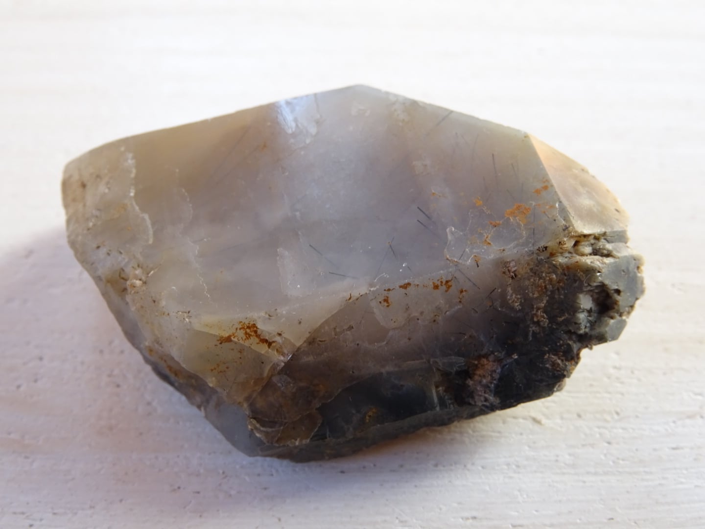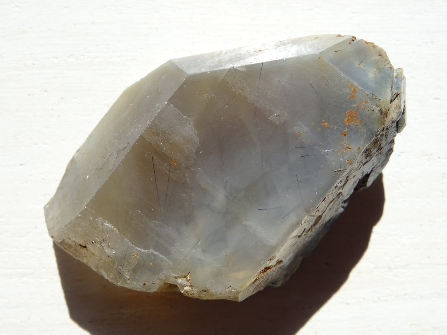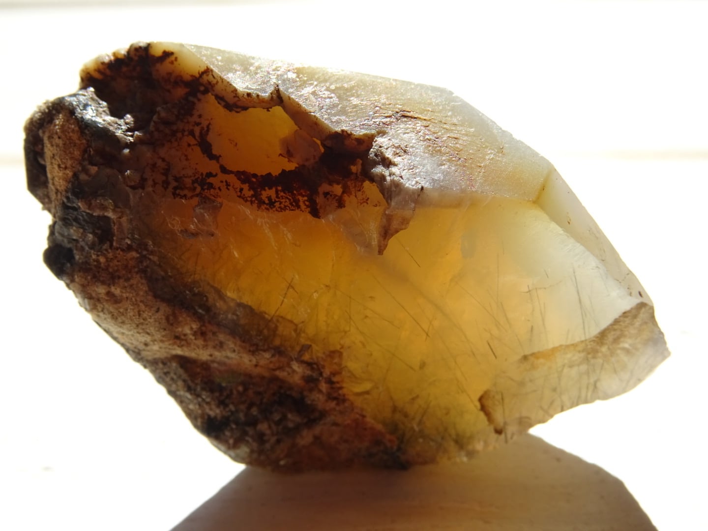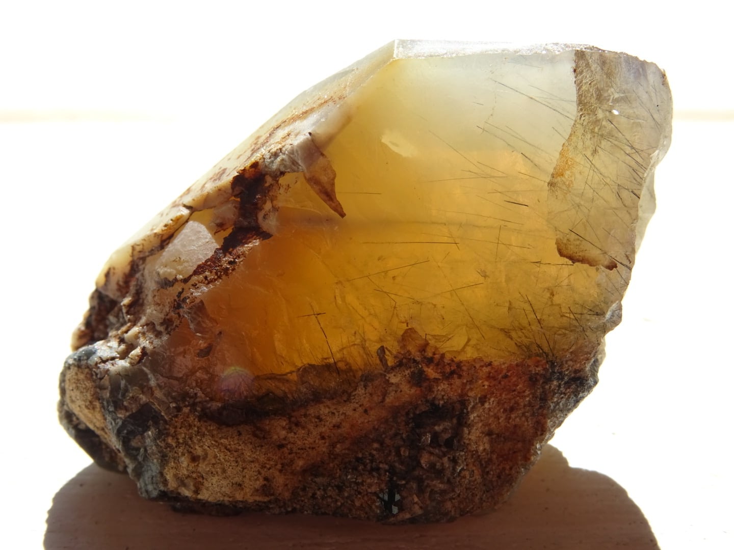 全体がリーベカイトによってクリーミーに青みがかっていて、美しい針たちを内包しています。