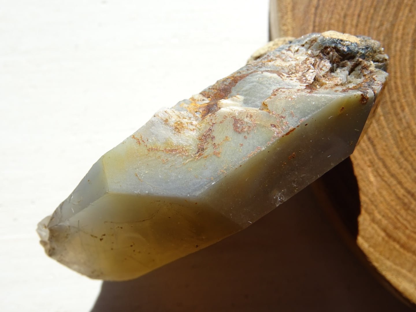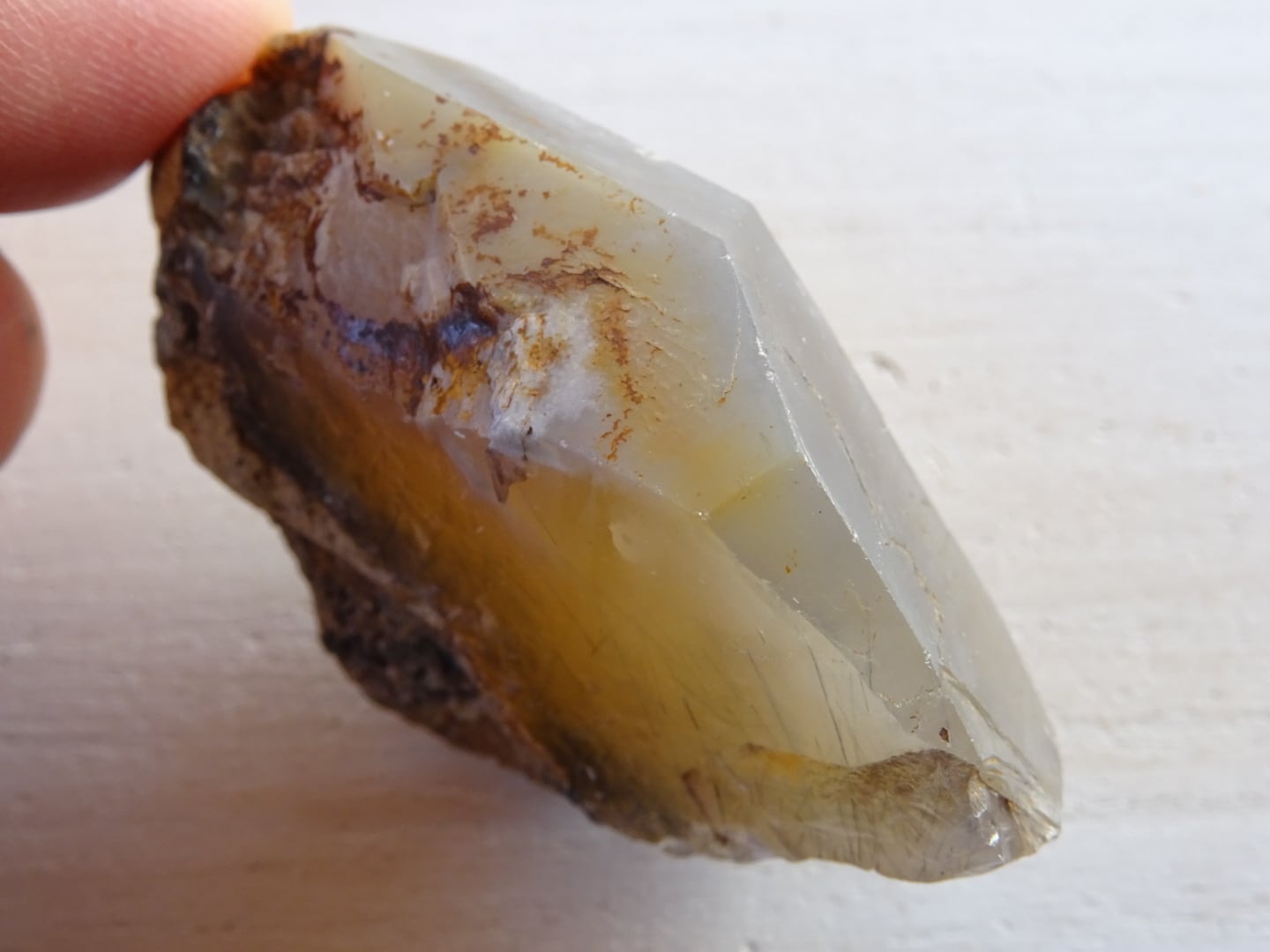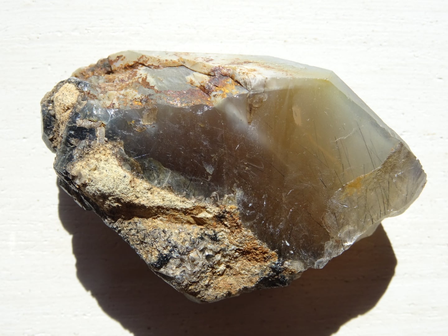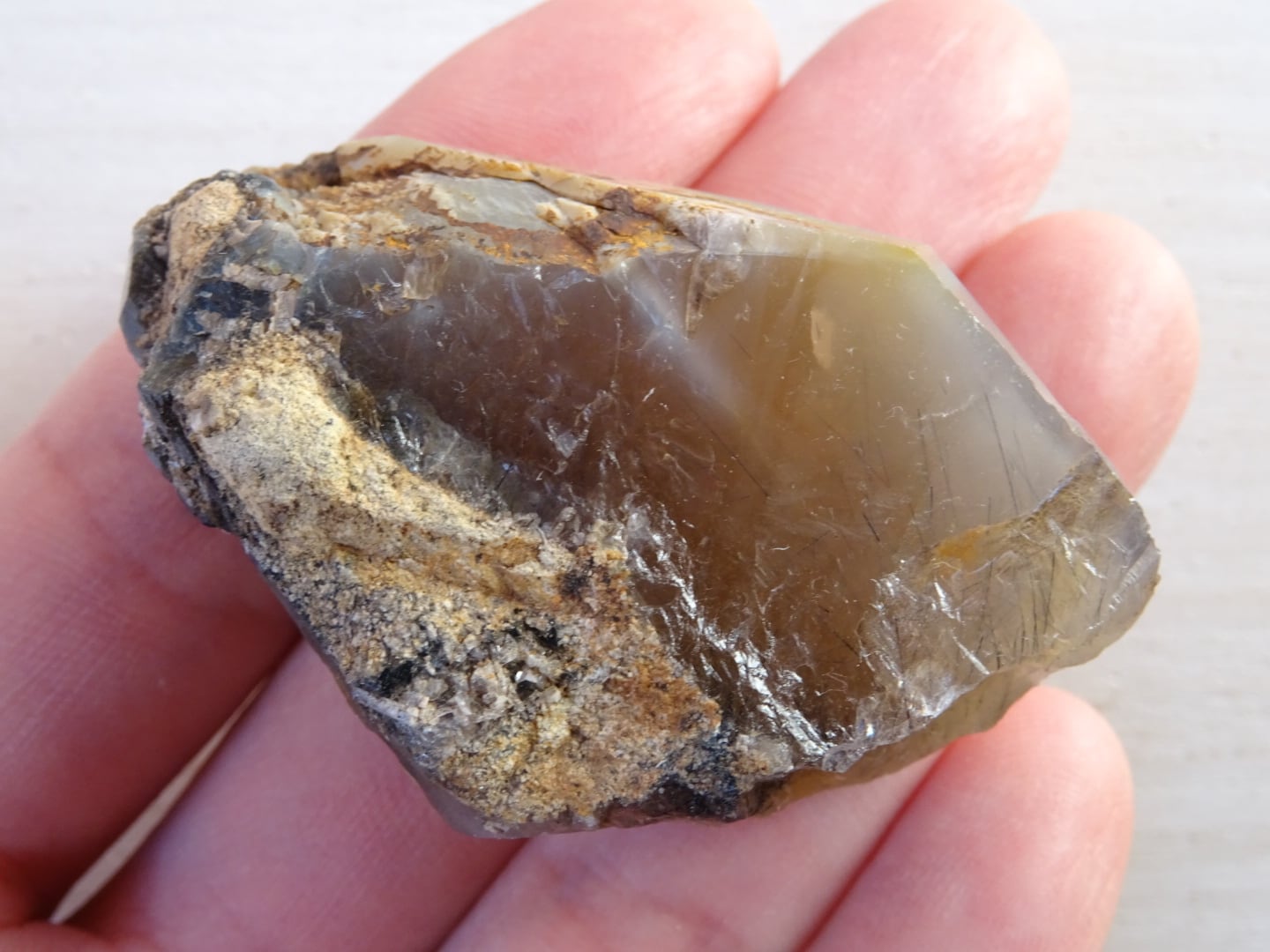 全体がリーベカイトによってクリーミーに青みがかっていて、美しい針たちを内包しています。