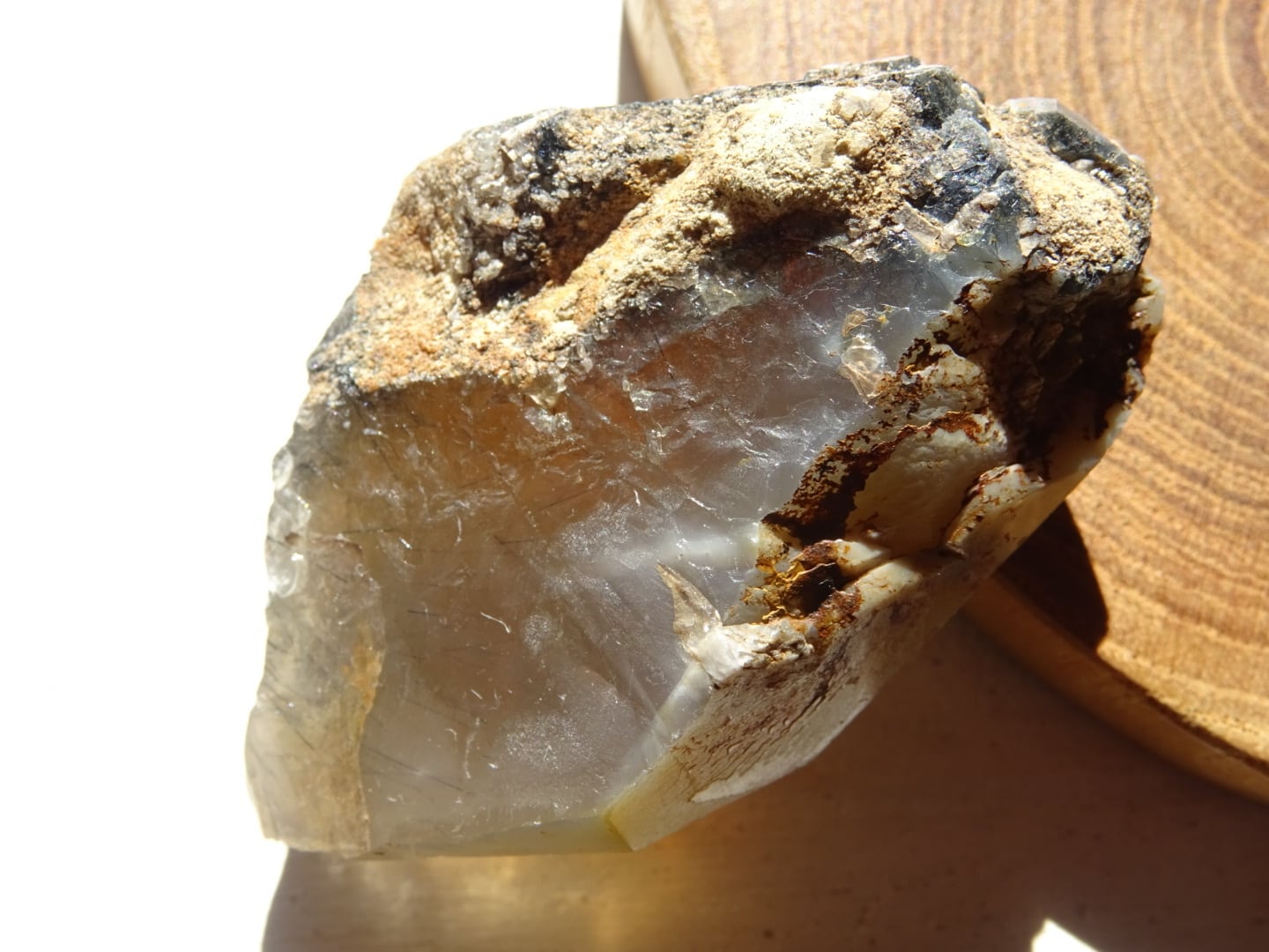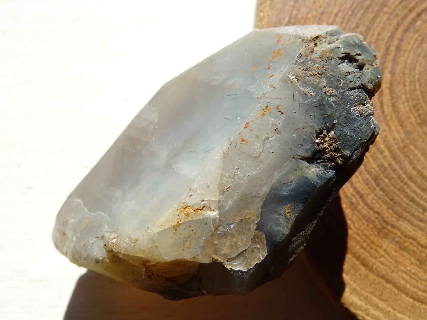 また、この石がとりわけ美しいのは光に透かしたときの内的世界で、おそらくアストロフィライトが沁みこんでいるのだと思いますが、青みがかった世界にBrownのような色合いも溶けるように合わさっていて。