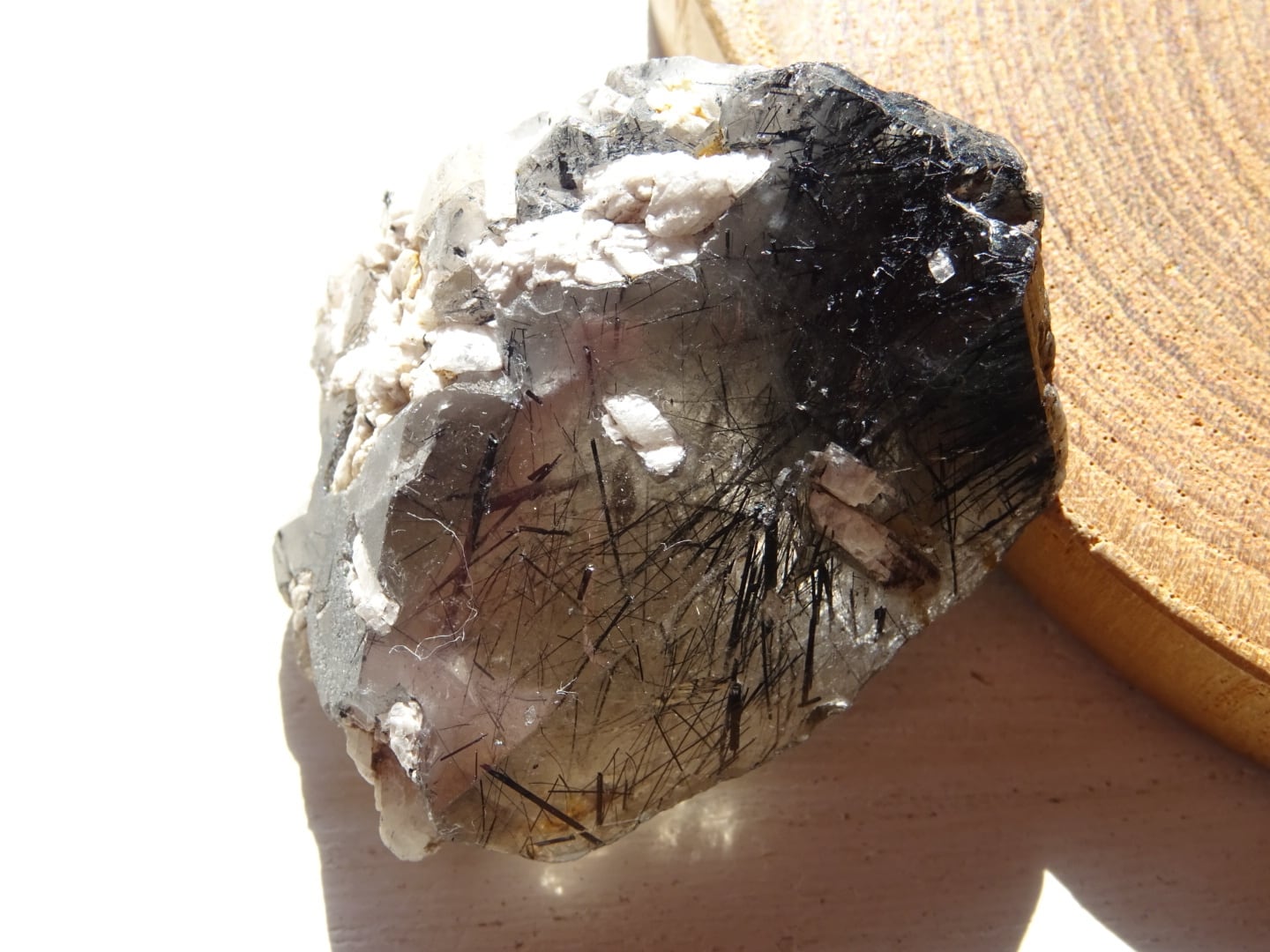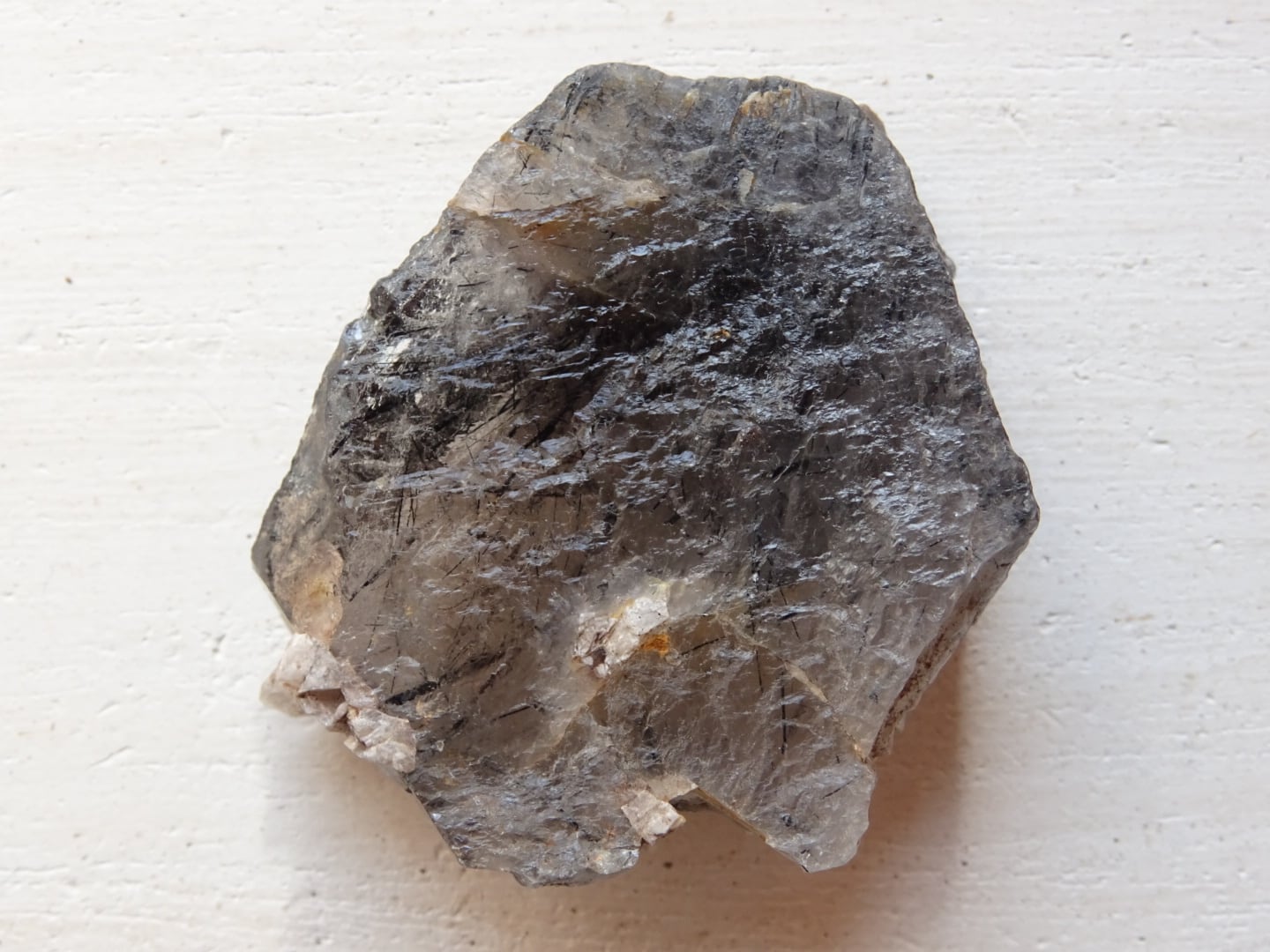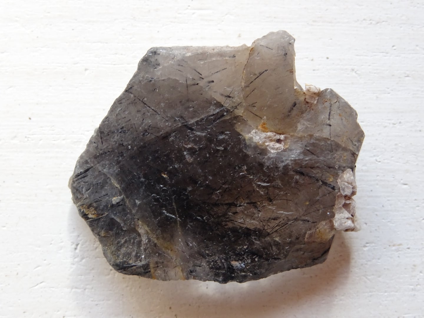 全体がスモーキーカラーになっているのですが、うっすらと青みがかっている部分もあることから、内包されている黒い針結晶はリーベカイトと思われます。