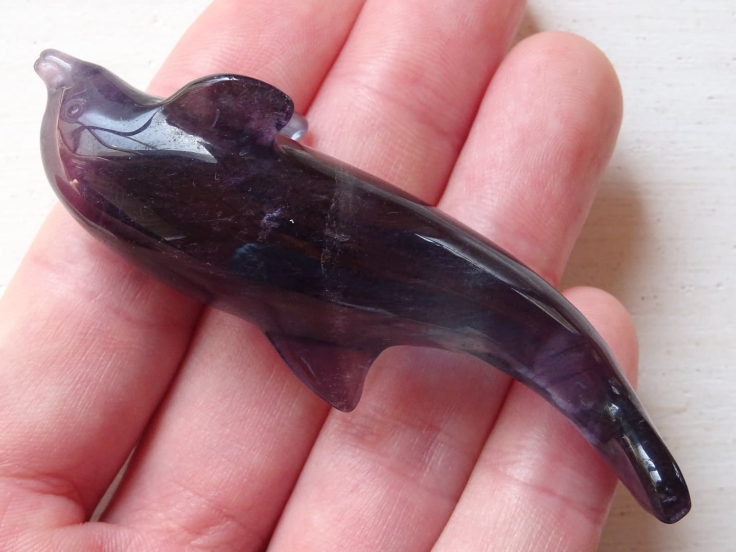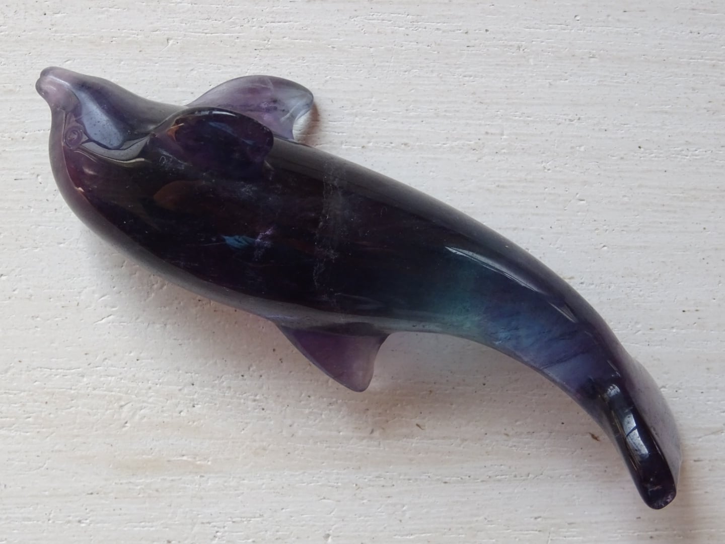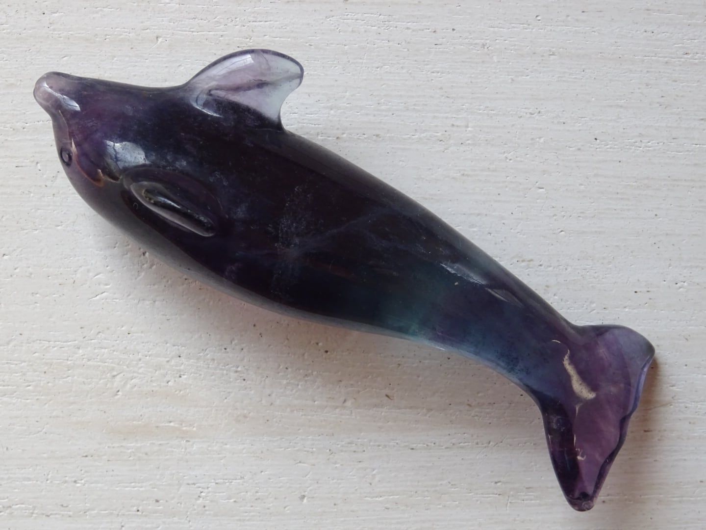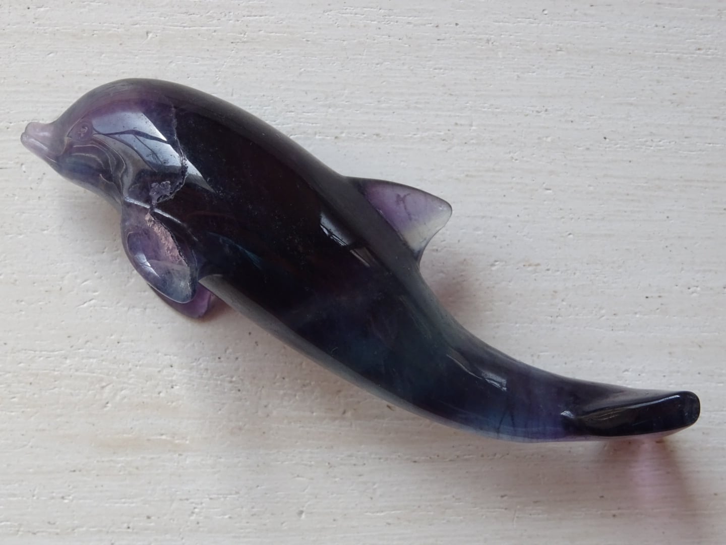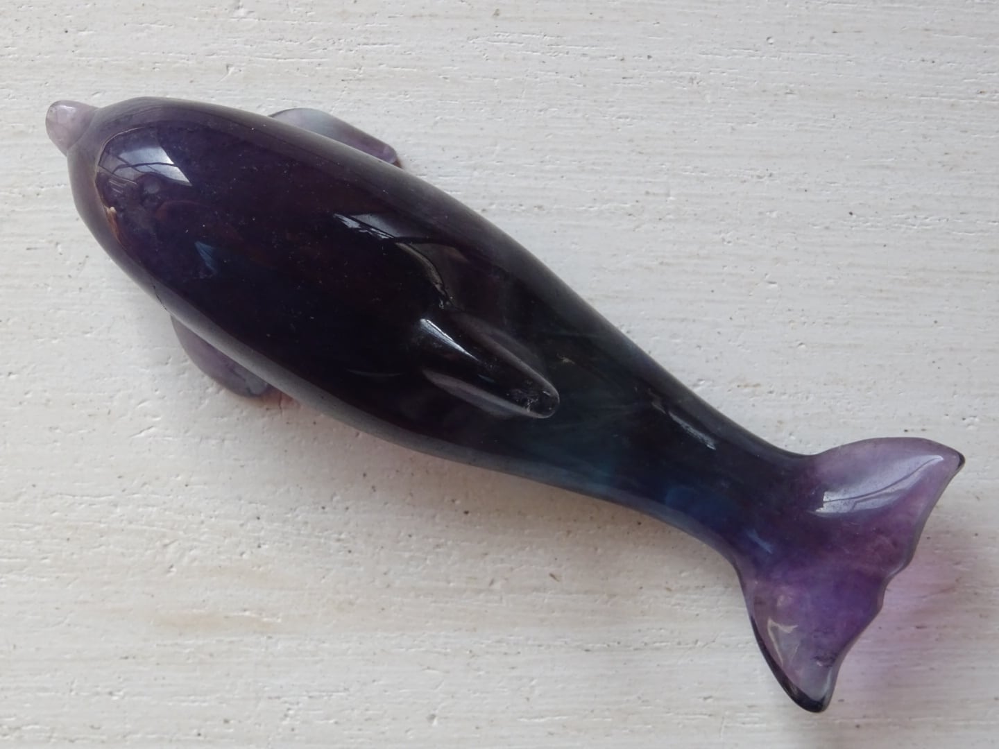 フローライトから象られた、愛らしいイルカのカービングです。