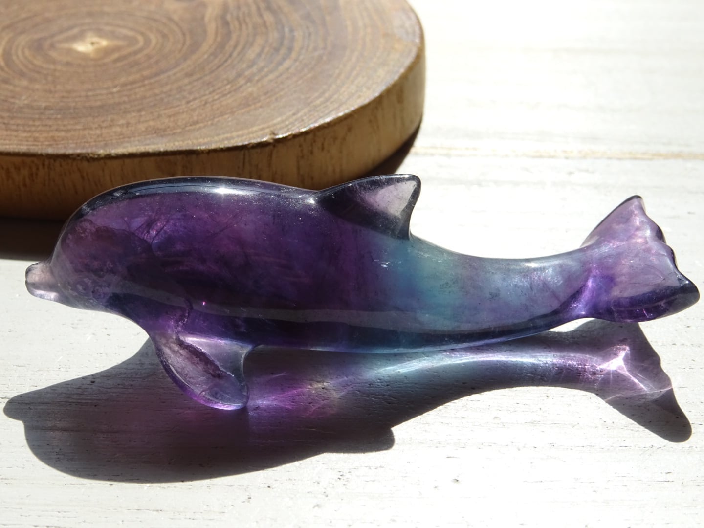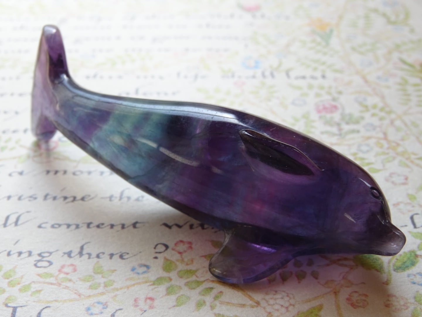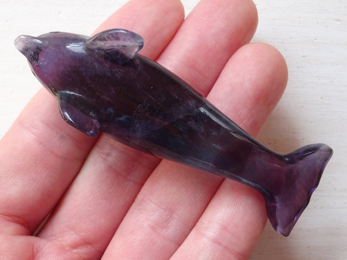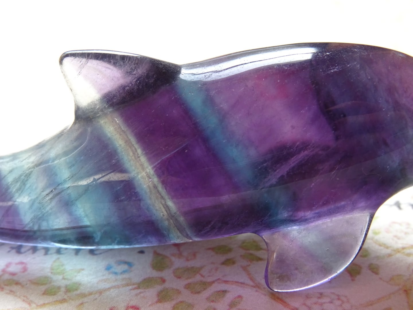 フローライトから象られた、愛らしいイルカのカービングです。