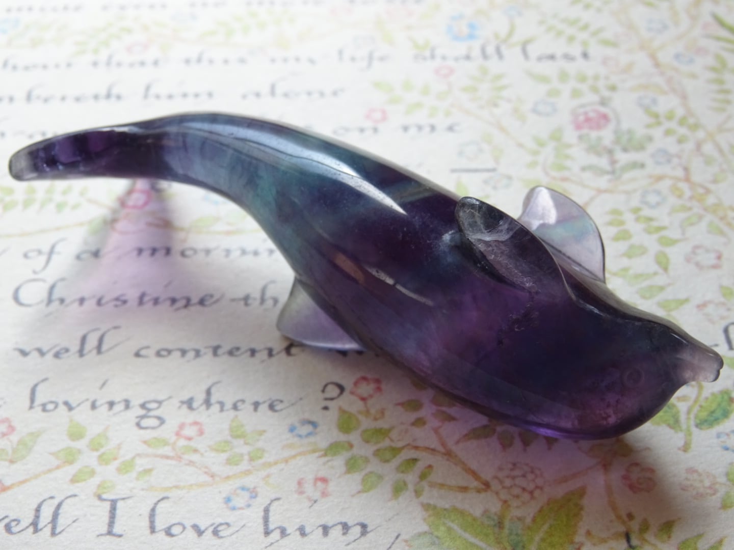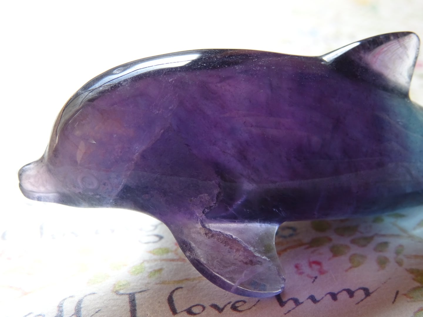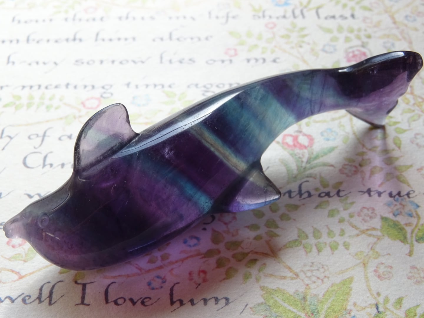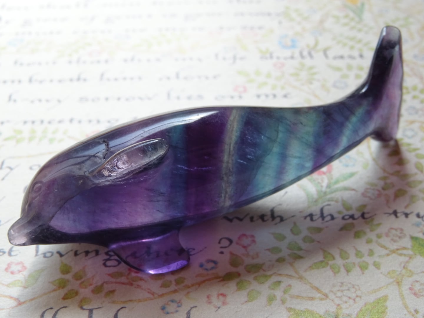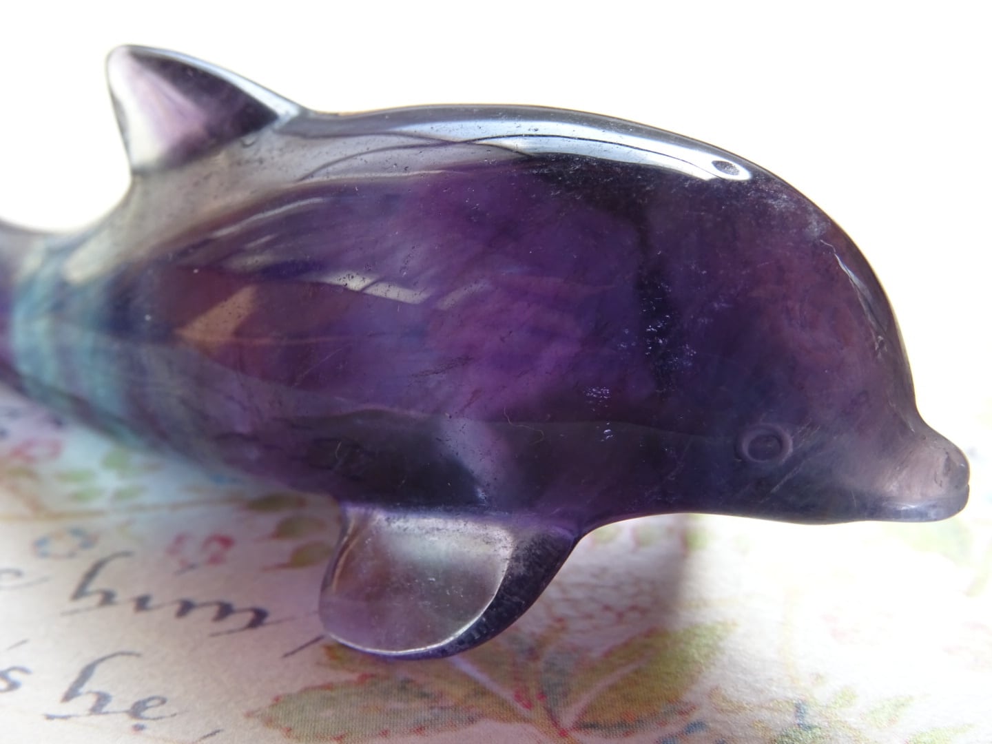 フローライトから象られた、愛らしいイルカのカービングです。