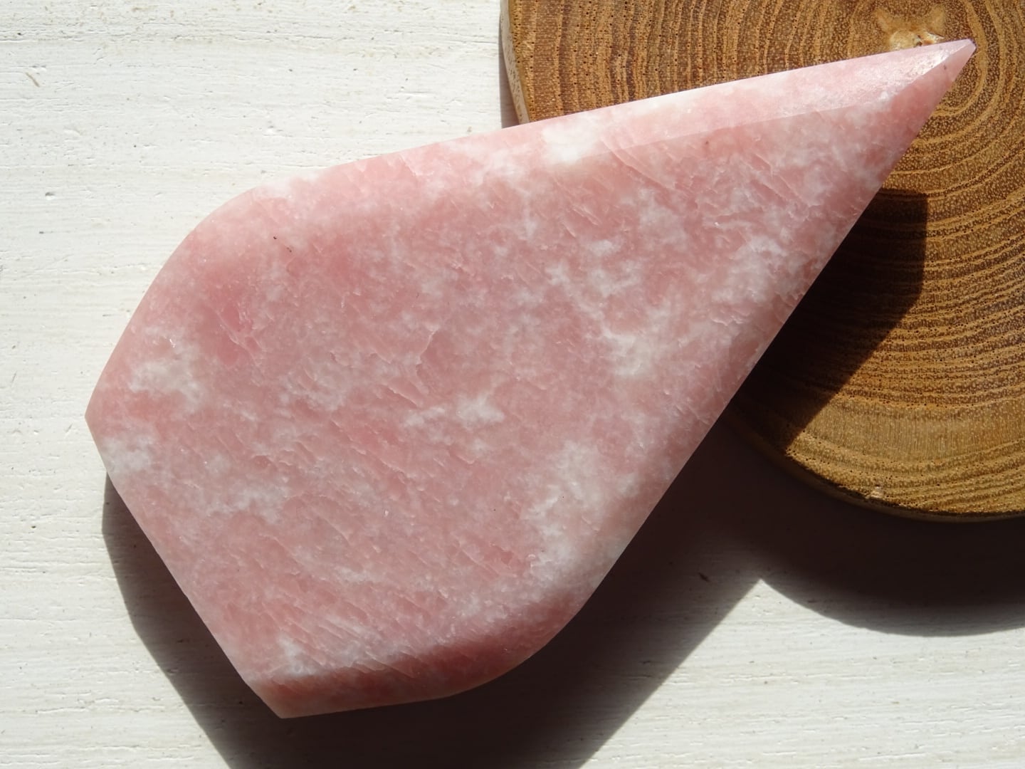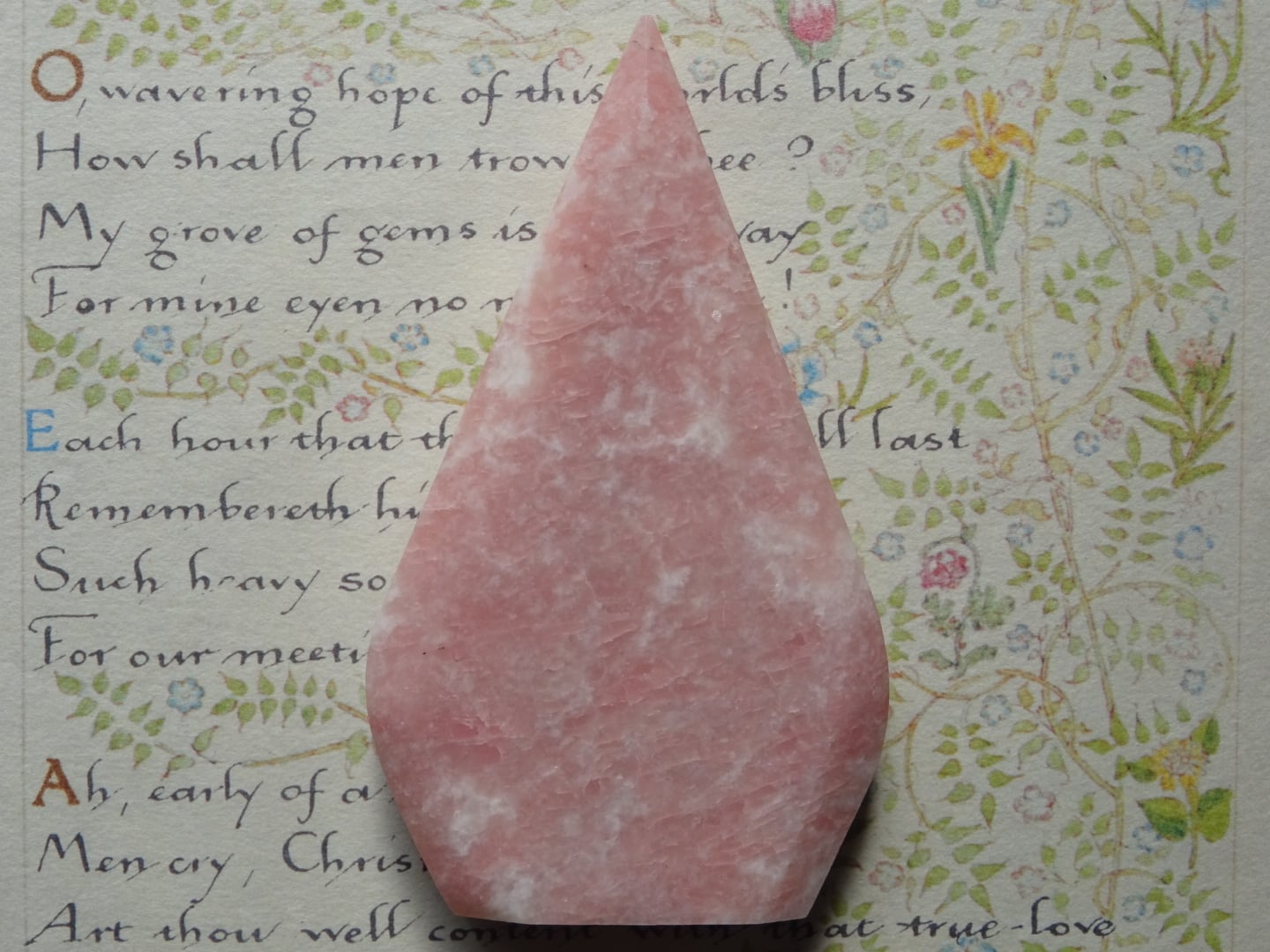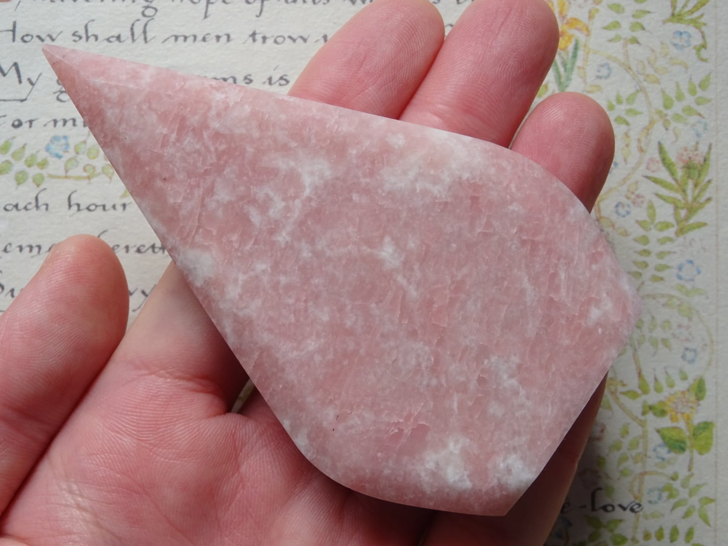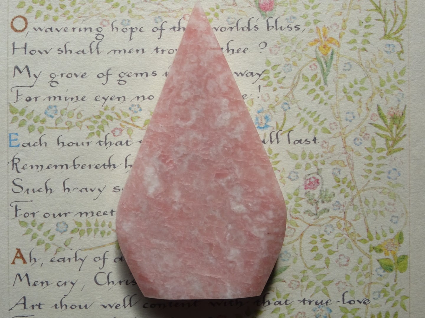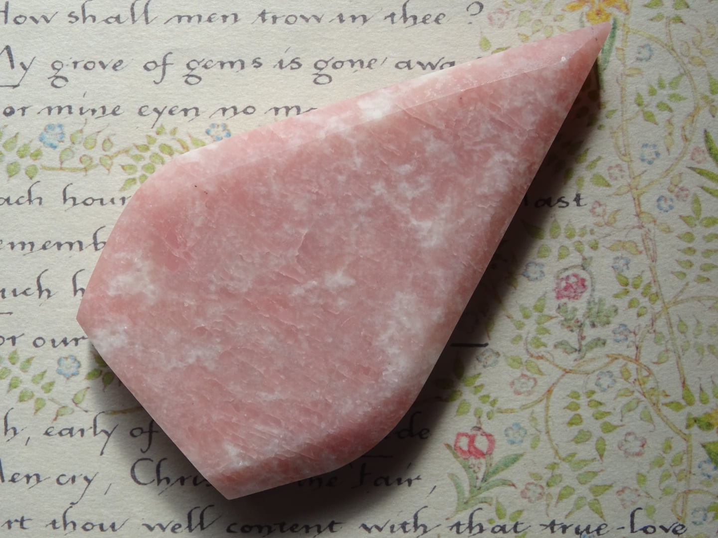 ピンクオパールから象られた、ティアドロップ型のカービングです。
