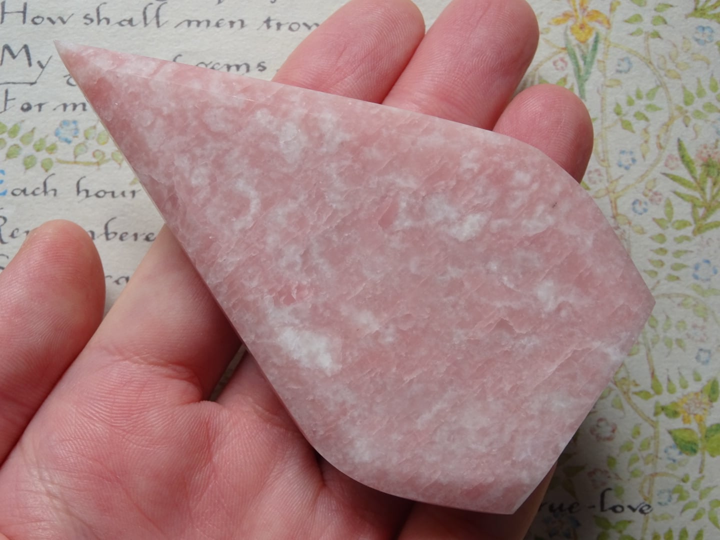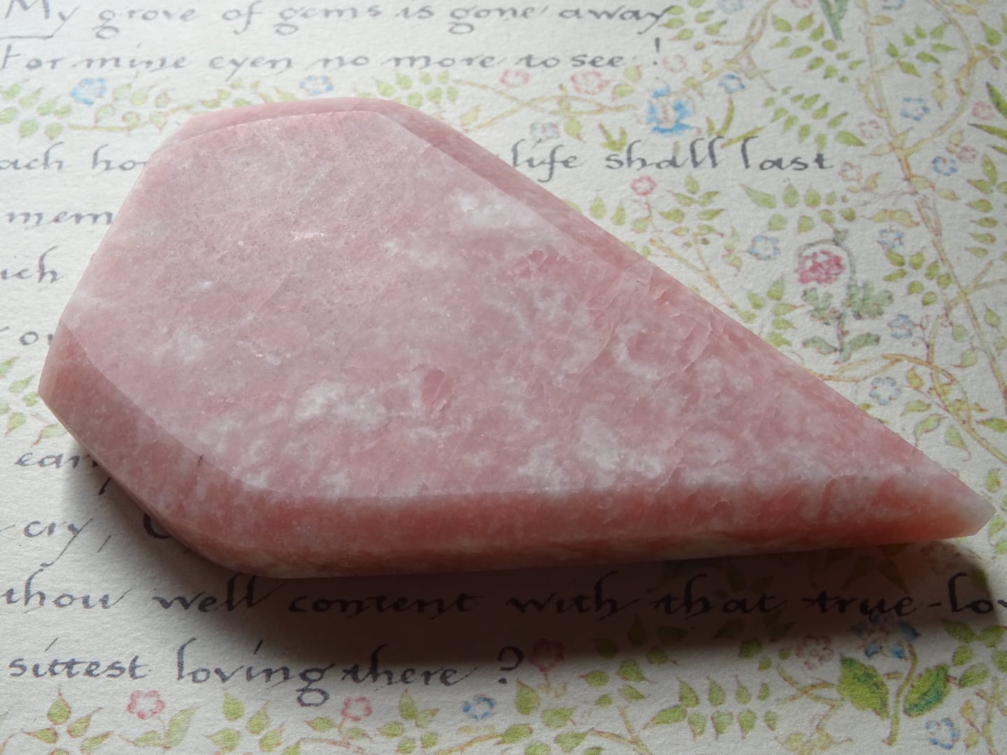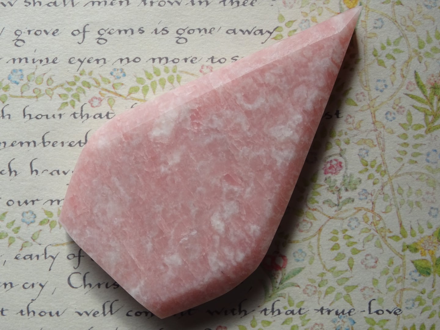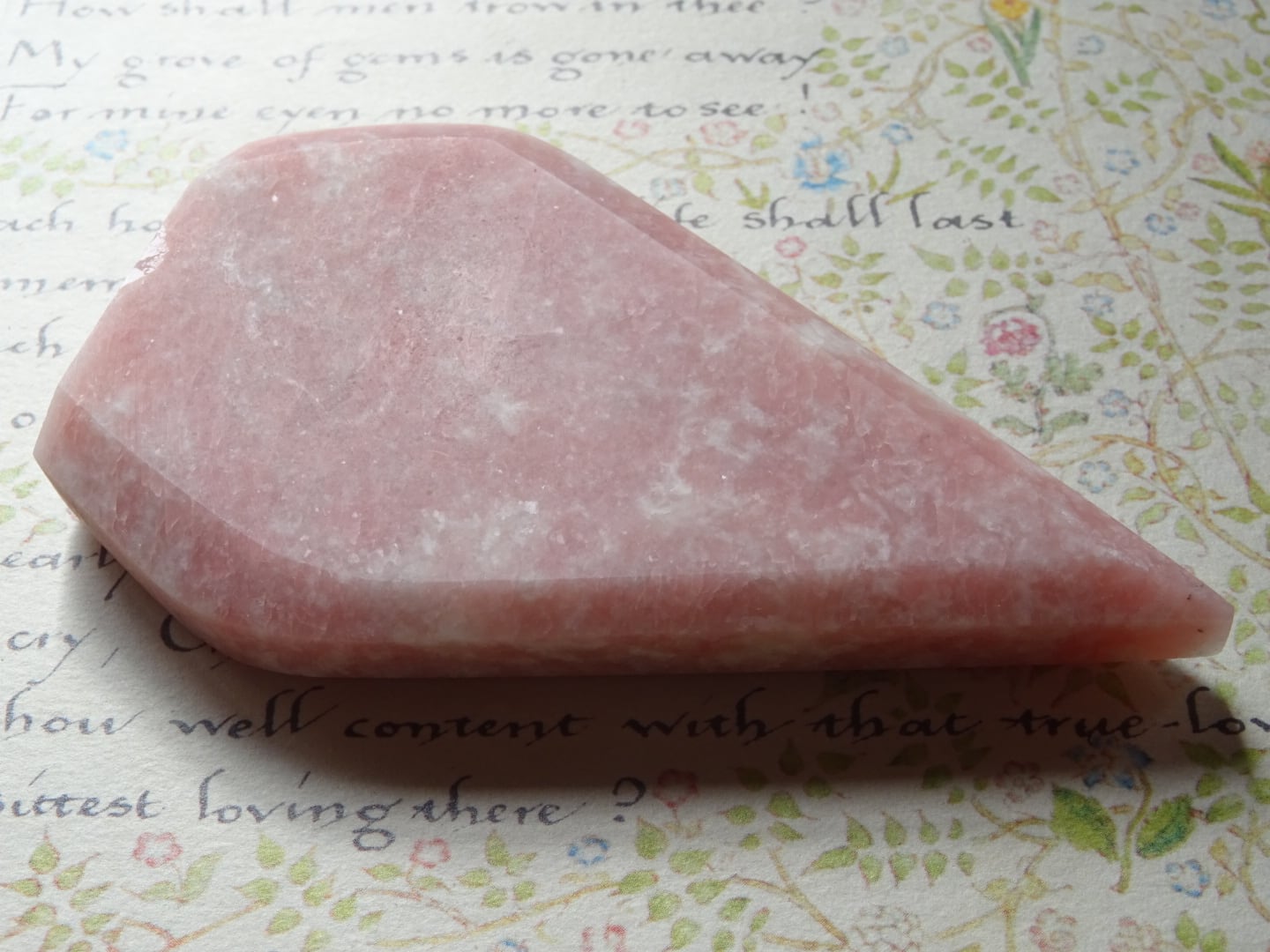 ピンクオパールから象られた、ティアドロップ型のカービングです。