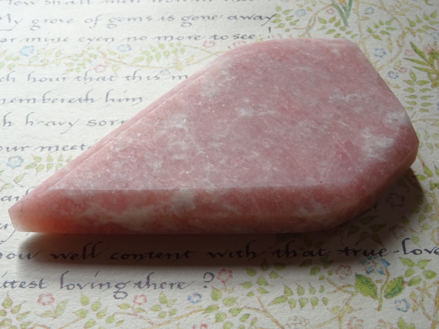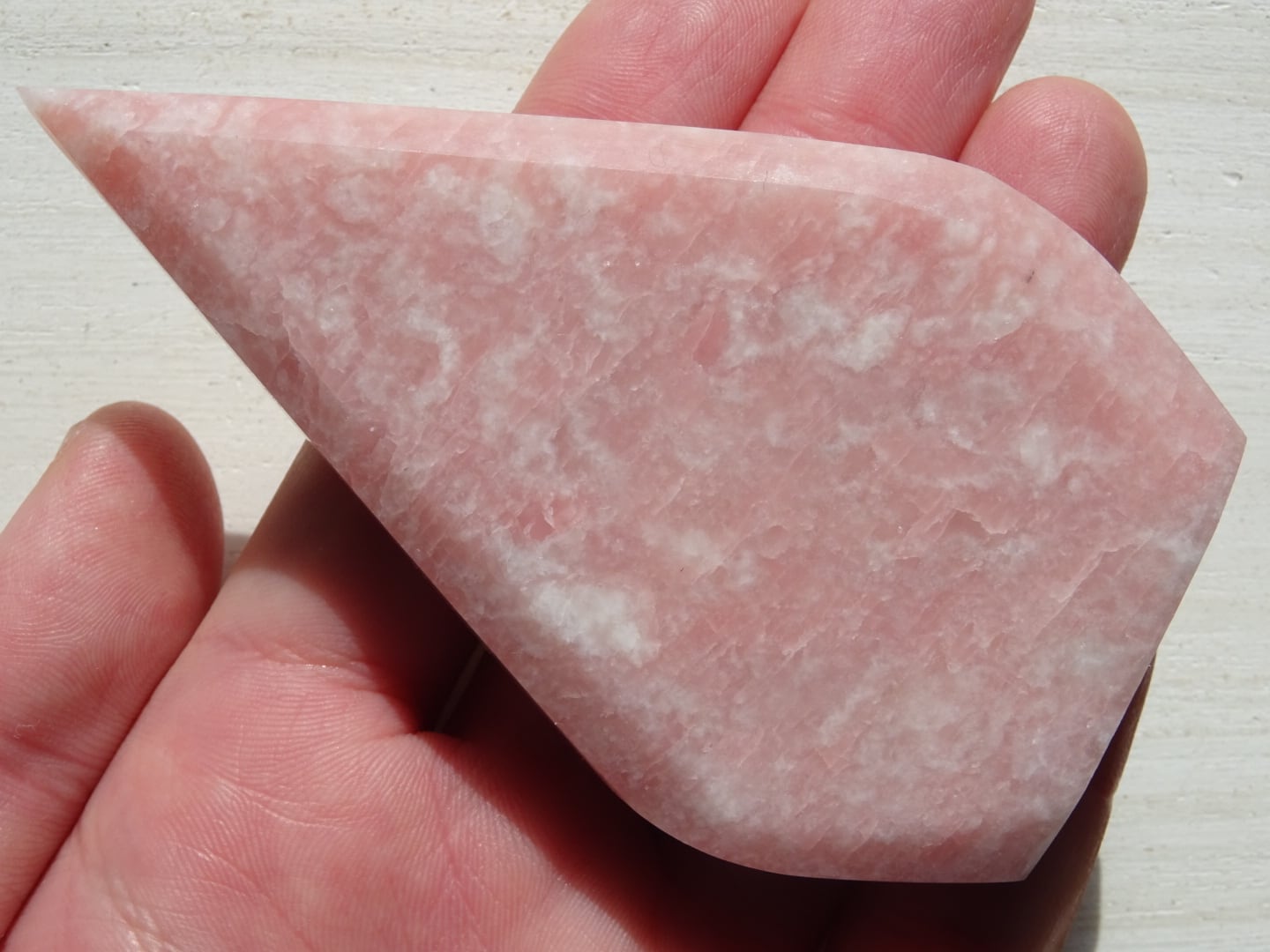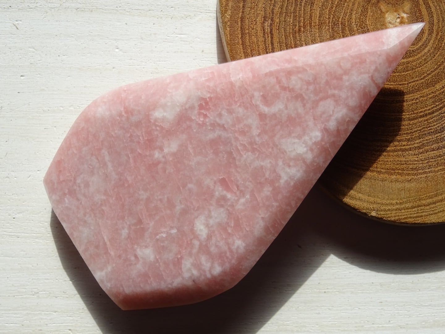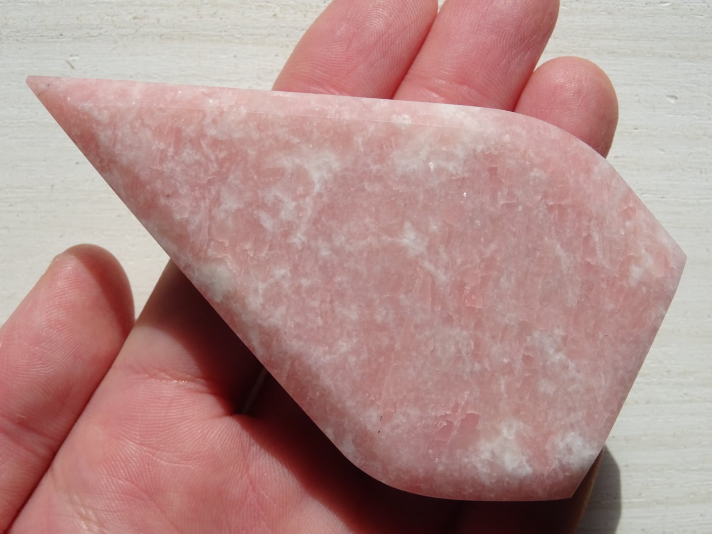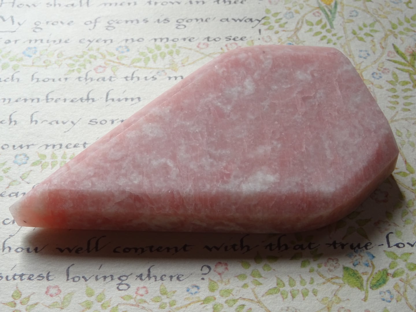 ピンクオパールから象られた、ティアドロップ型のカービングです。
