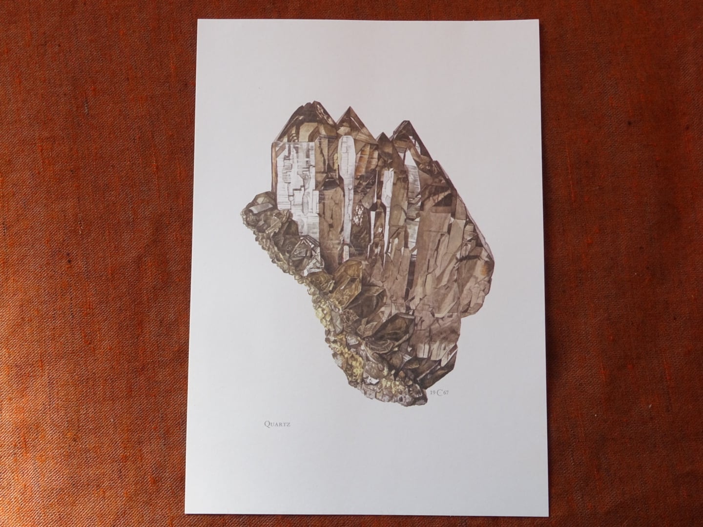 『Suisse』と書かれているので、おそらくスイス、アルプスの石だと思うのですが、テリテリ、ツヤツヤで透明感のあるクリスタルが美しく描かれています。